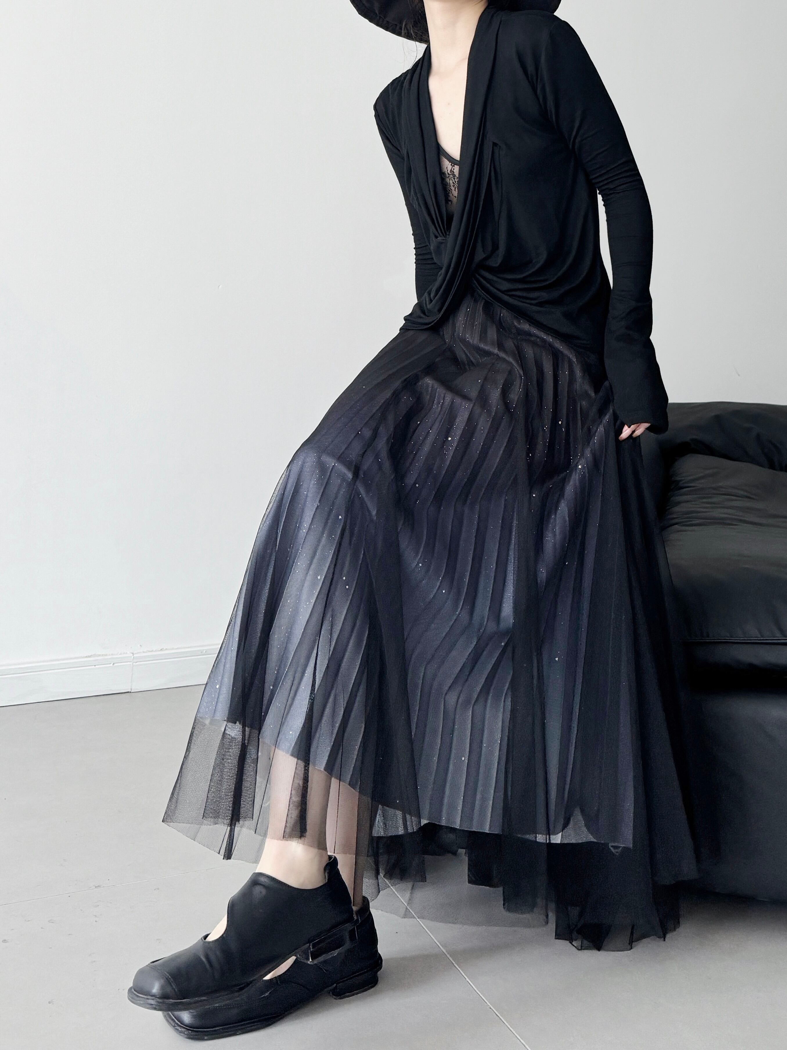 グリッターチュールプリーツスカート。