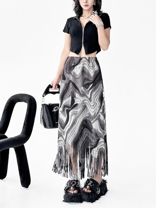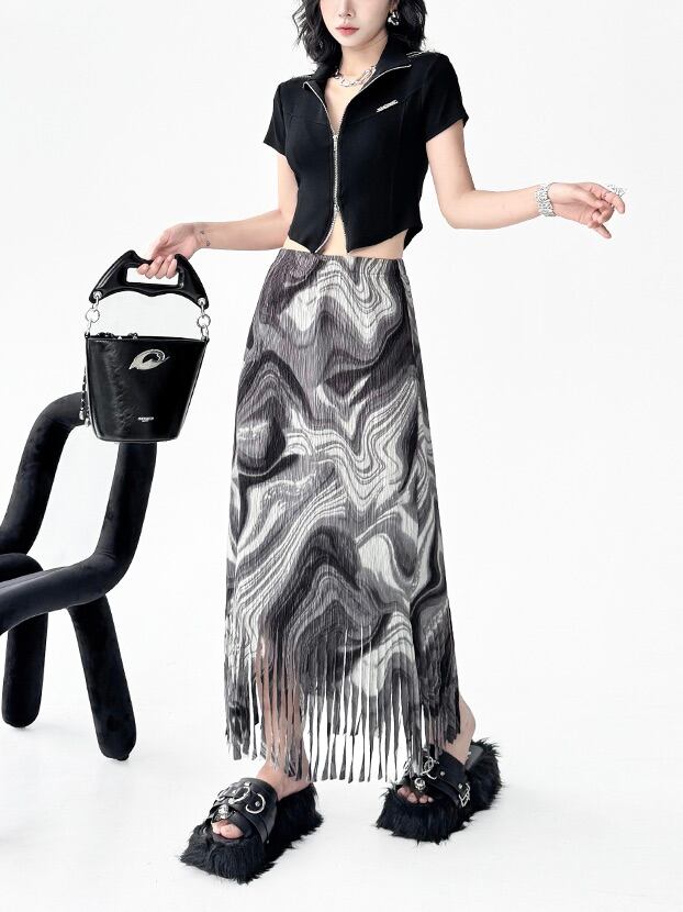 アブストラクトパターンタッセルスカート。 動くたび揺れるフリンジが視線を誘う。 大胆な柄で感性を遊ばせる主役ボトム。 - Size - M スカート丈:68-94cm ウエスト:64-114cm ヒップ:108cm L スカート丈:69-95cm ウエスト:68-118cm ヒップ:112cm XL スカート丈:70-96cm ウエスト:72-122cm ヒップ:116cm ※1~3cmの誤差がある場合がございます model date 169cm/53kg - Color - ブラック - Material - ポリエステル他 - お届けについて - こちらの商品は海外店舗より直接発送となる為、 ご入金から1~3週間前後で発送致します。 ※商品の状況によっては、3週間以上かかる場合も ございます。 ------------------------------------------------------- - Lilie全商品はこちらから - https://www.lilie.style/ - 人気のアイテムはこちら - https://www.lilie.style/categories/3884141 - ご購入前にこちらをお読みください - https://www.lilie.style/about -------------------------------------------------------