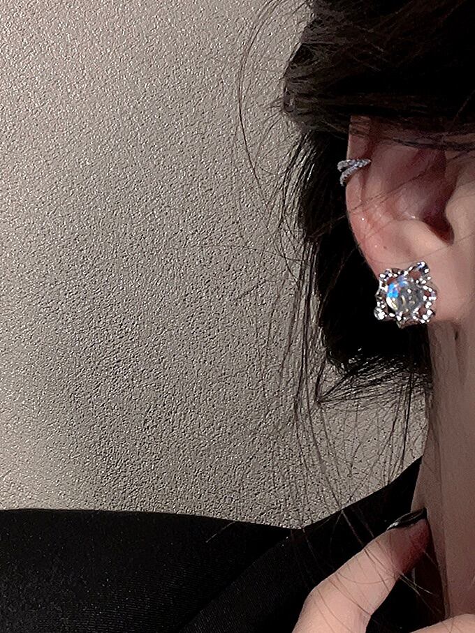 耳元に映えるシャープな存在感がコーデを引き締める。