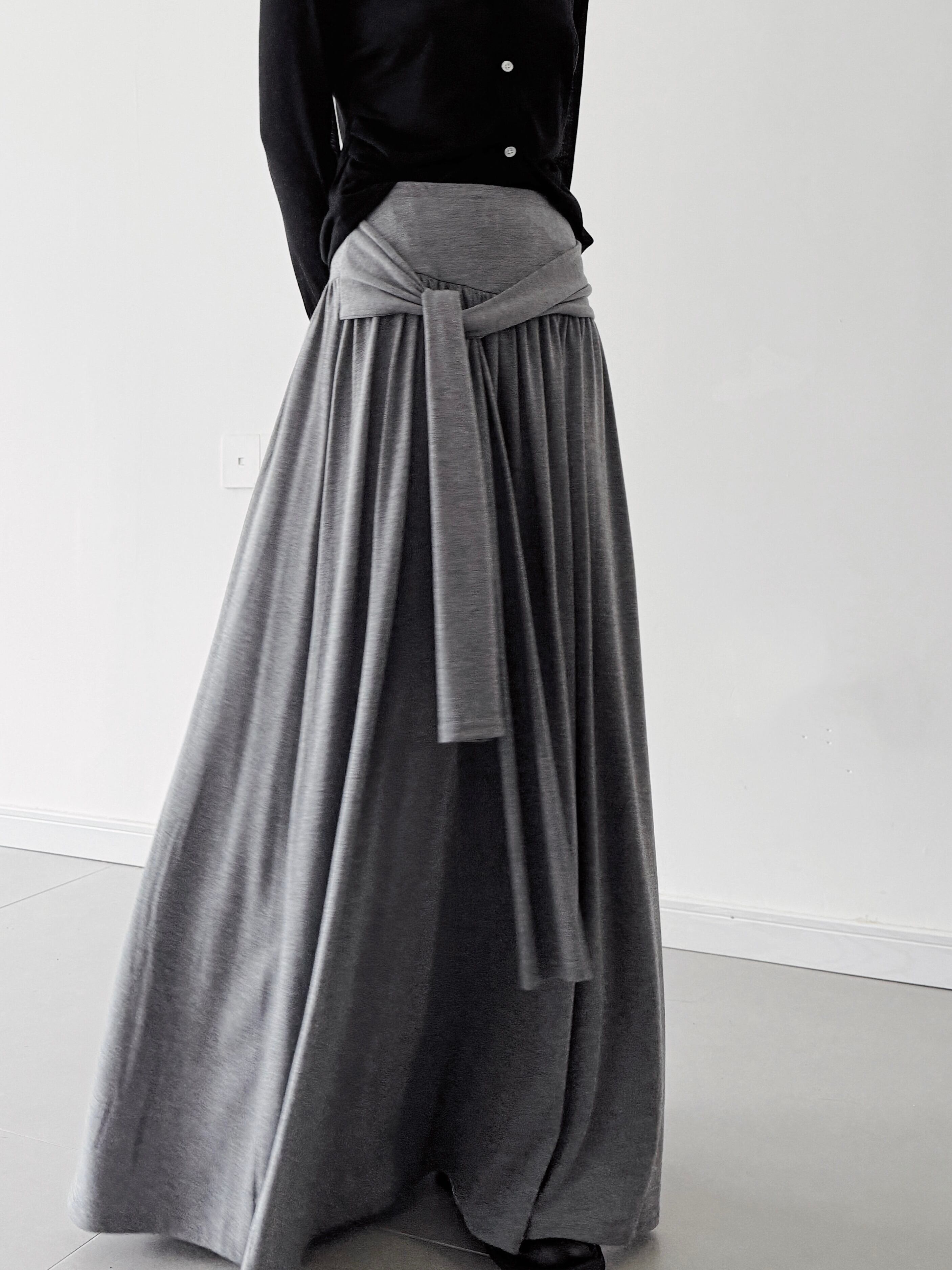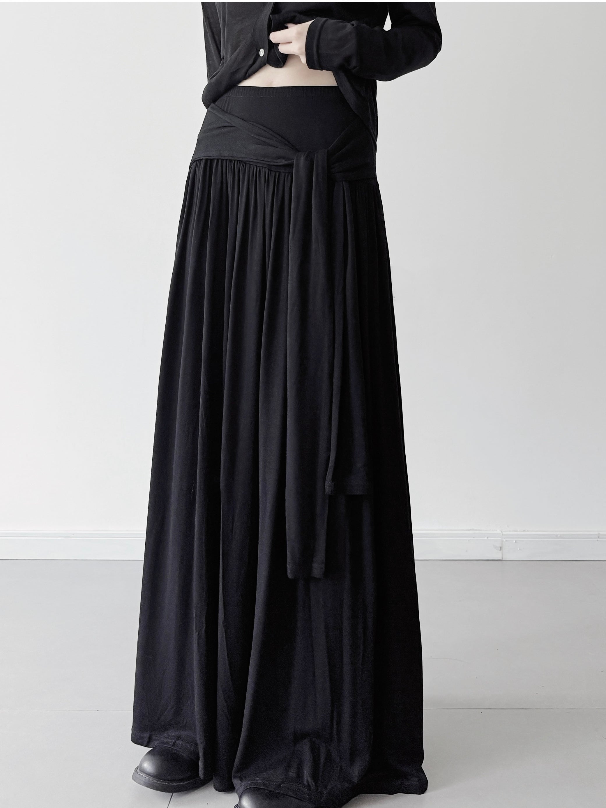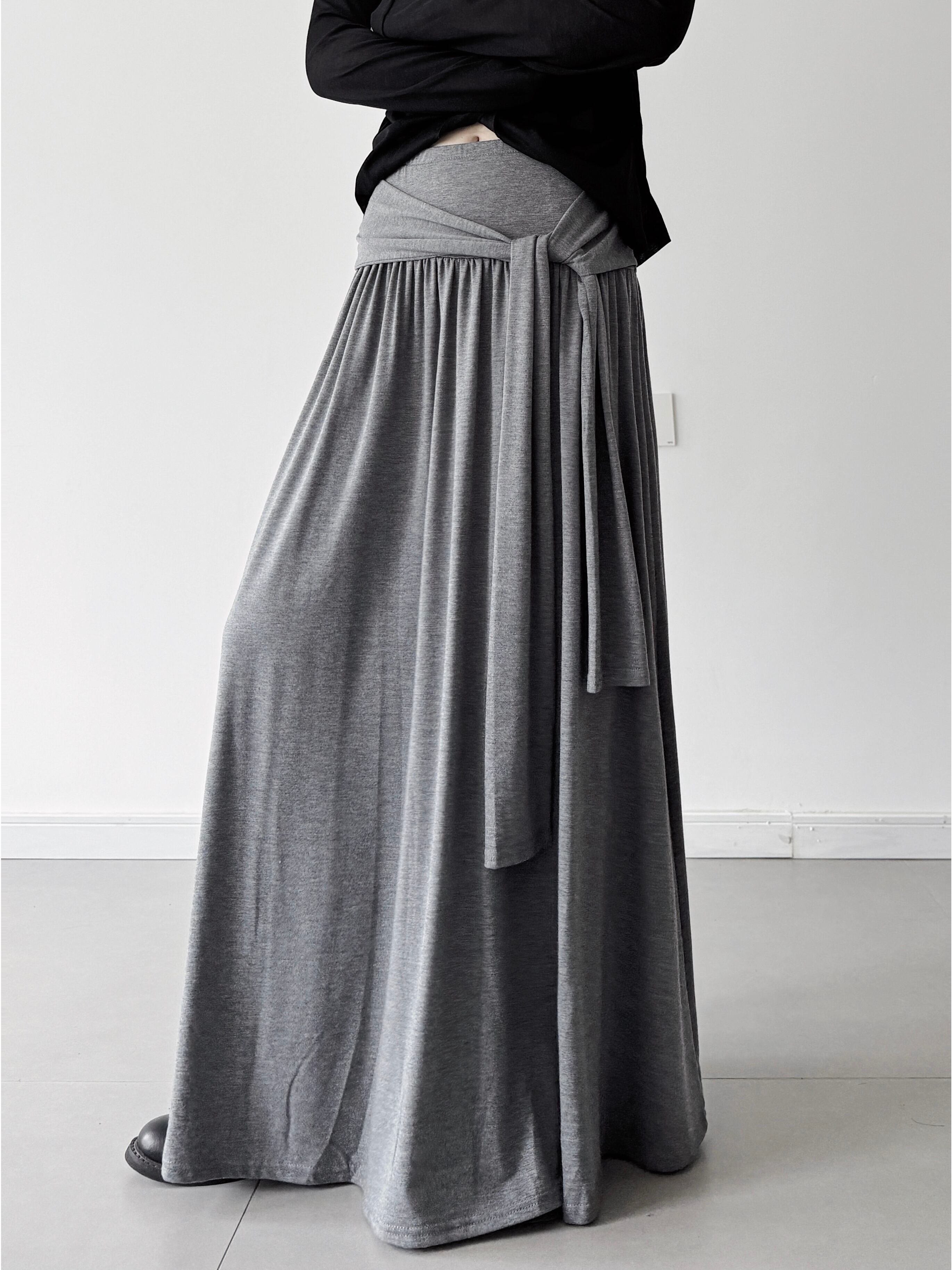 Relaxed style cross strap loose A-line skirt 2color [T2422]