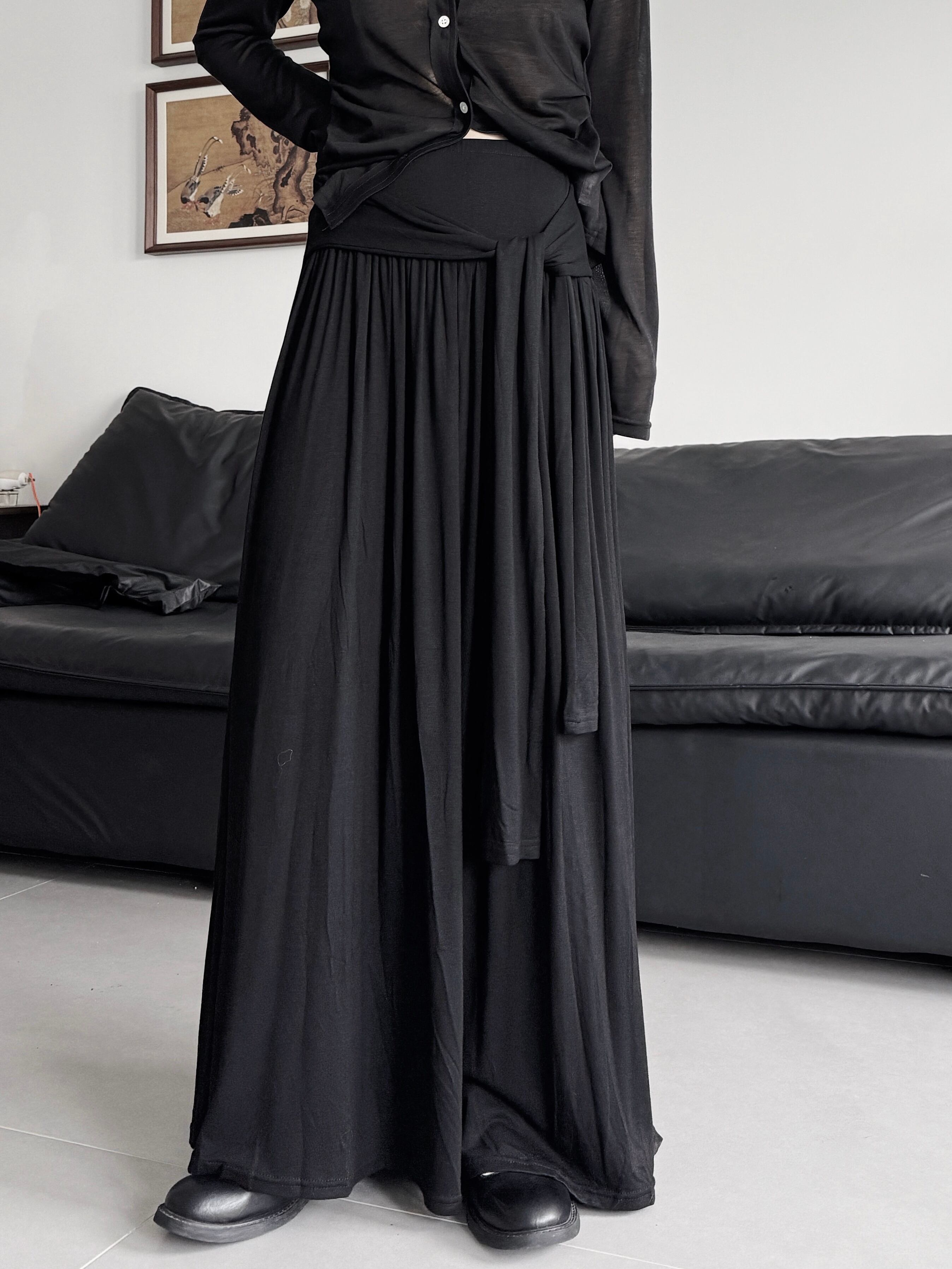 リラックススタイルクロスストラップルーズAラインスカート