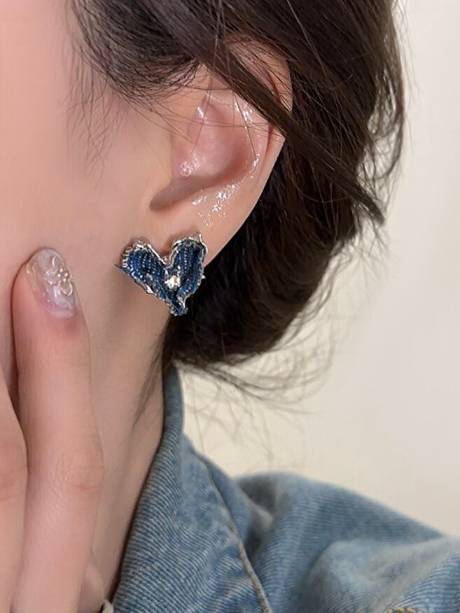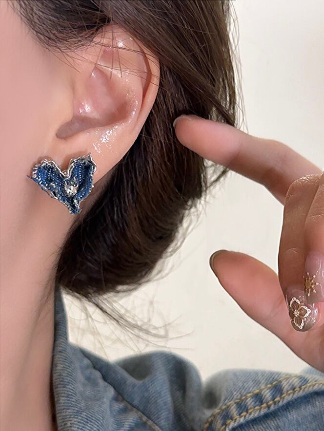 デニム×ハートの甘辛ミックスで耳元に遊び心を。