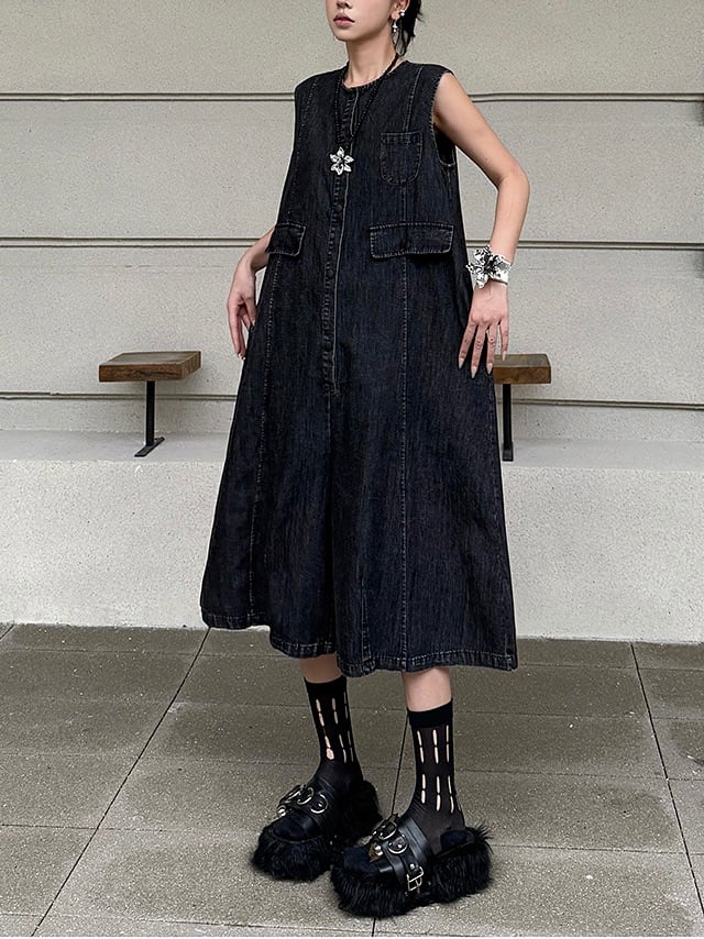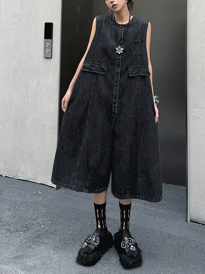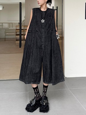 ルーズデニムノースリーブジャンプスーツ。