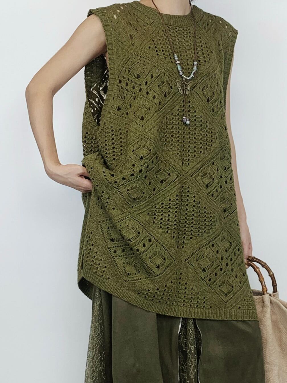 パーフォレイテッドルーズニットベスト。