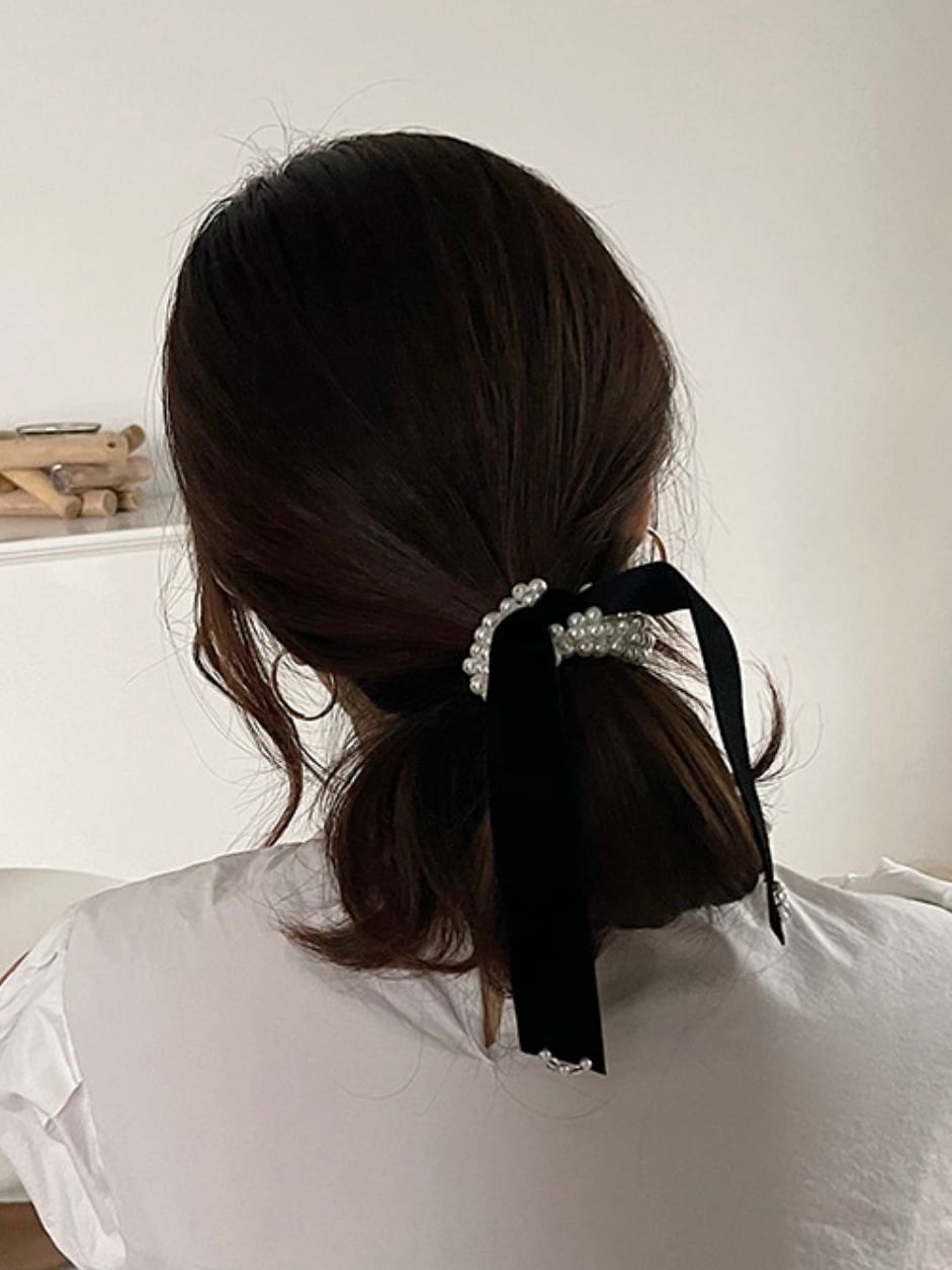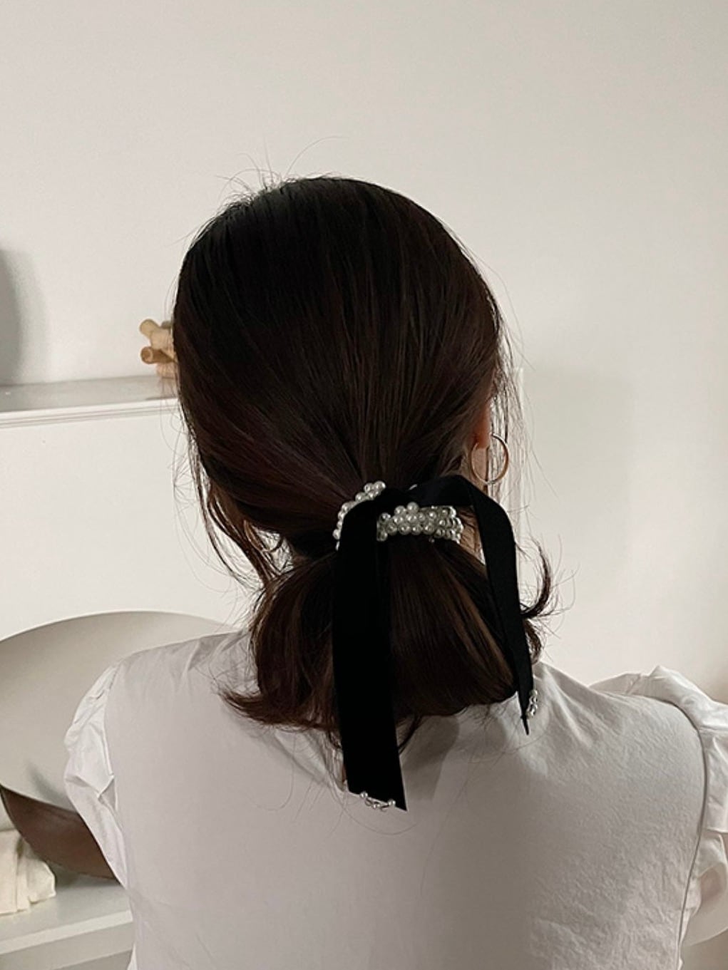 可憐なリボンに揺れるパールが大人可愛さをプラス。