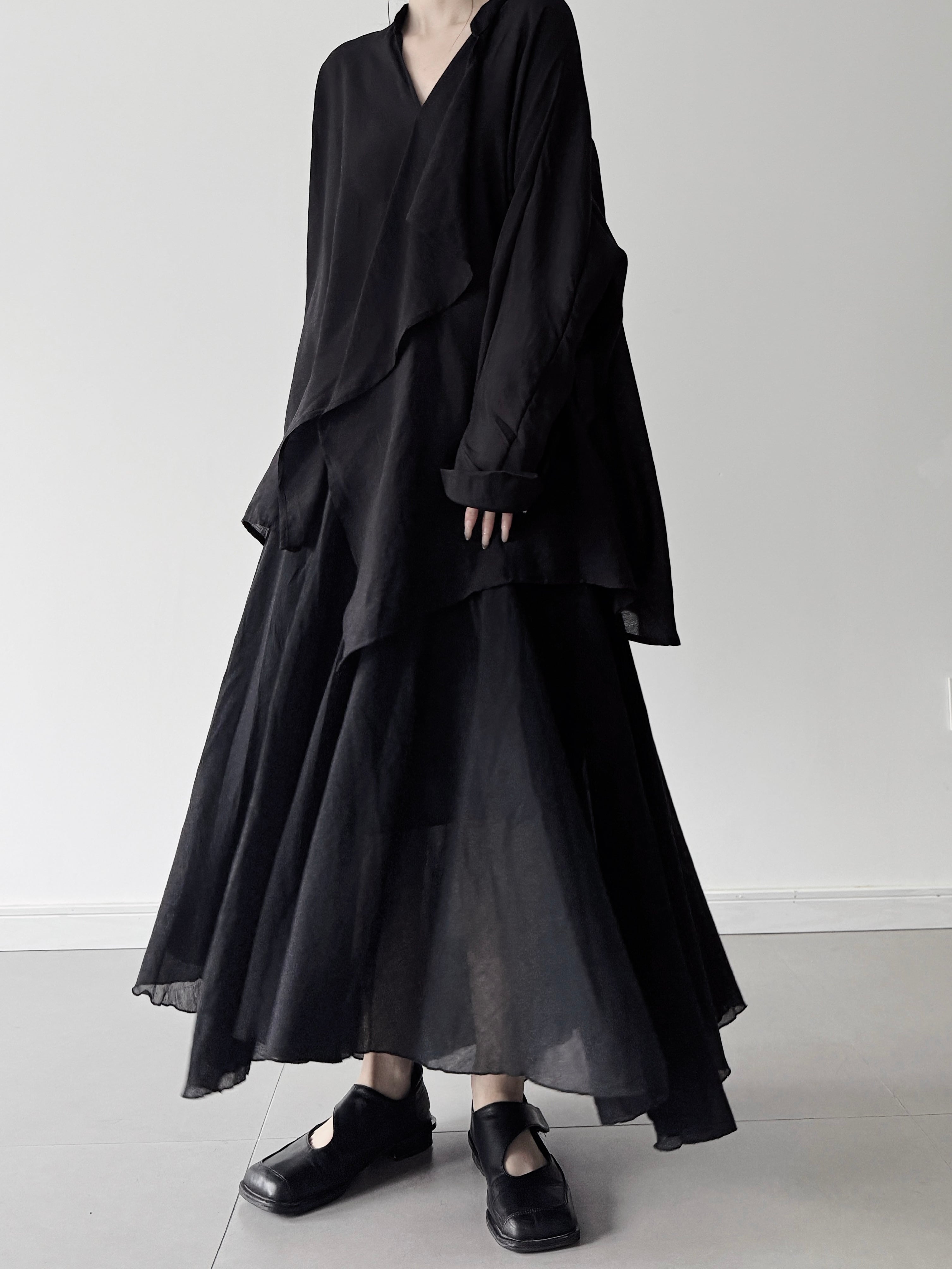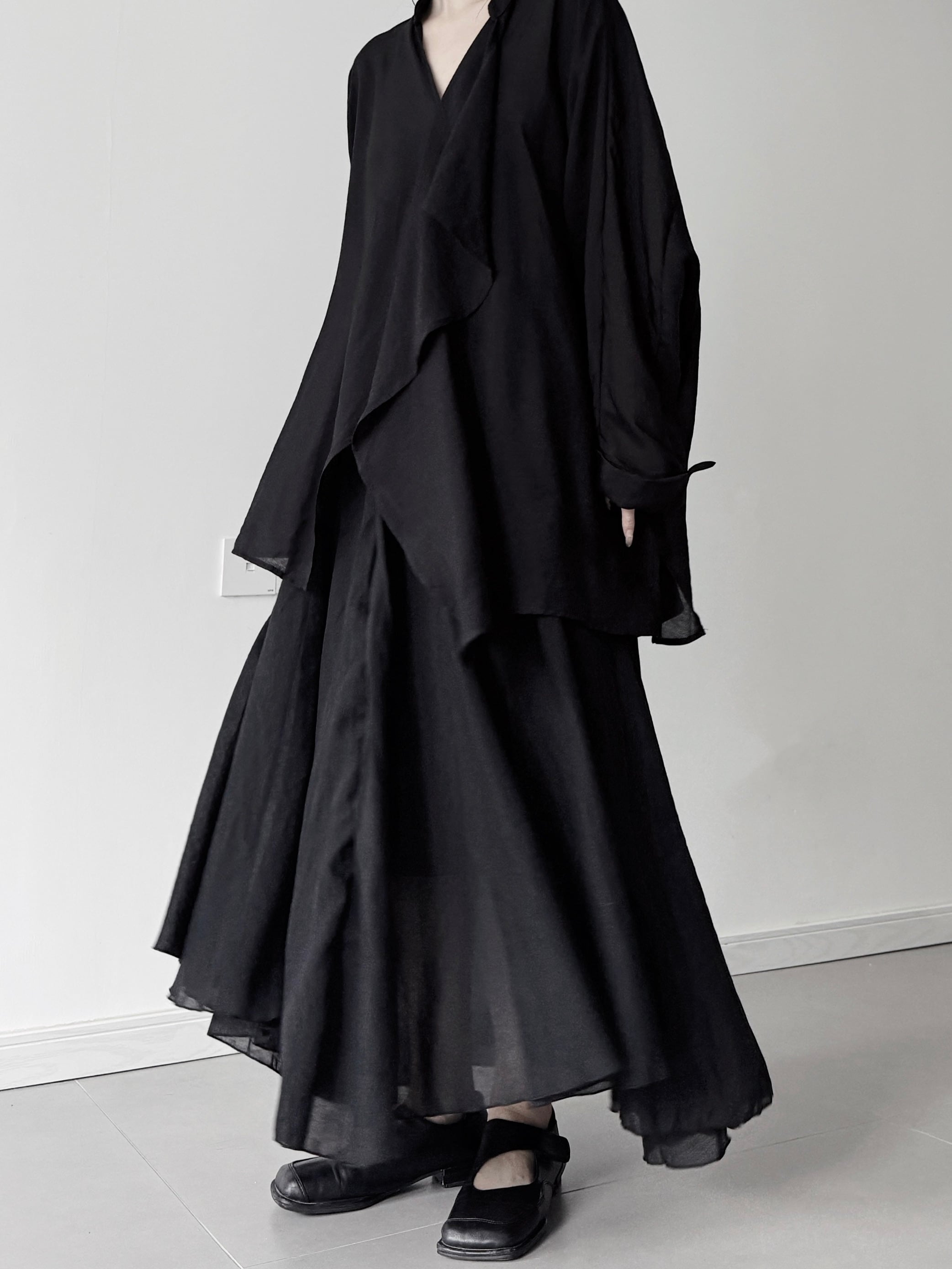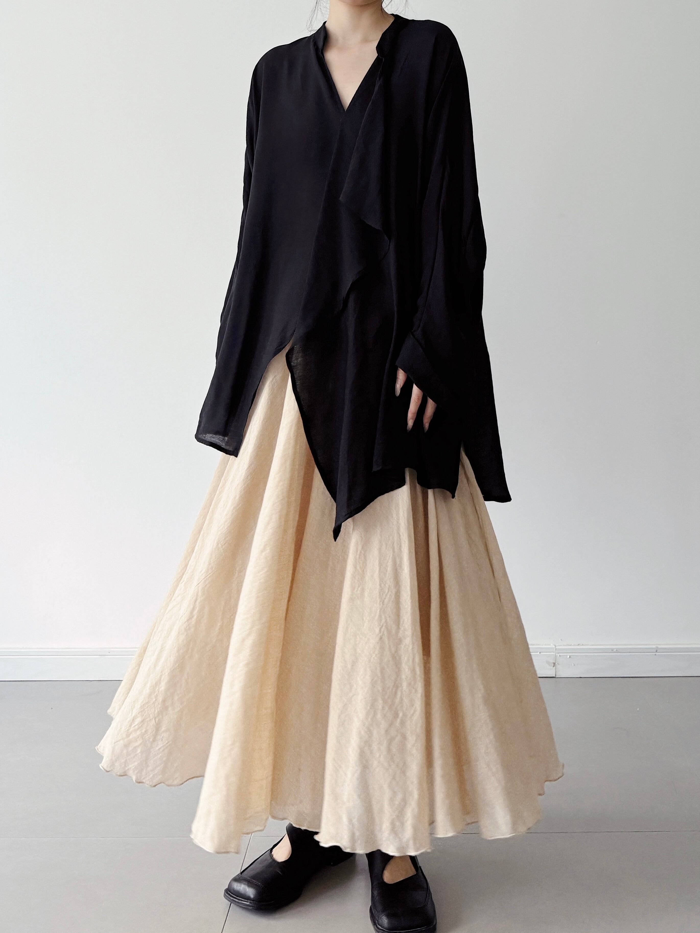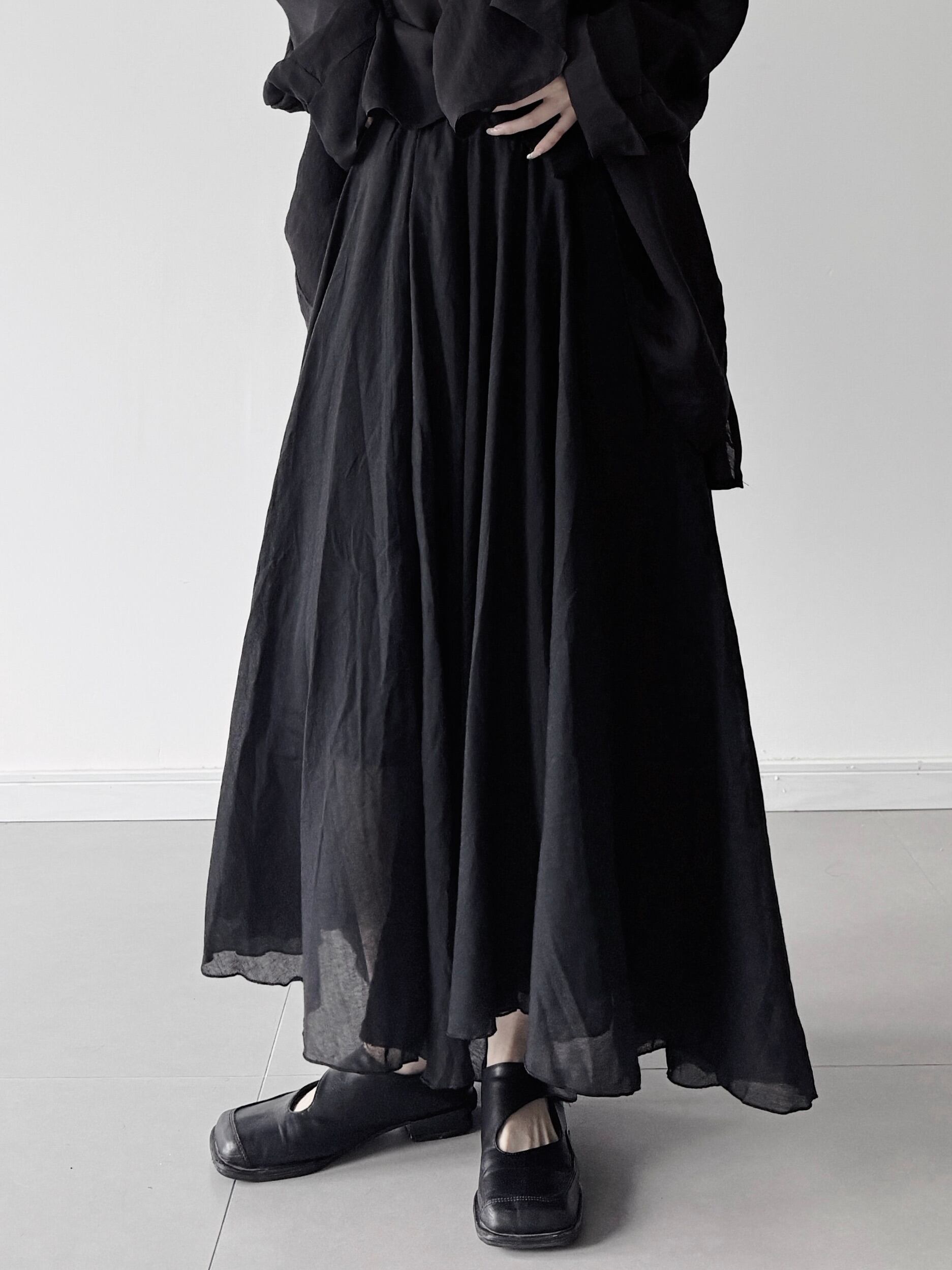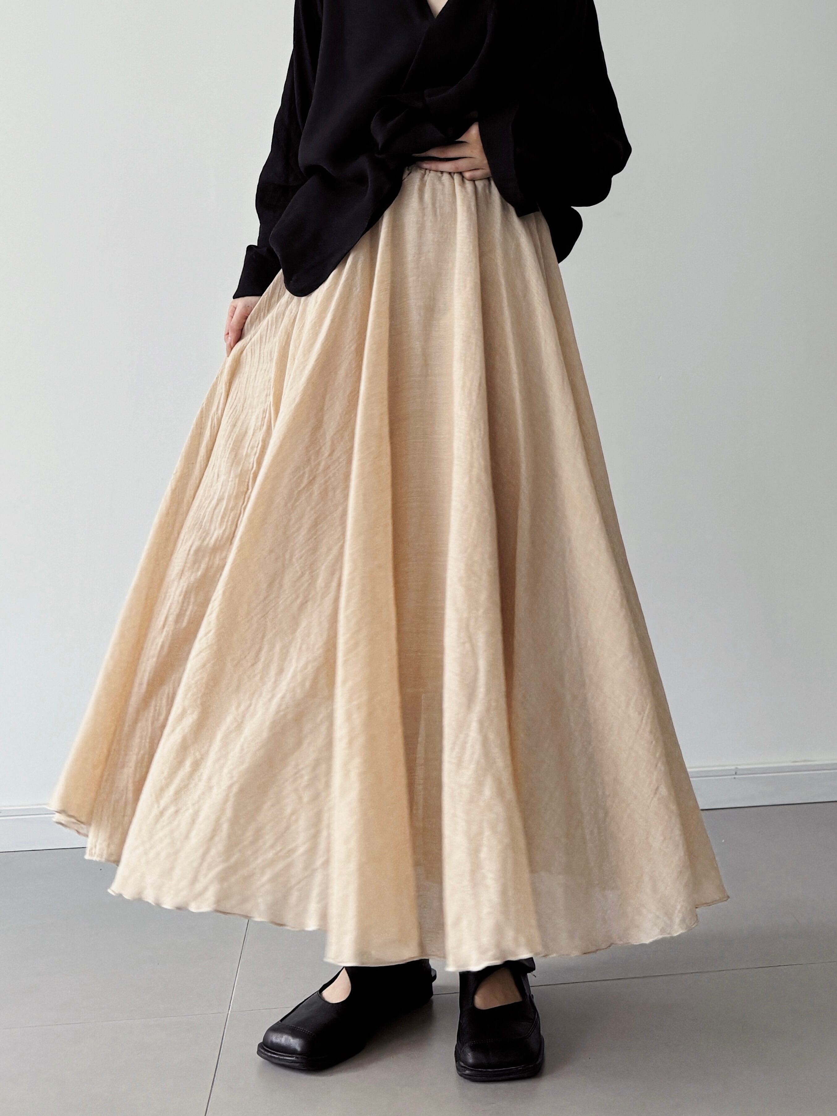 ダブルレイヤードコットンAラインロングスカート。