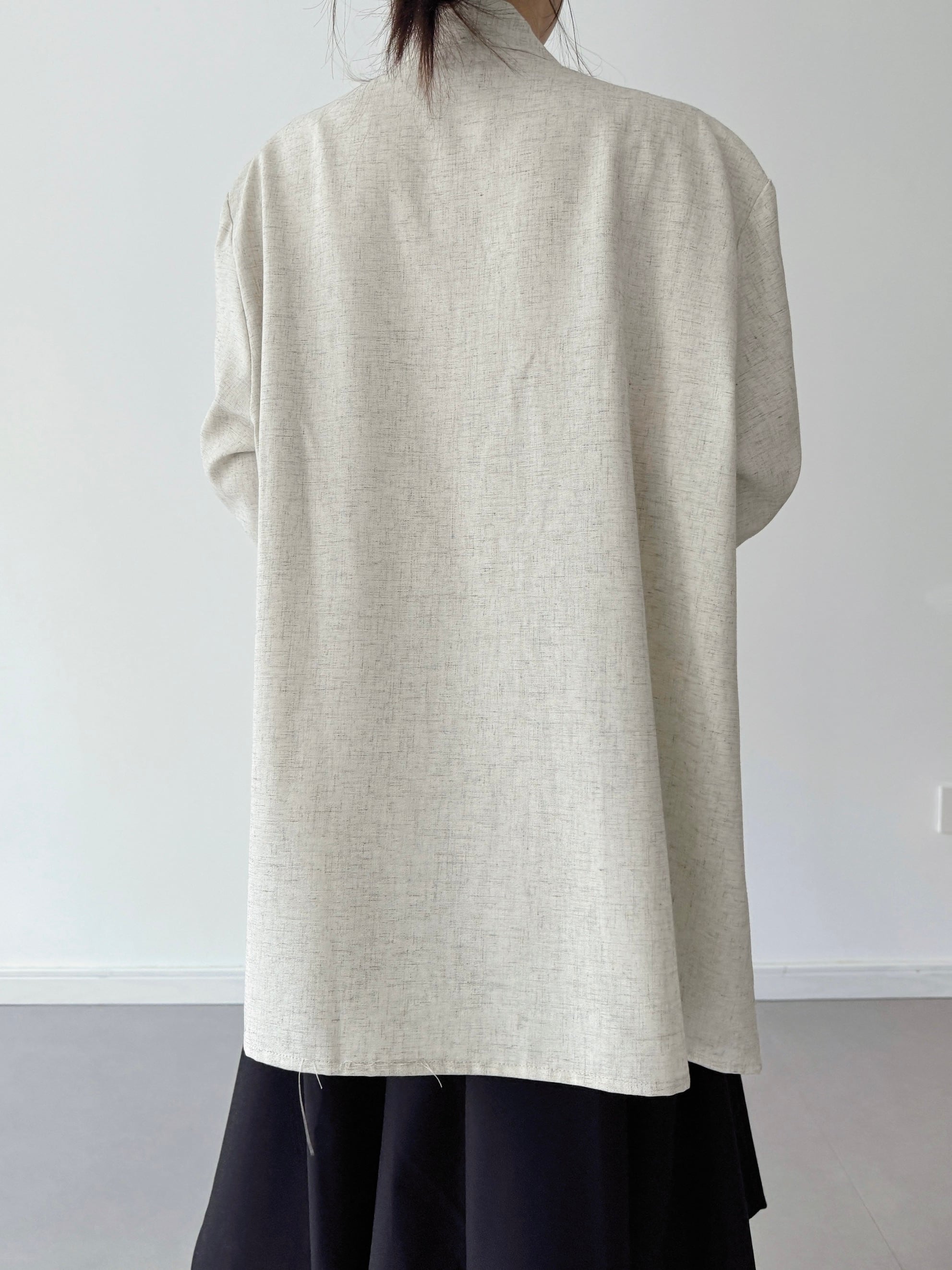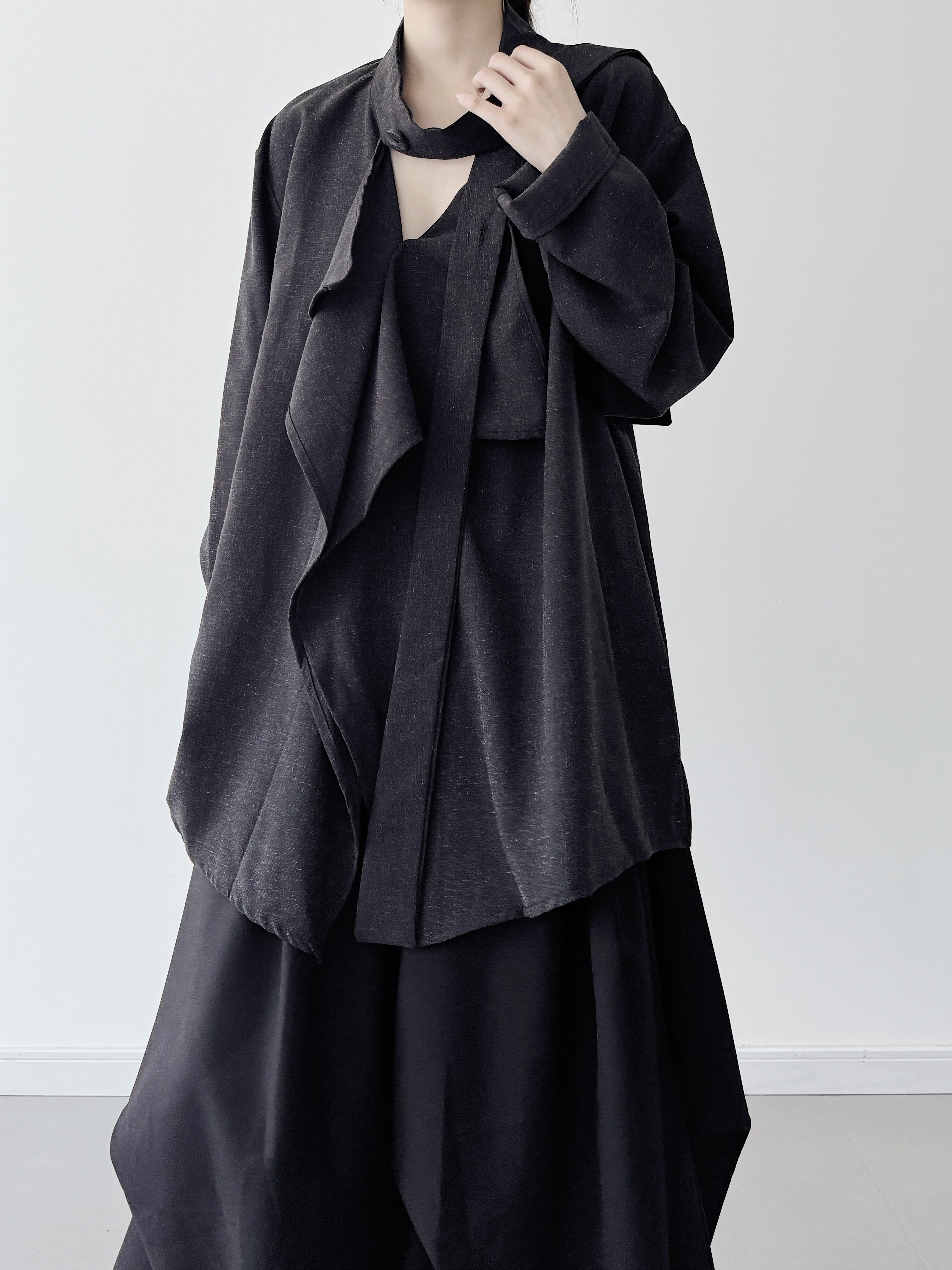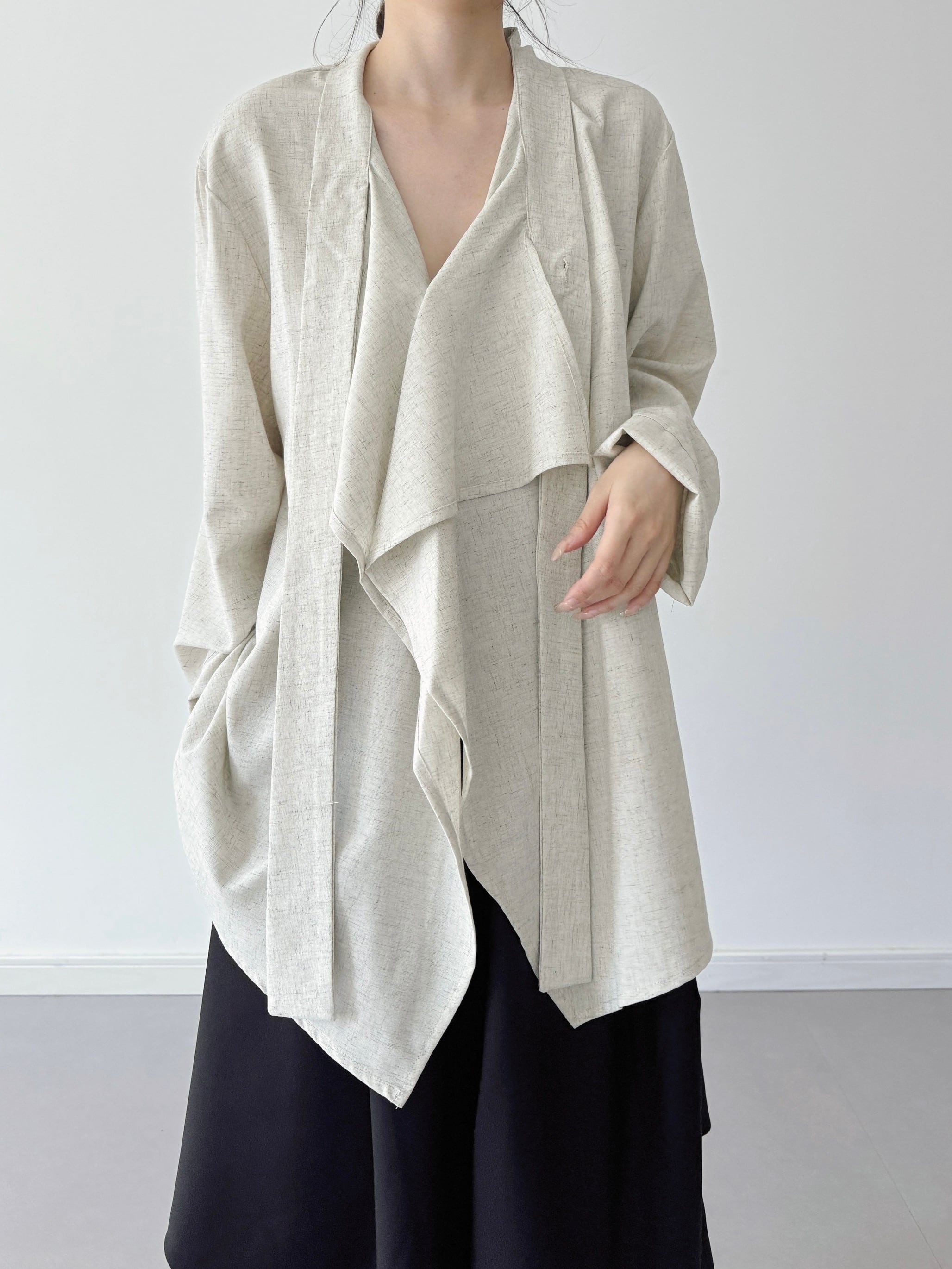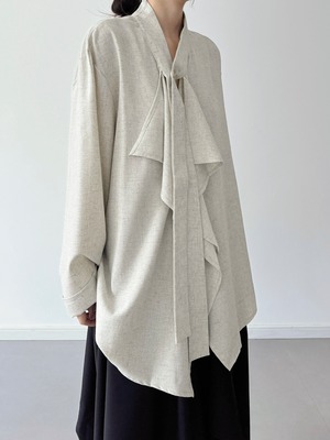Ribbon stand collar artistic style asymmetrical top 2color [T2454]