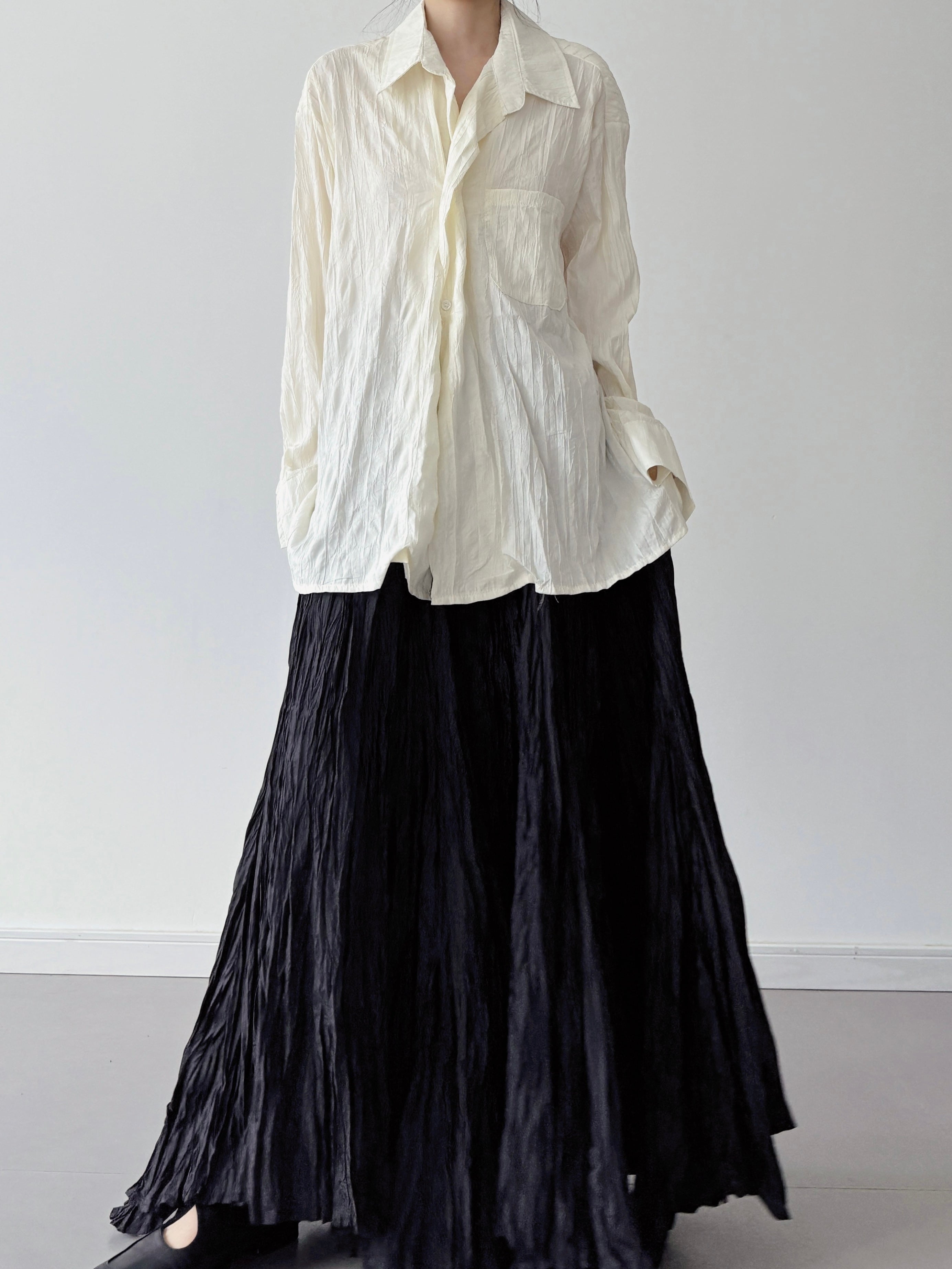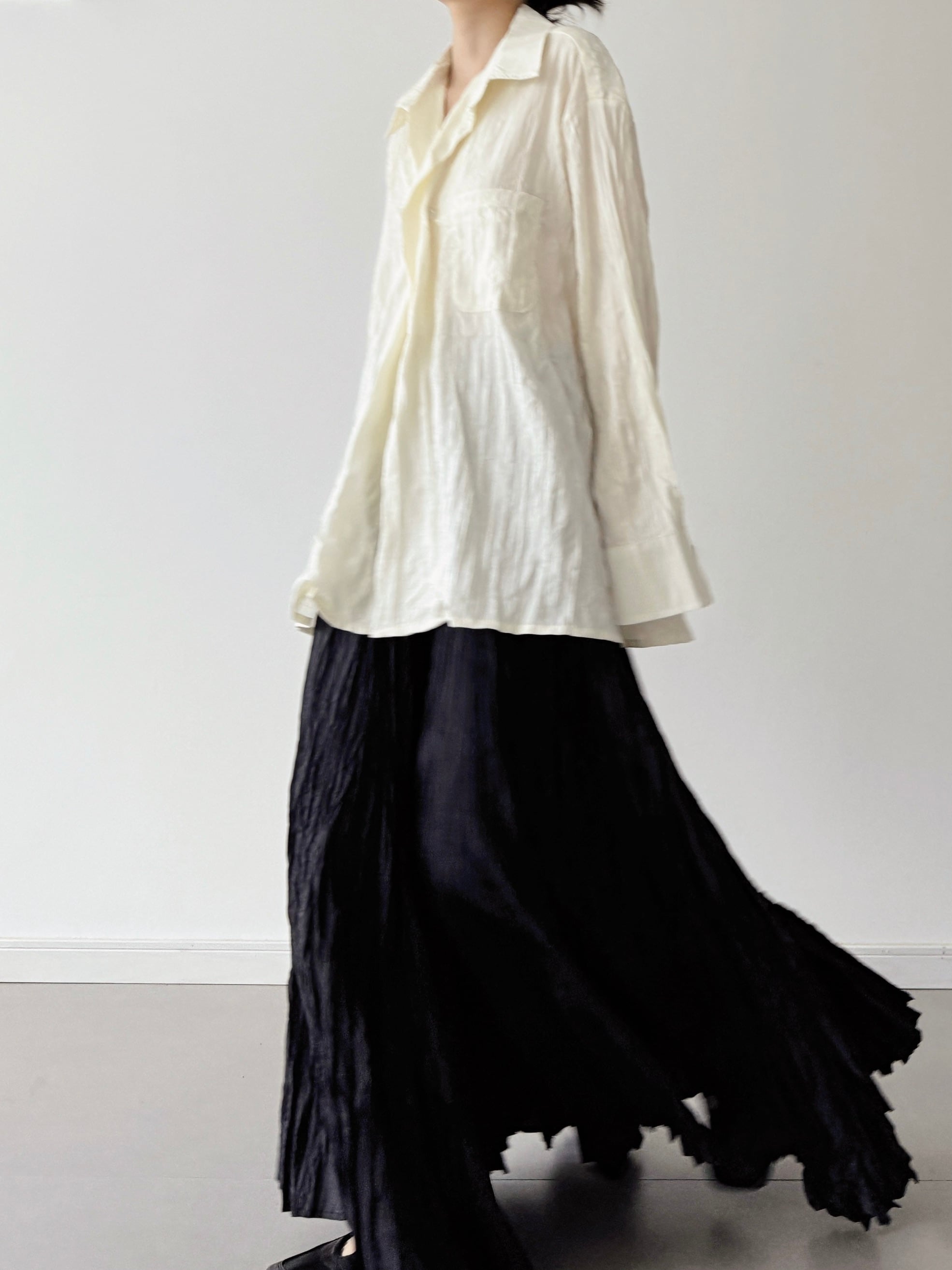 繊細なプリーツが洗練された存在感を引き立てる一枚。