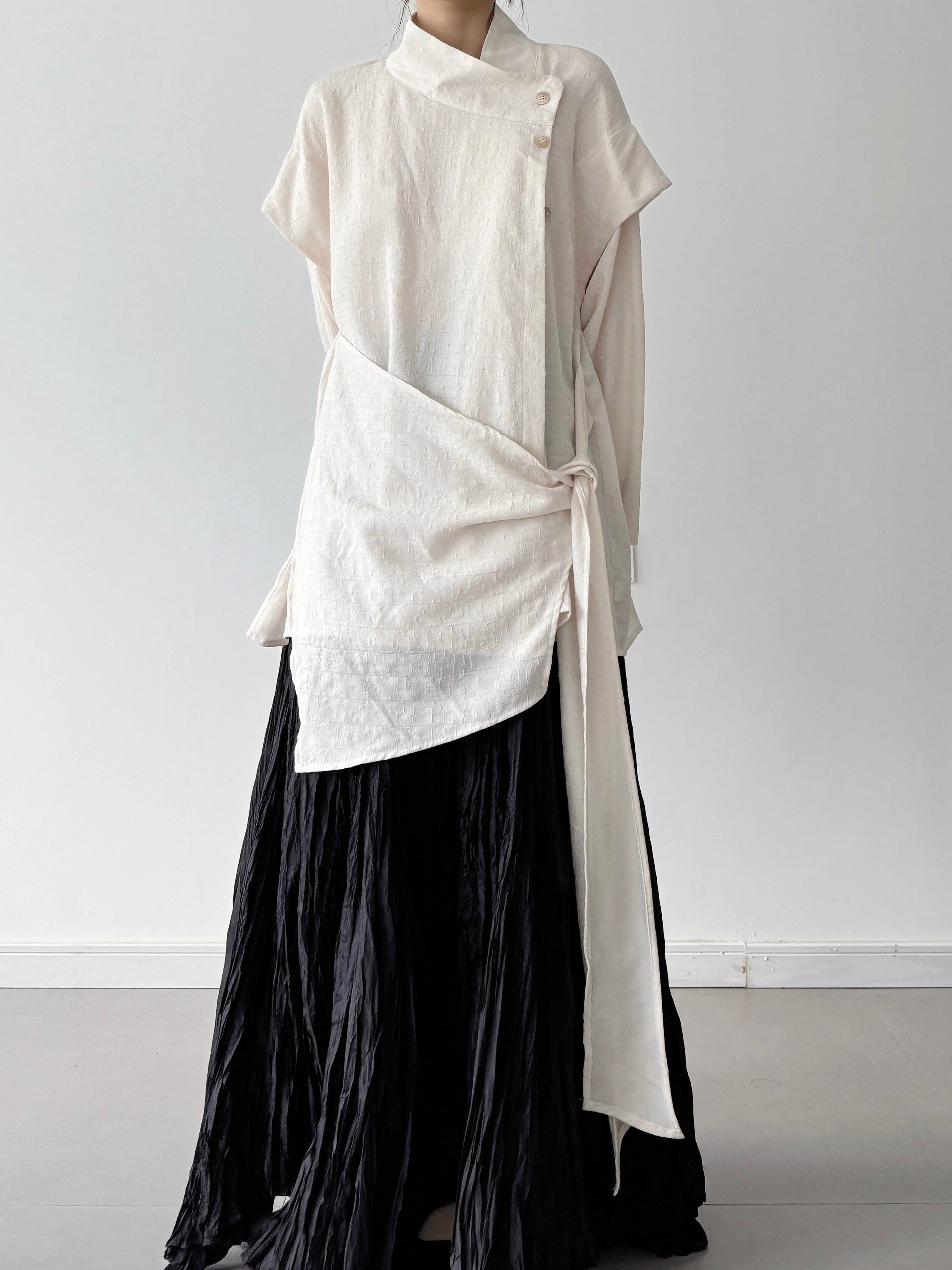 ジャガードレイヤードスタイルサイドボタントップス。