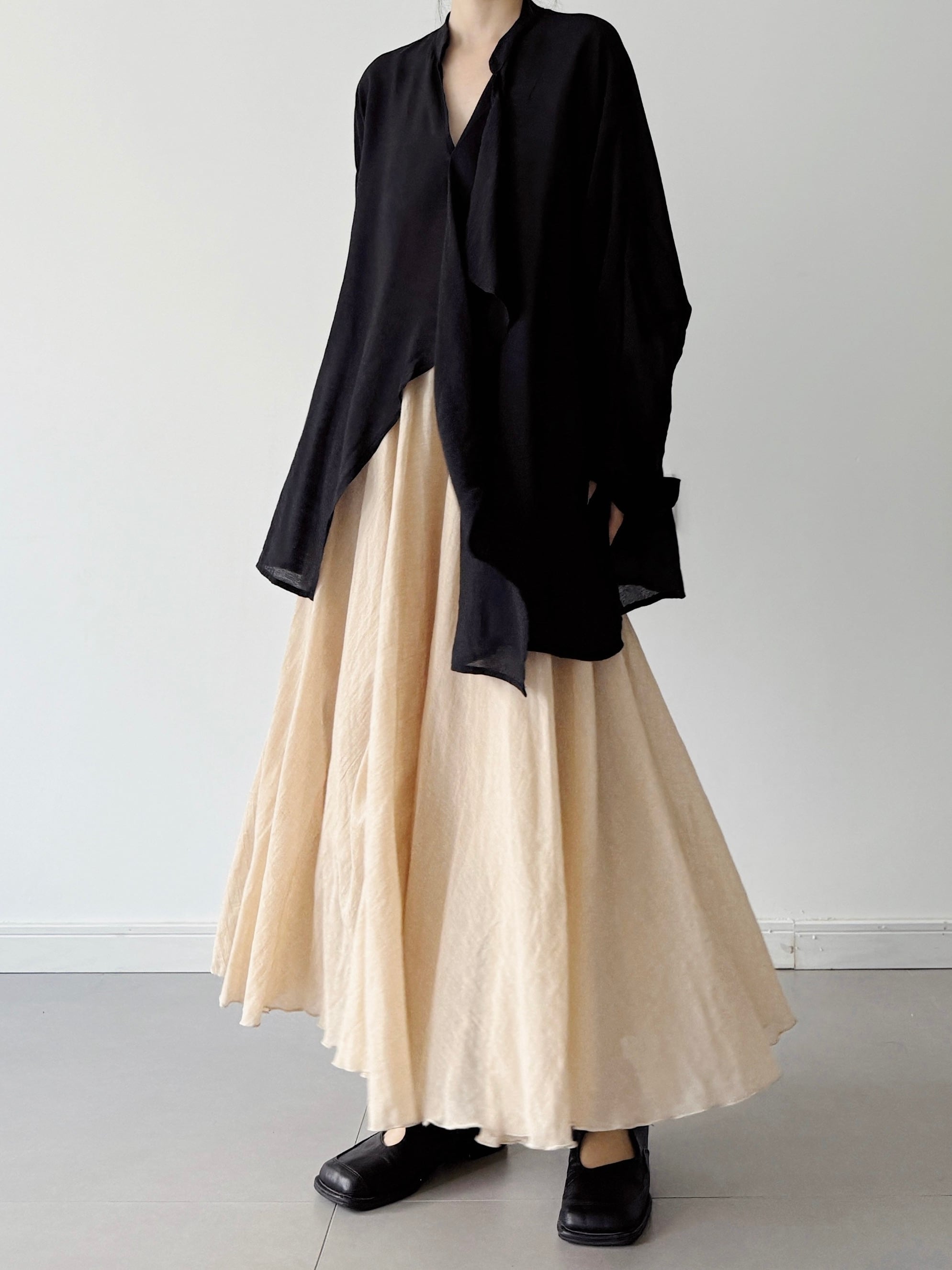 ゆったりとしたシルエットで大人カジュアルに仕上がる一枚。