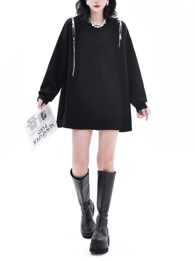 斜めに走るジッパーが個性を際立たせるモードな一枚。
