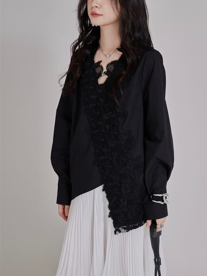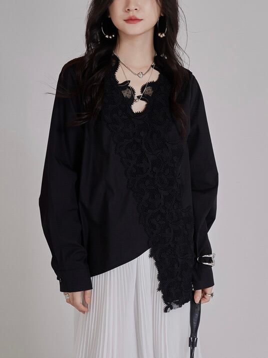 Irregular loose stitch lace shirt [T2487]