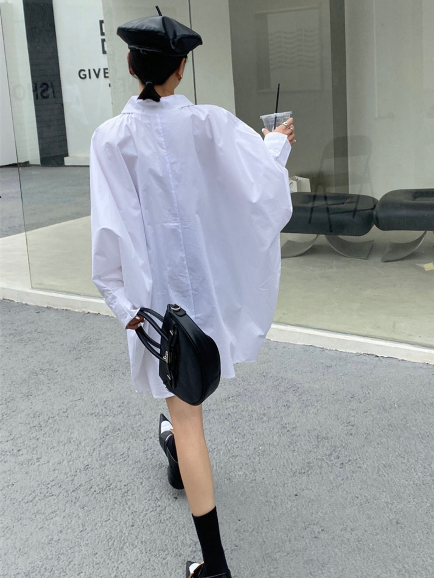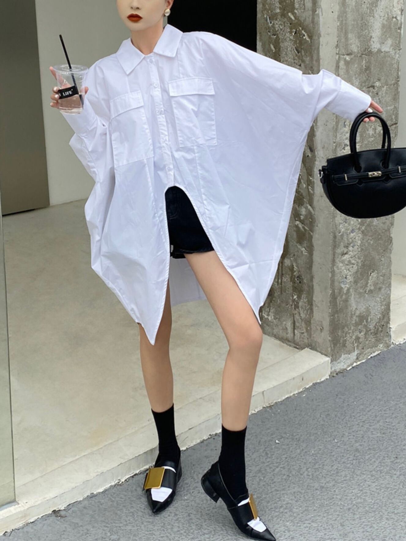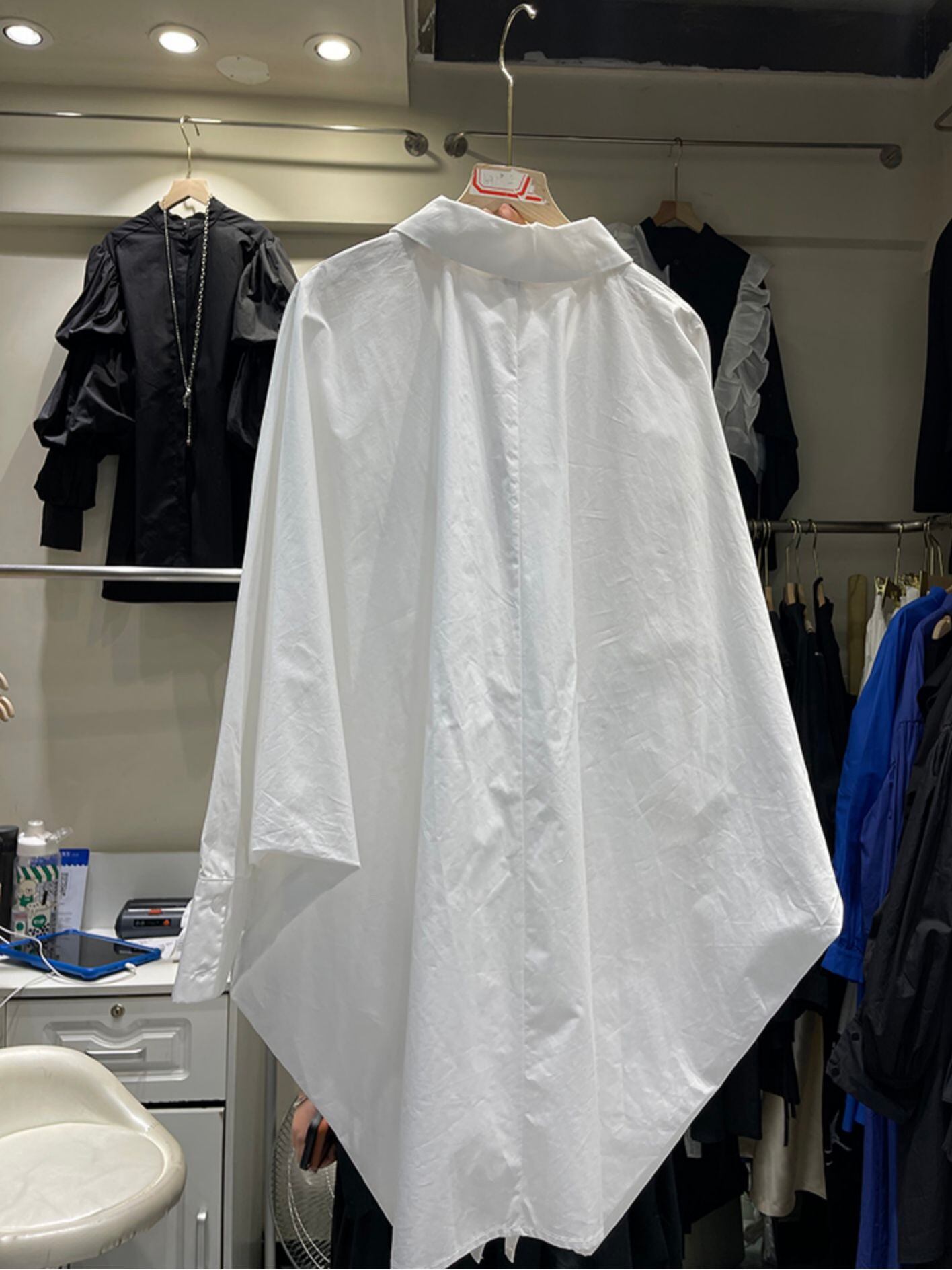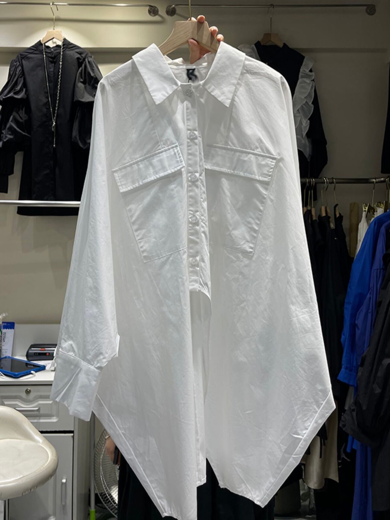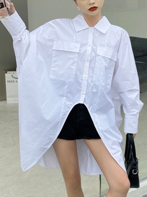 イレギュラーミッドレングスオーバーサイズシャツ。