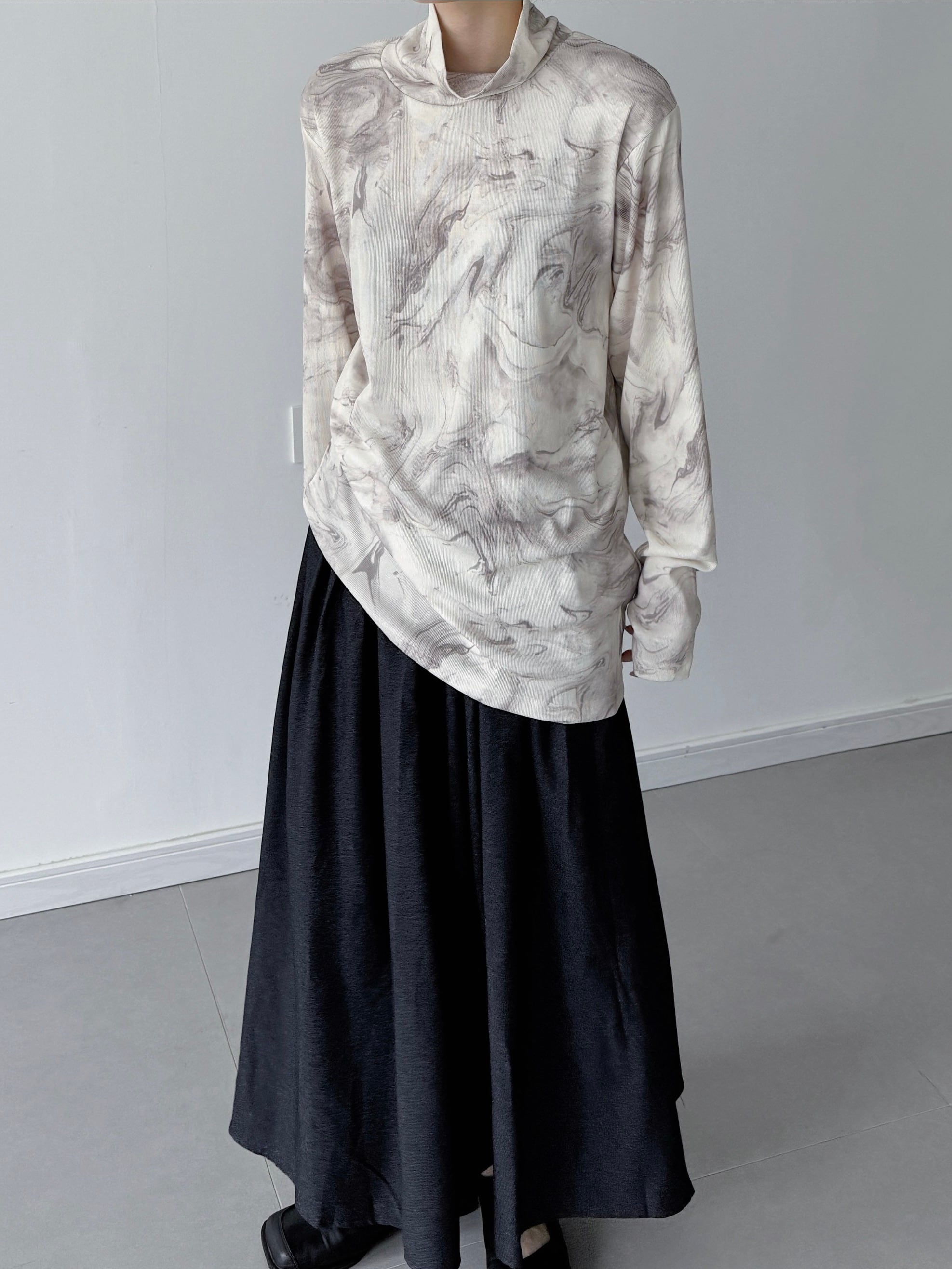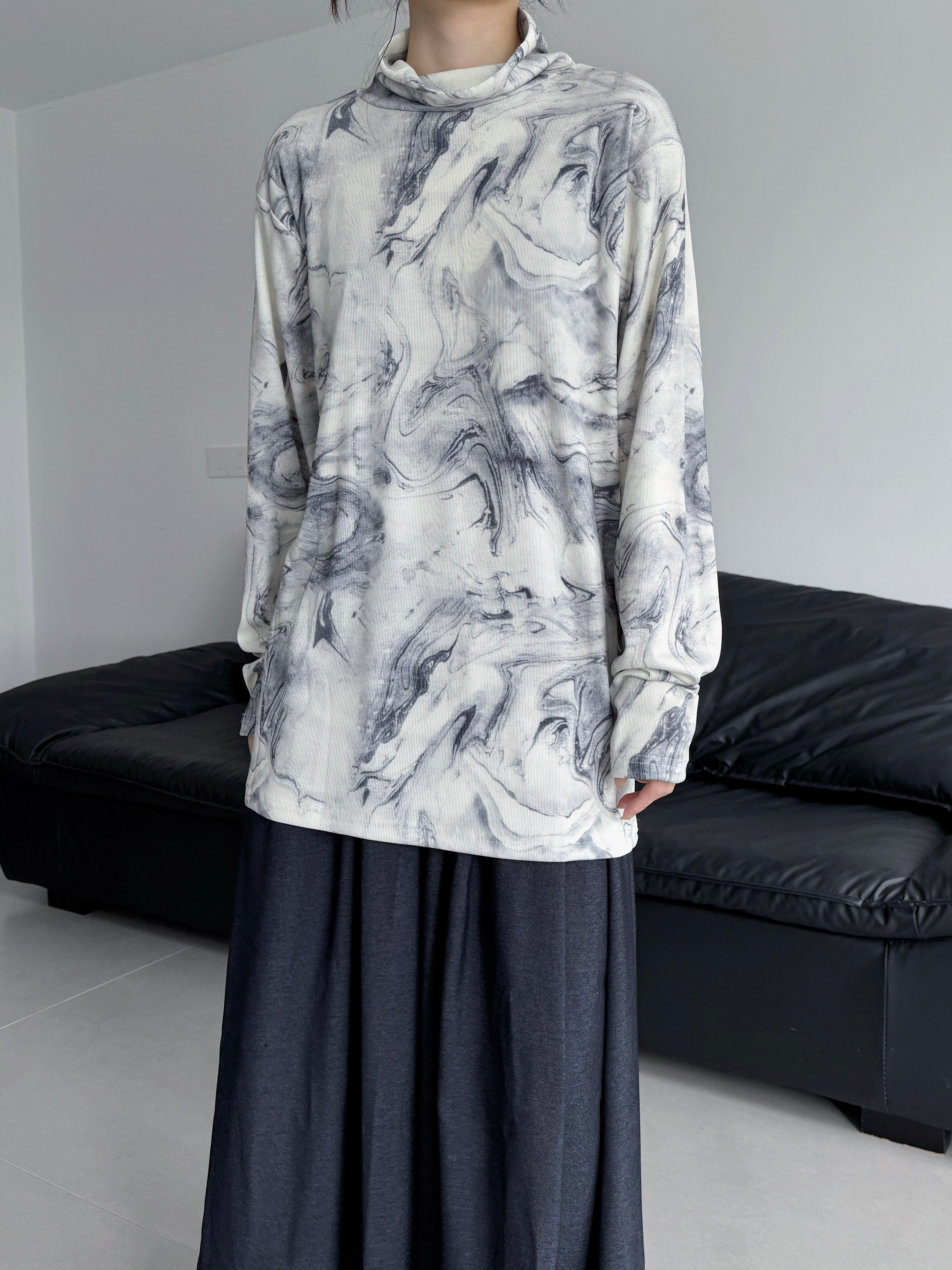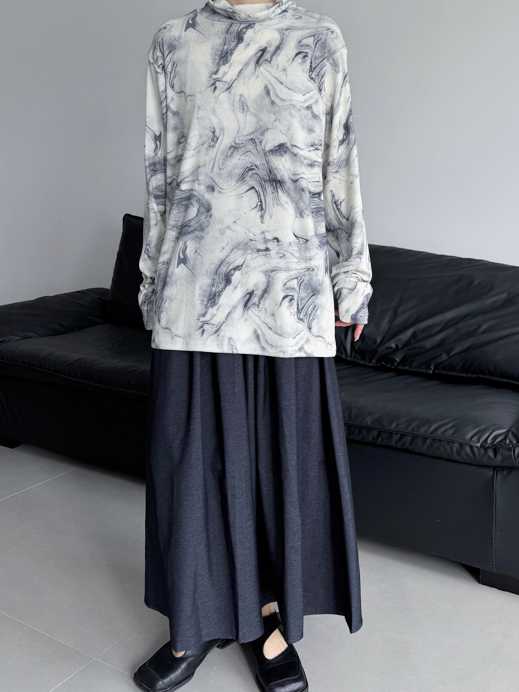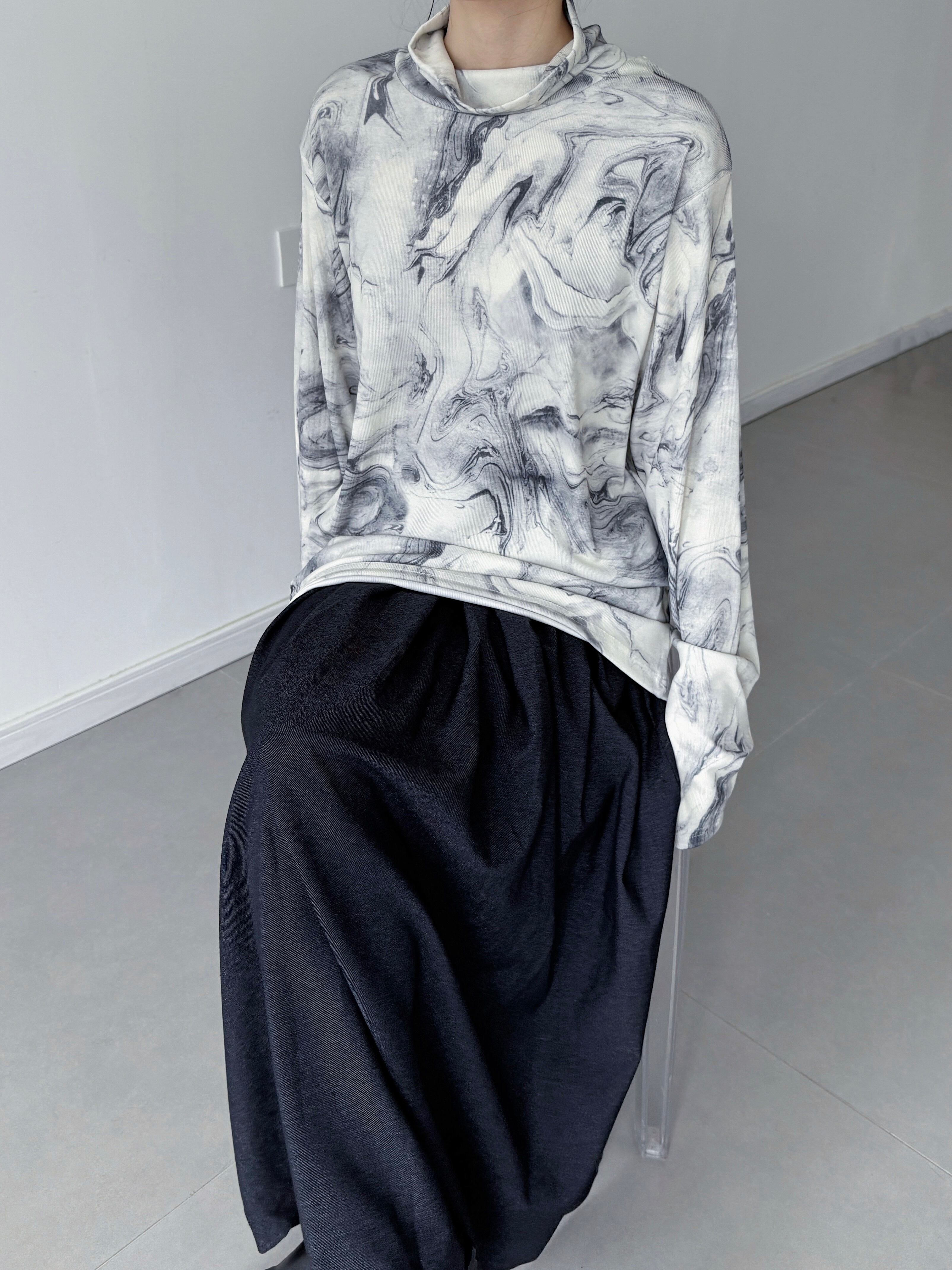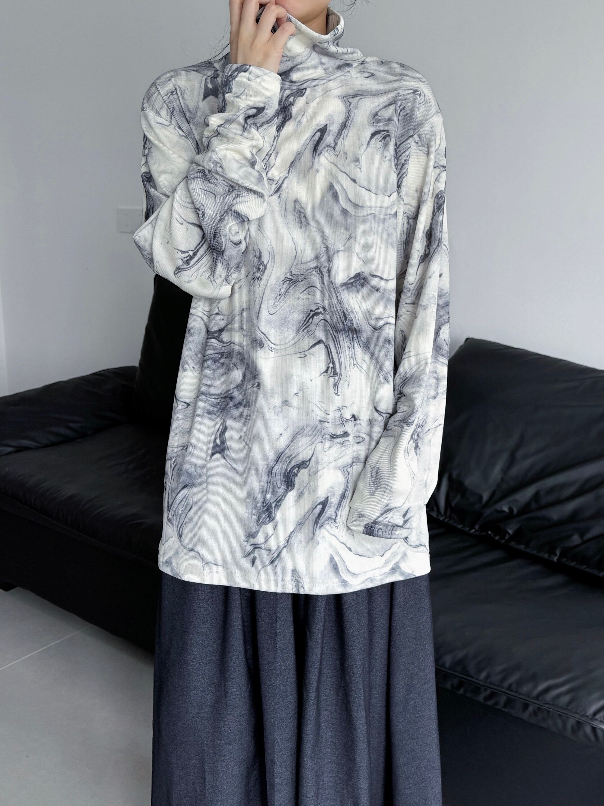 Ink painting slim long-sleeved knit T-shirt 2color [T2515]