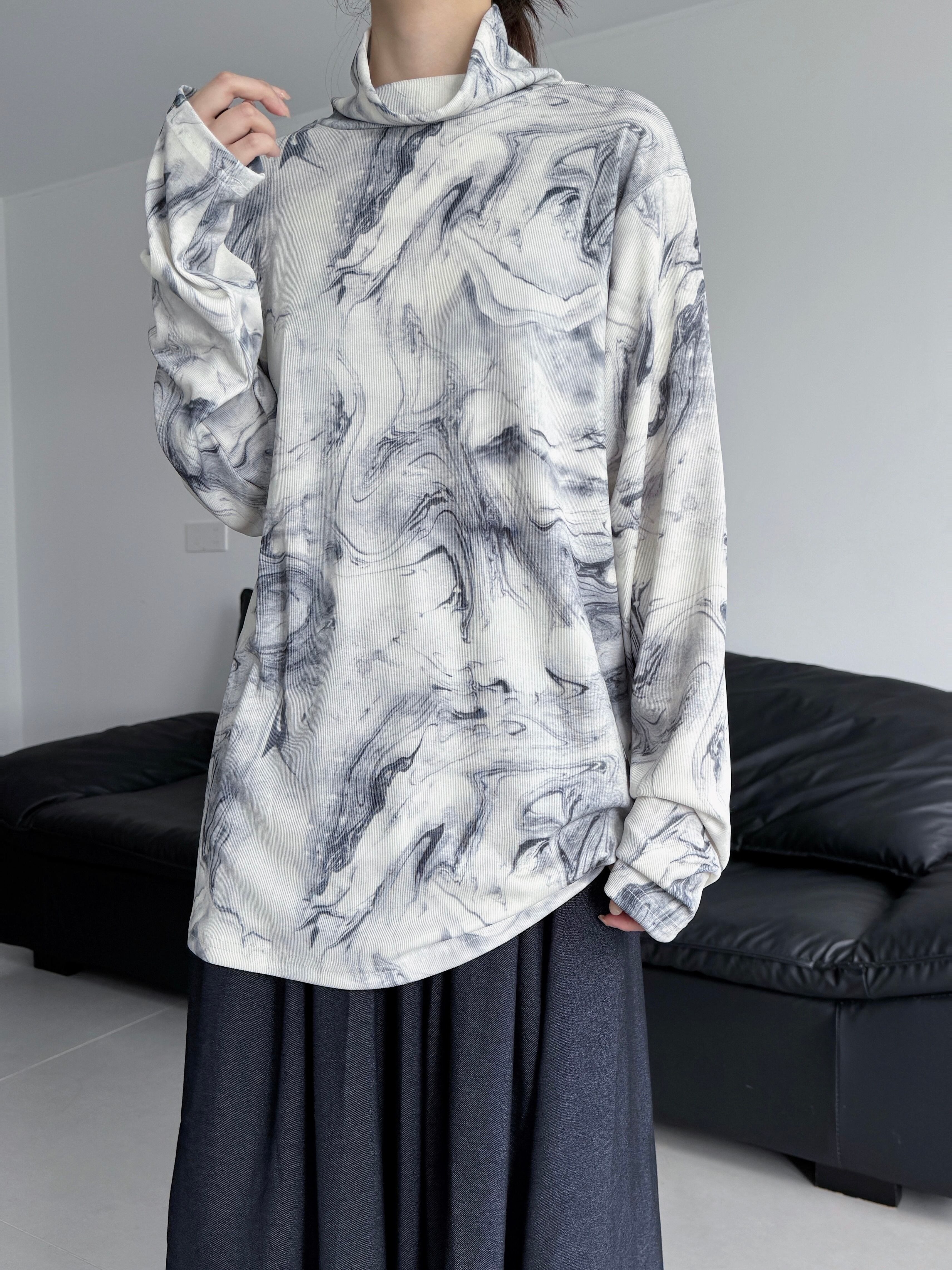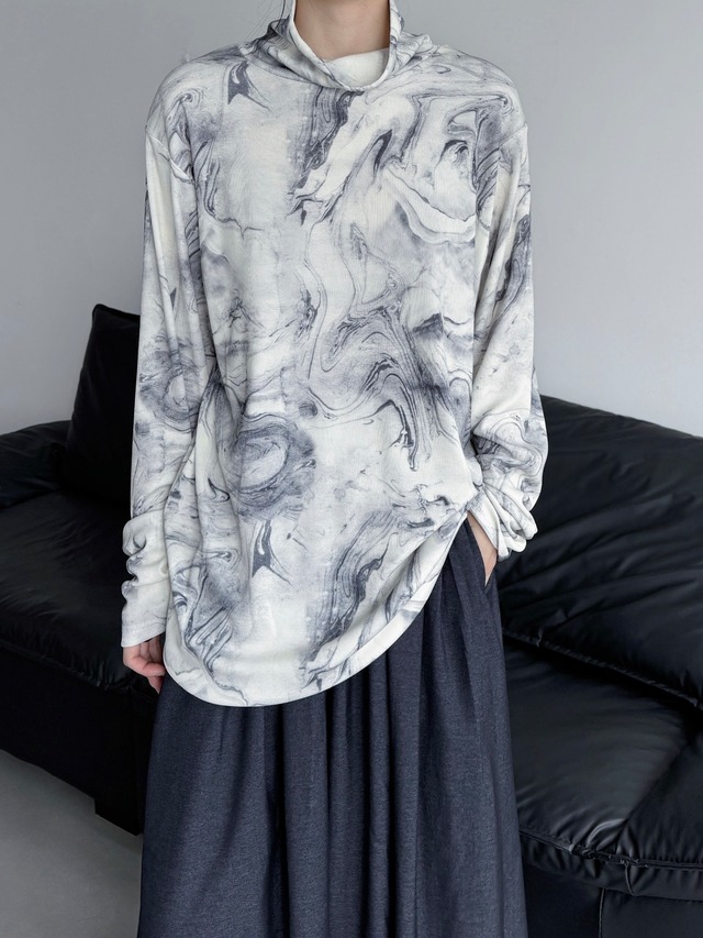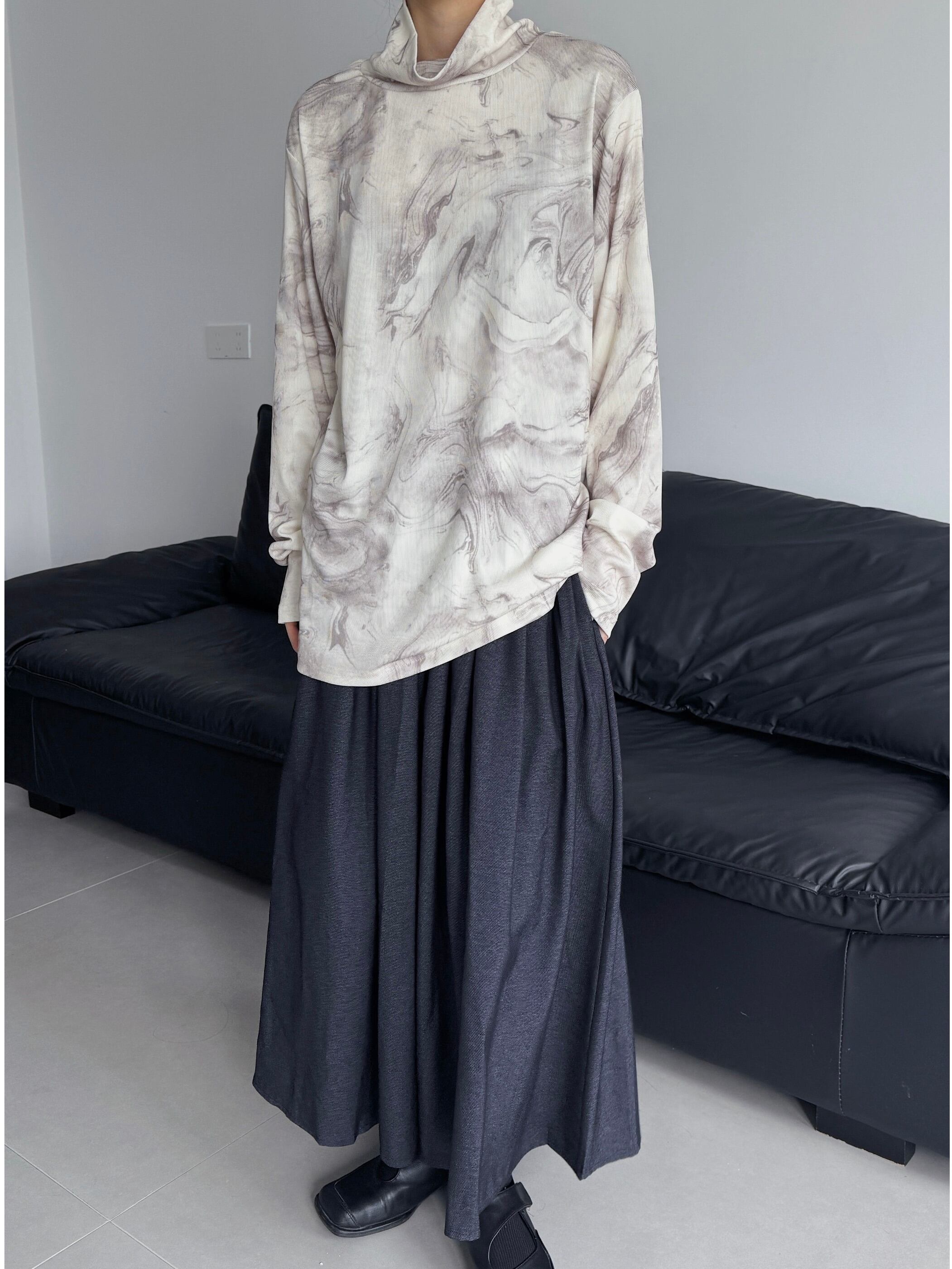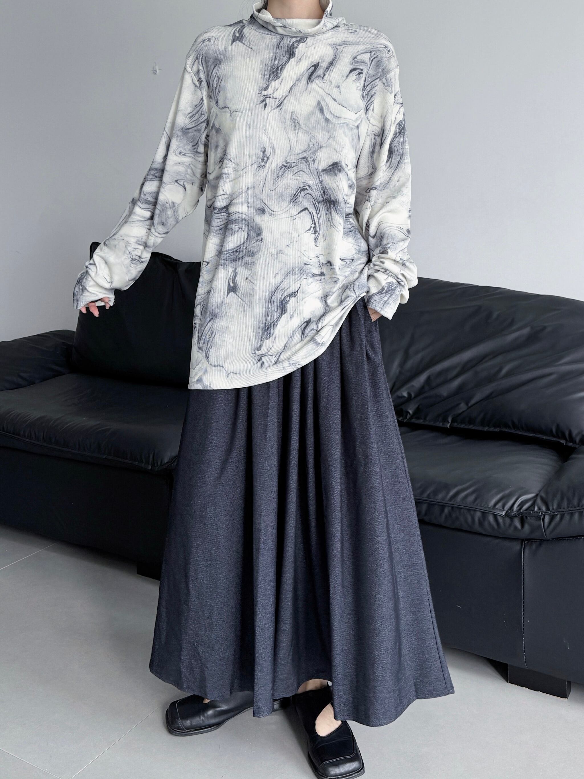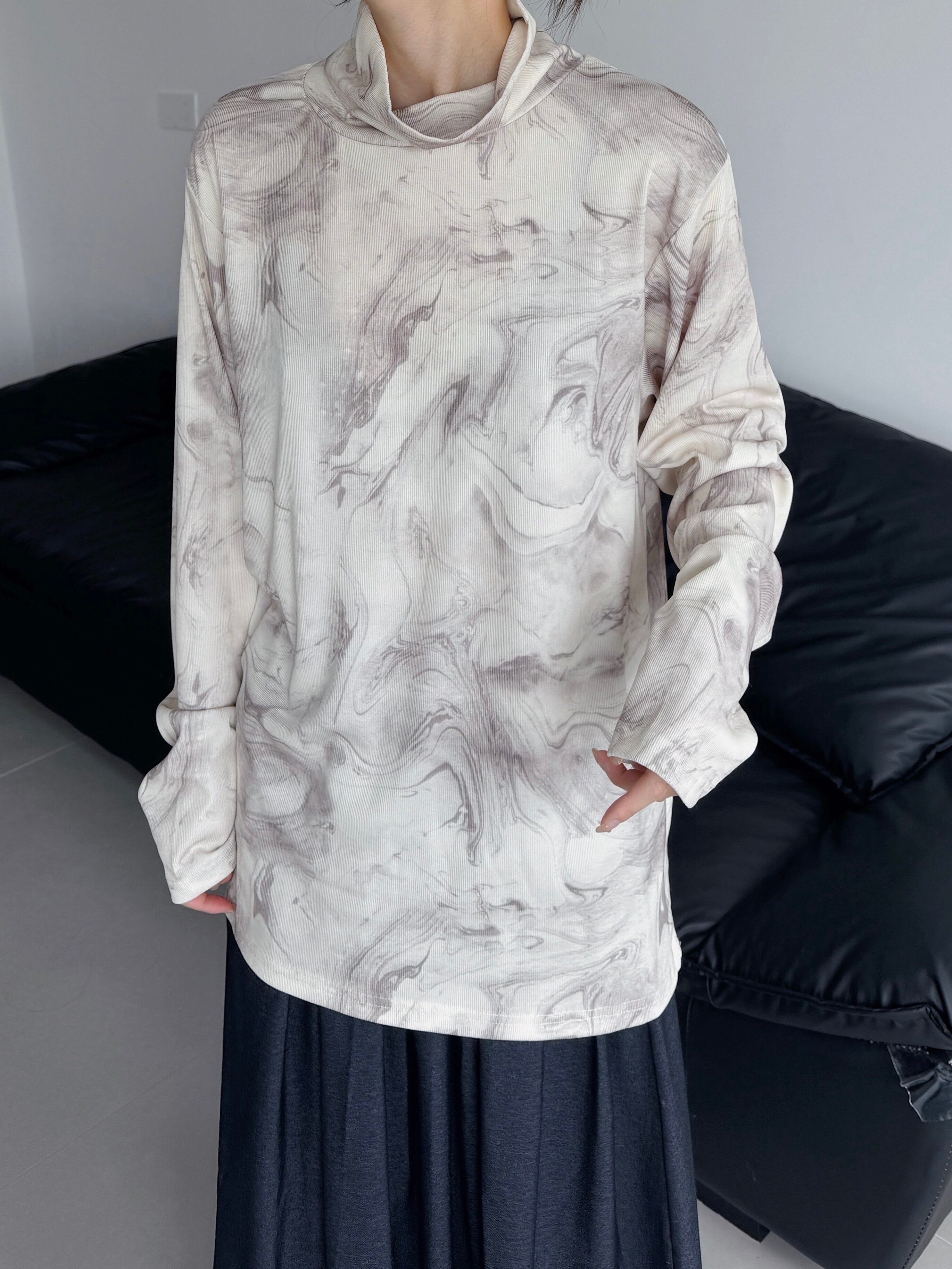 Ink painting slim long-sleeved knit T-shirt 2color [T2515]