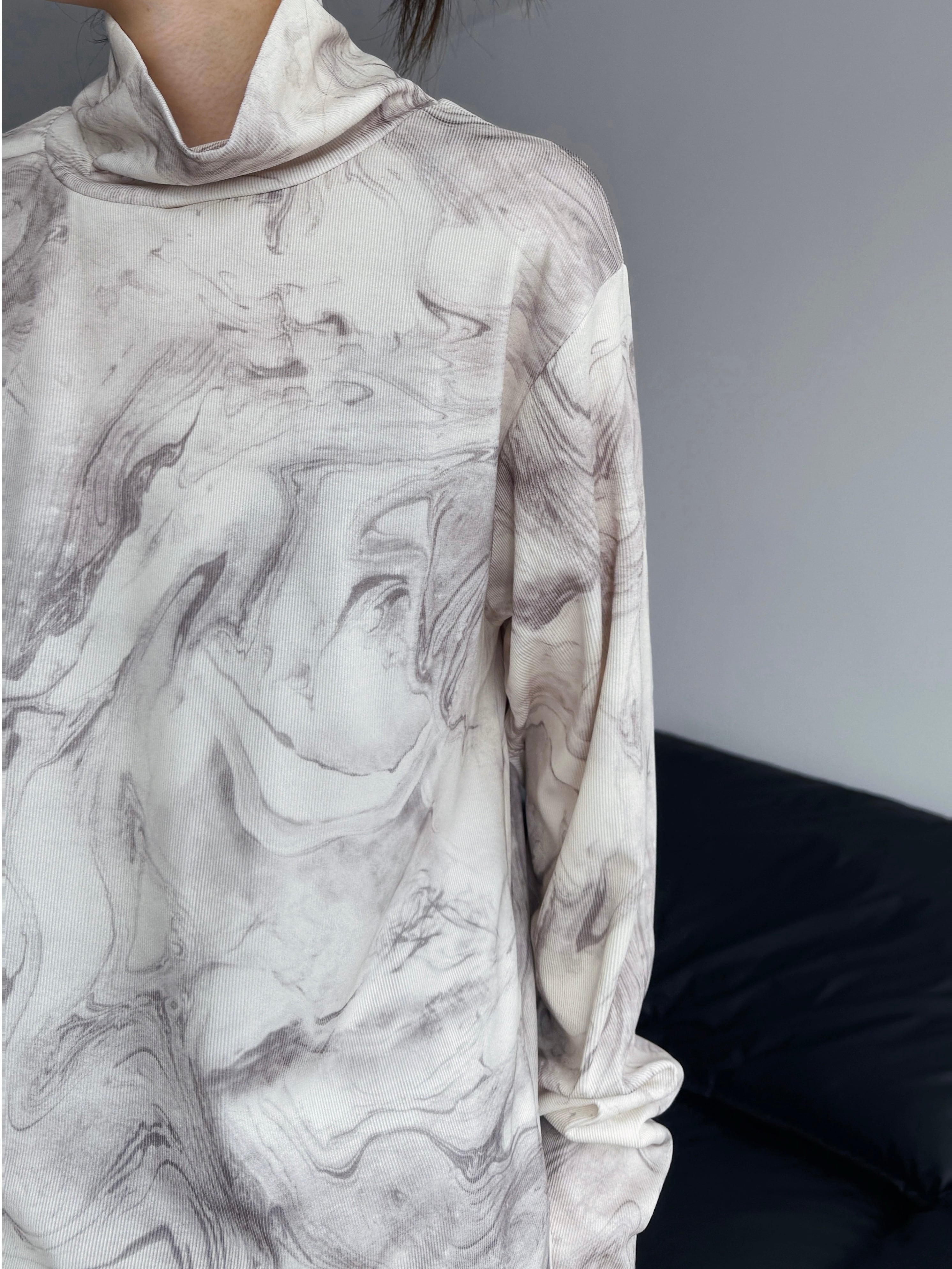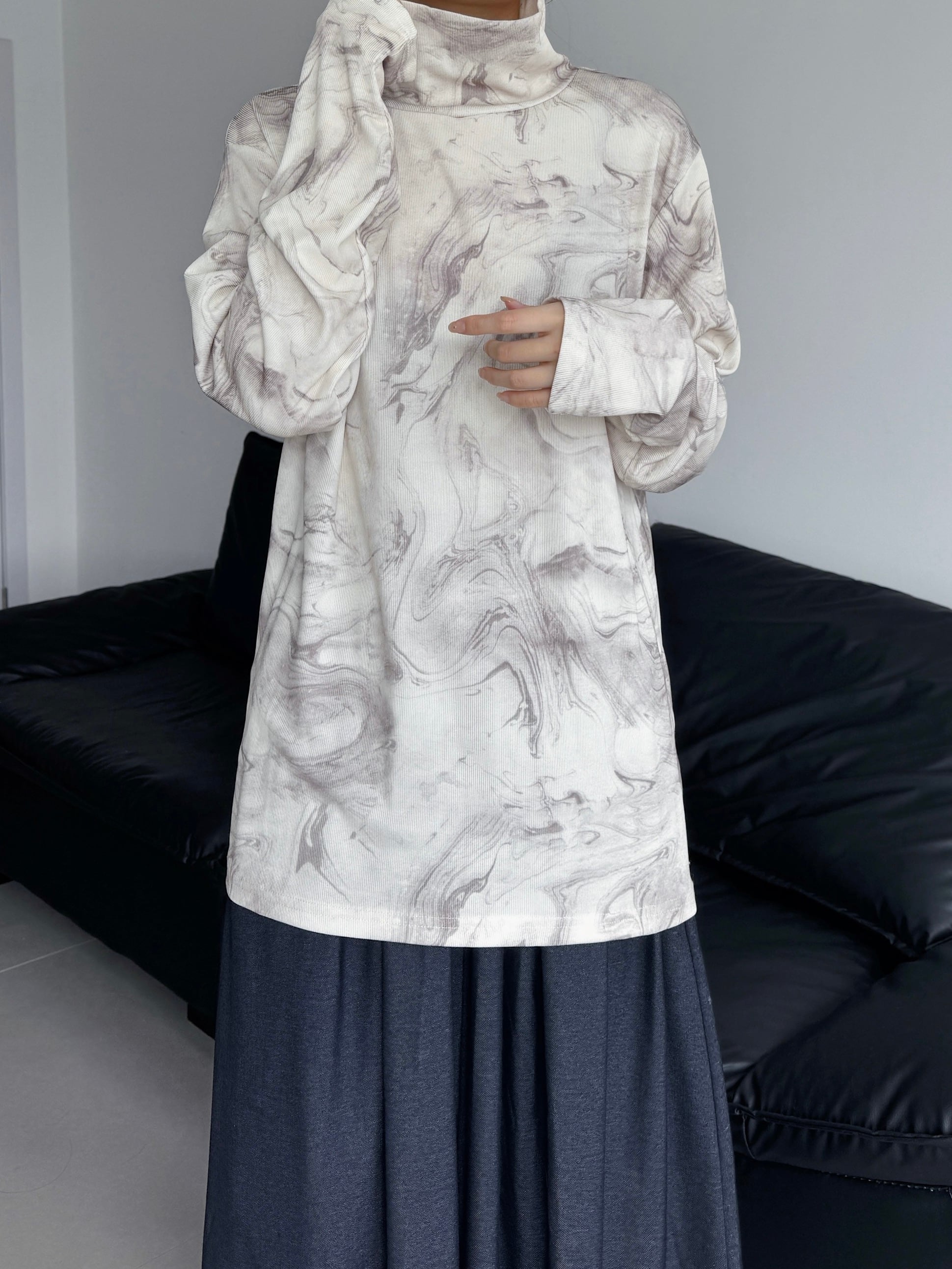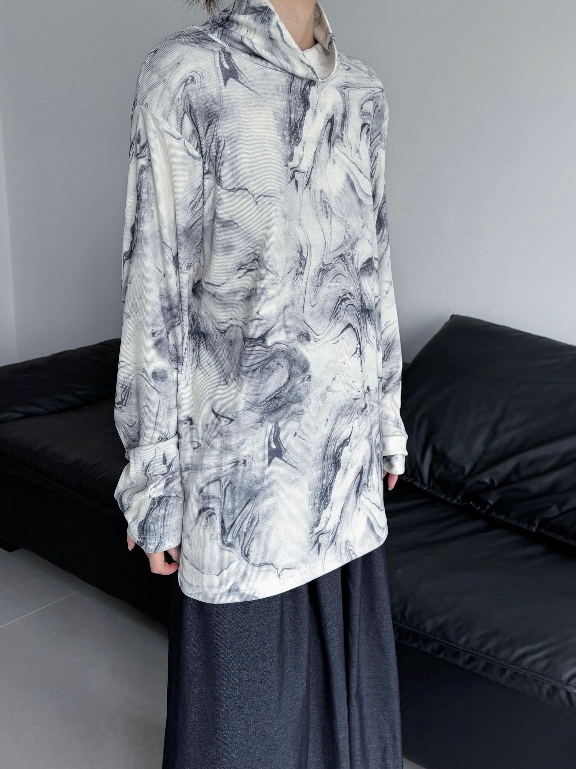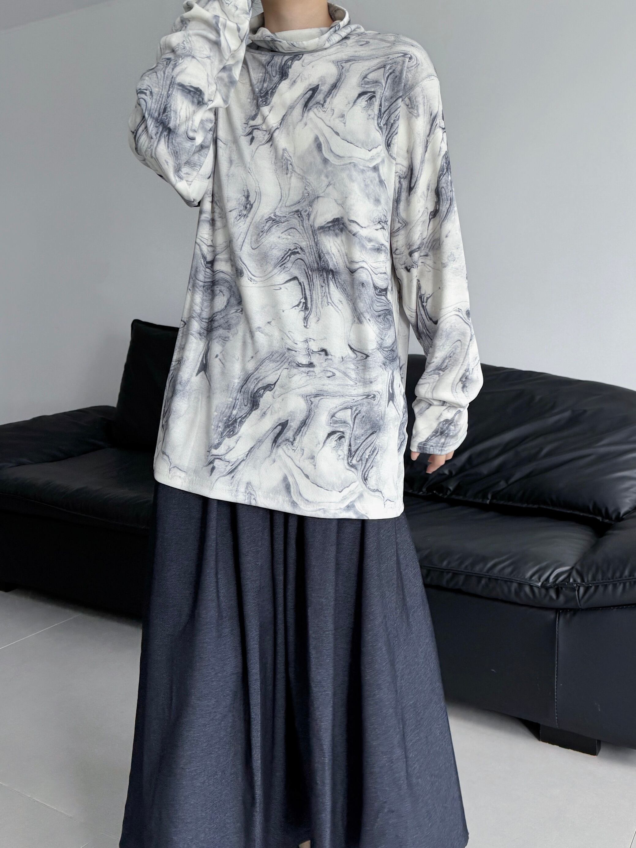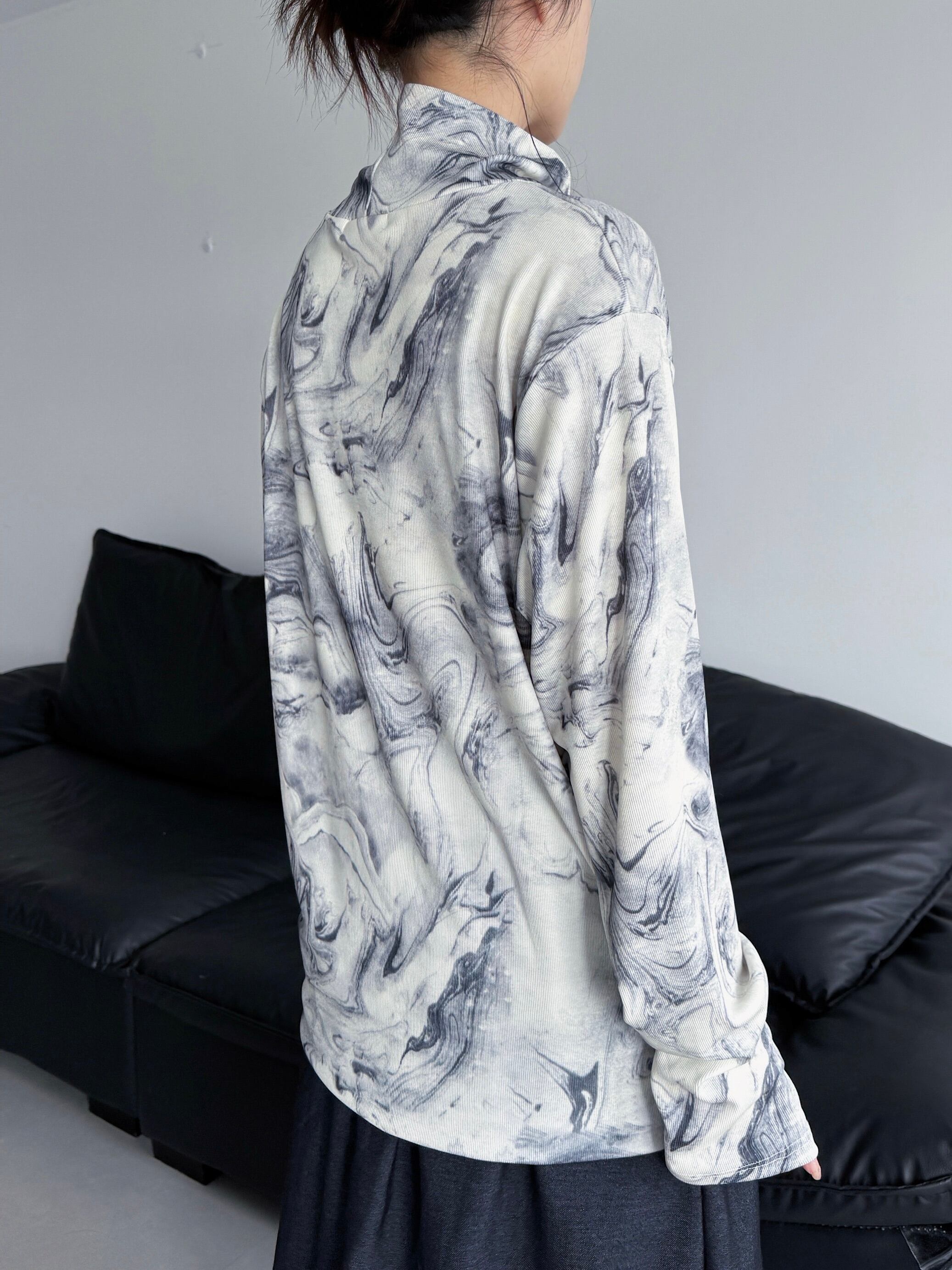 Ink painting slim long-sleeved knit T-shirt 2color [T2515]