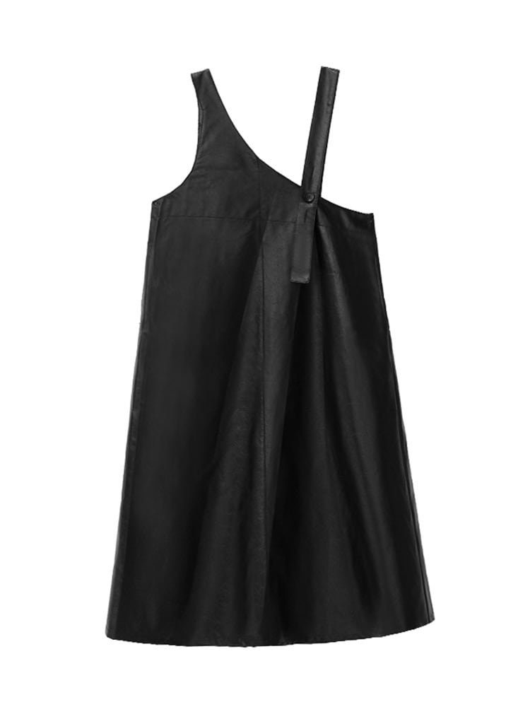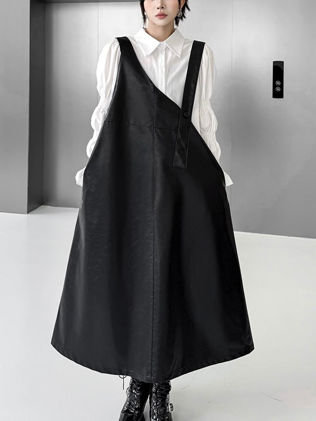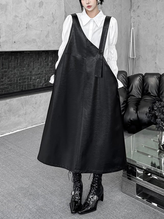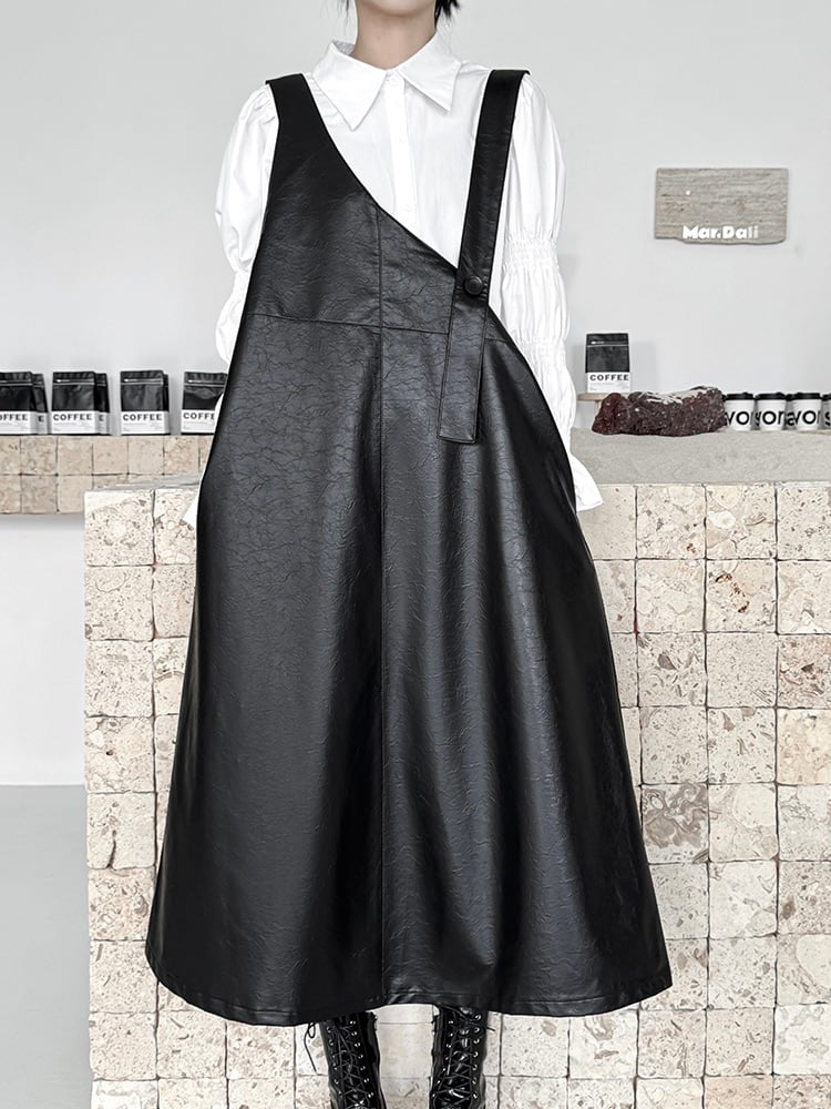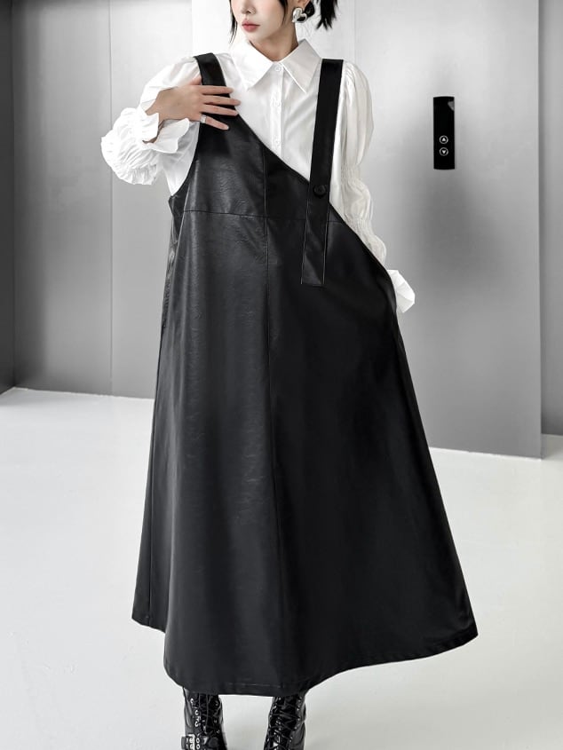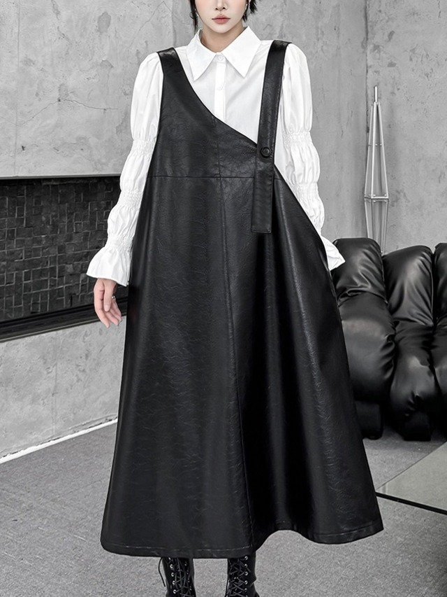 ユニークPUレザーAラインジャンパースカート。