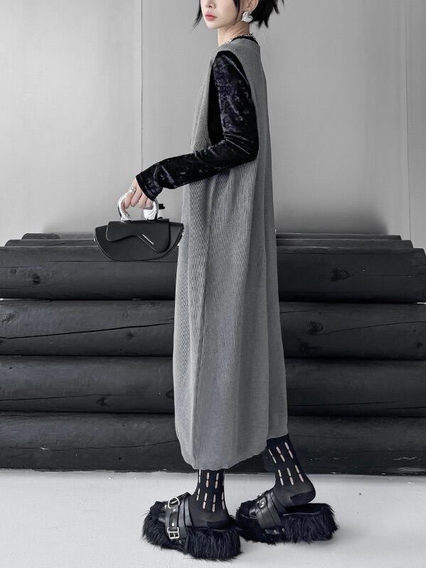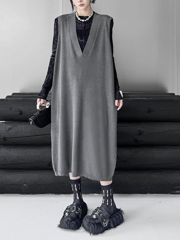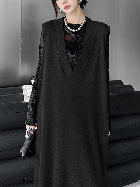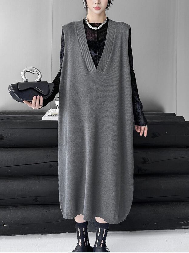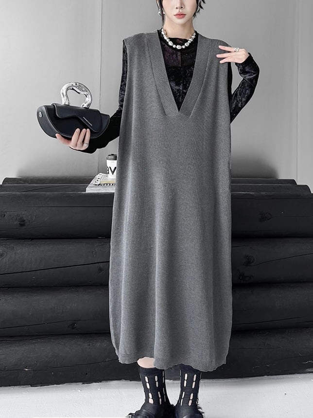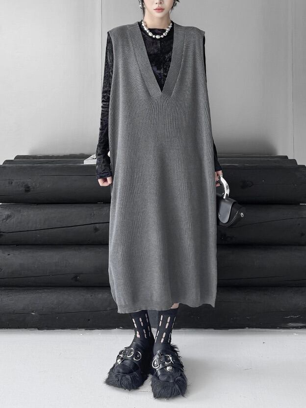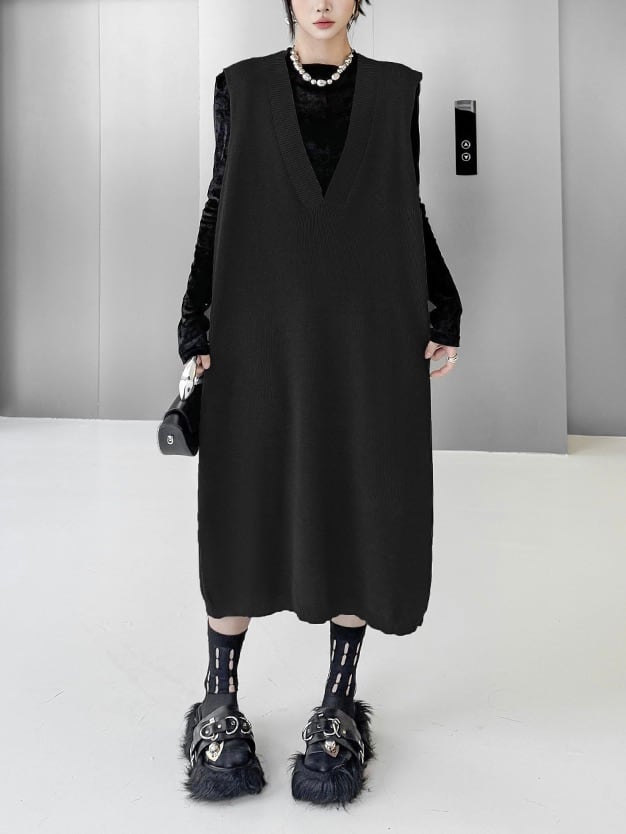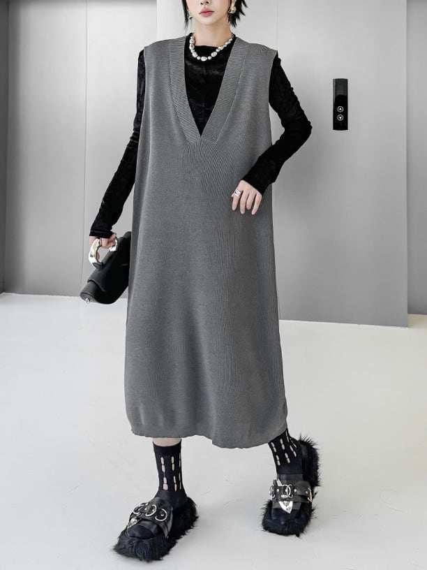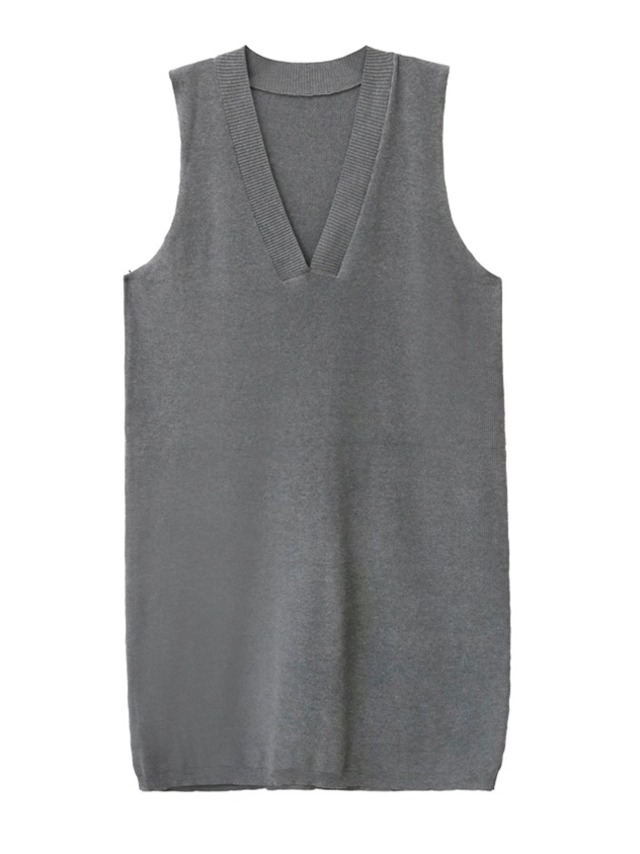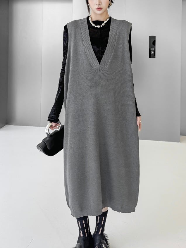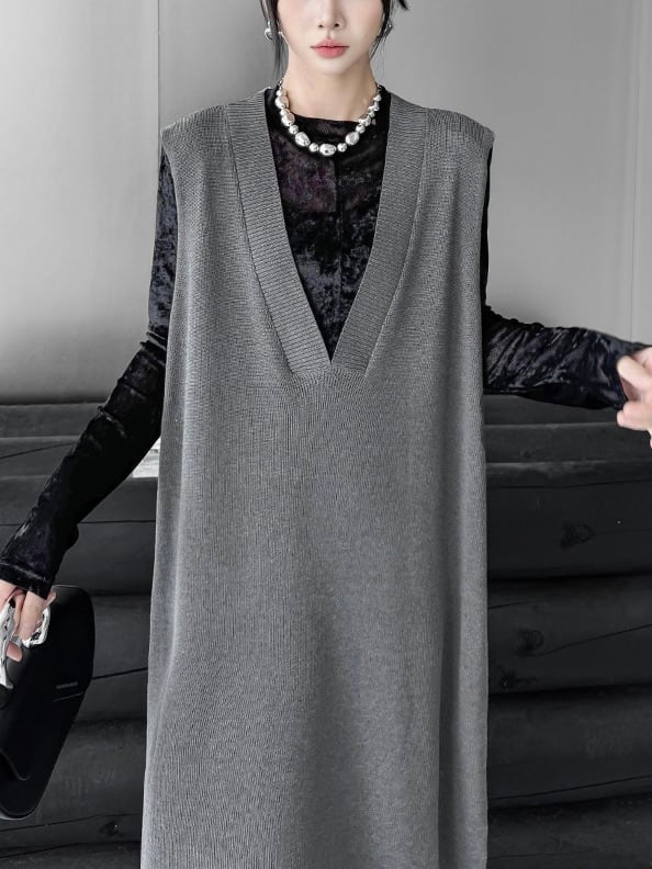 Deep V-neck sleeveless knit dress 2color [T2524]
