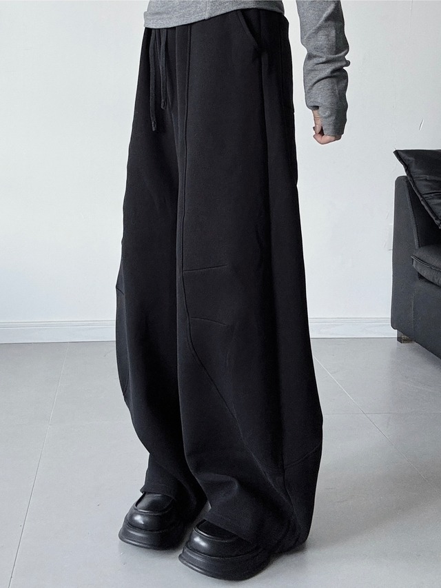 ドローストリングドレープソフトスウェットワイドパンツ。