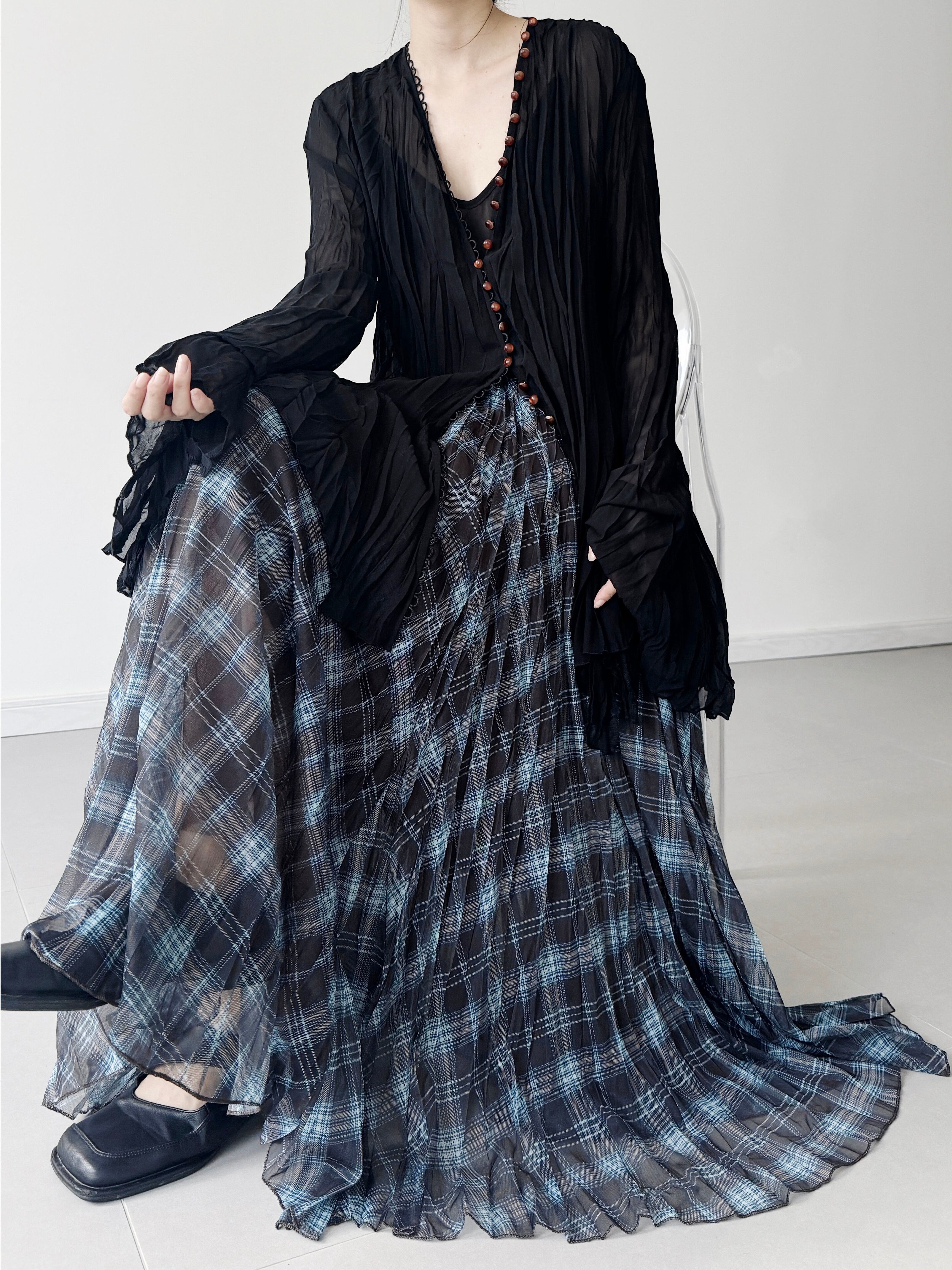 レトロルーズブループリントプリーツスカート。