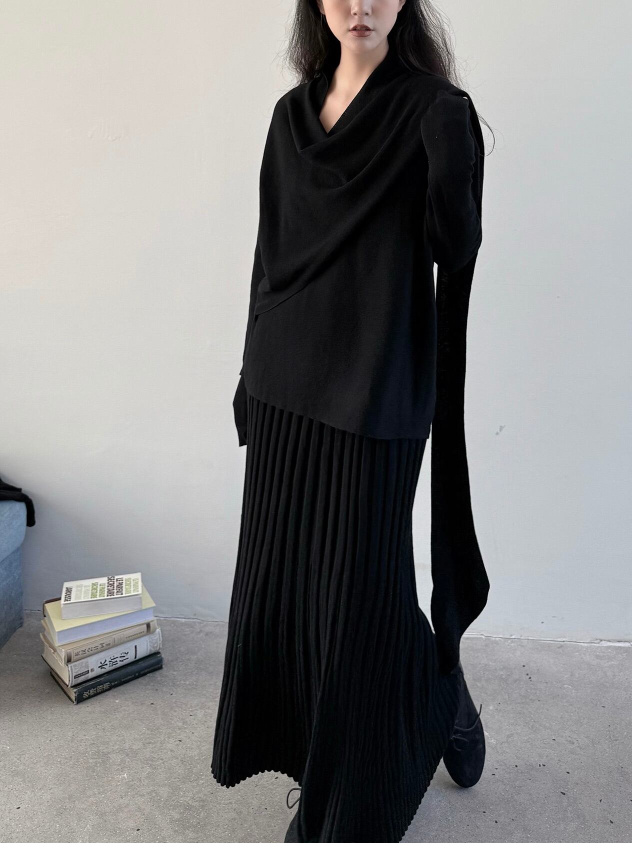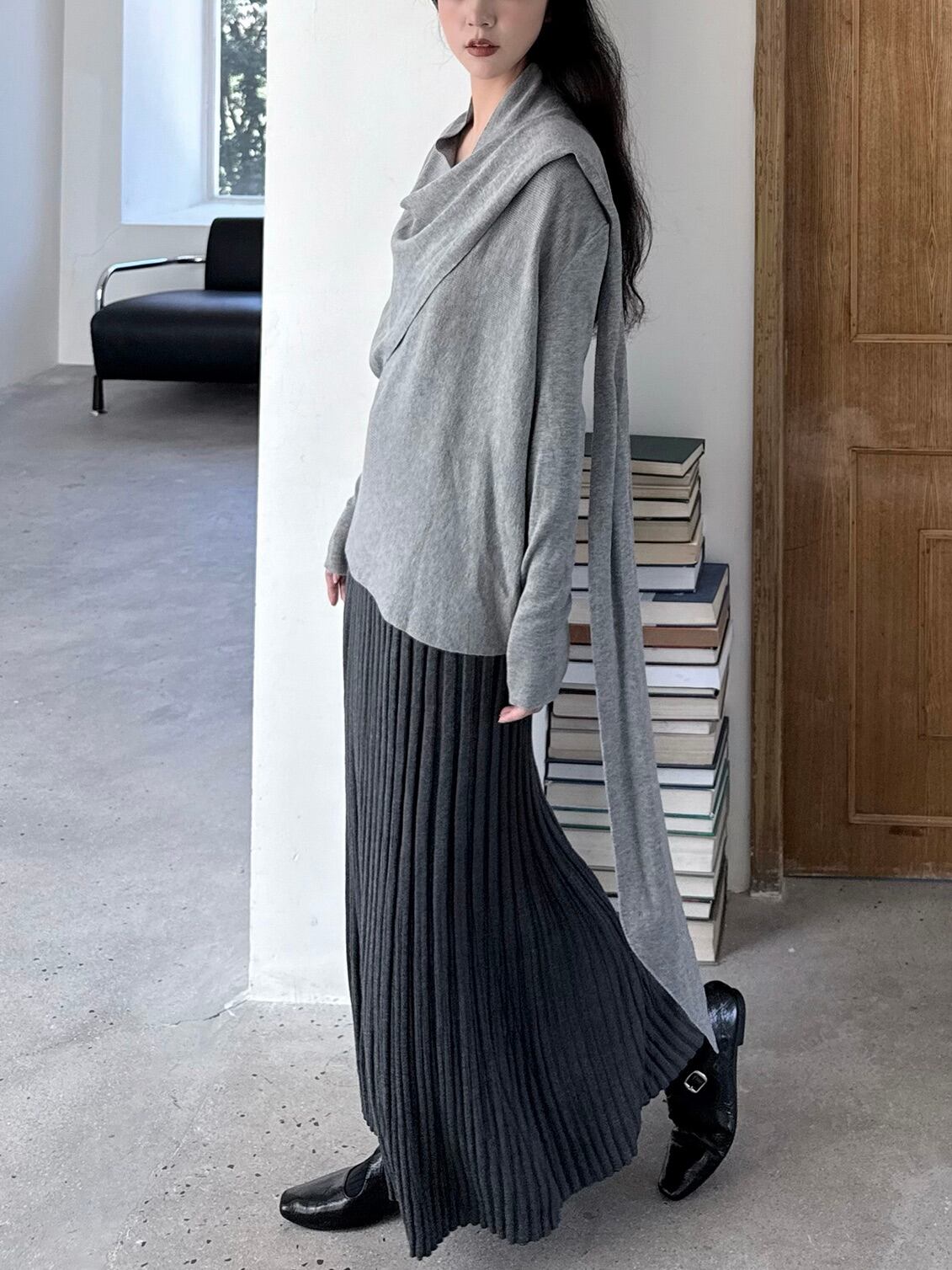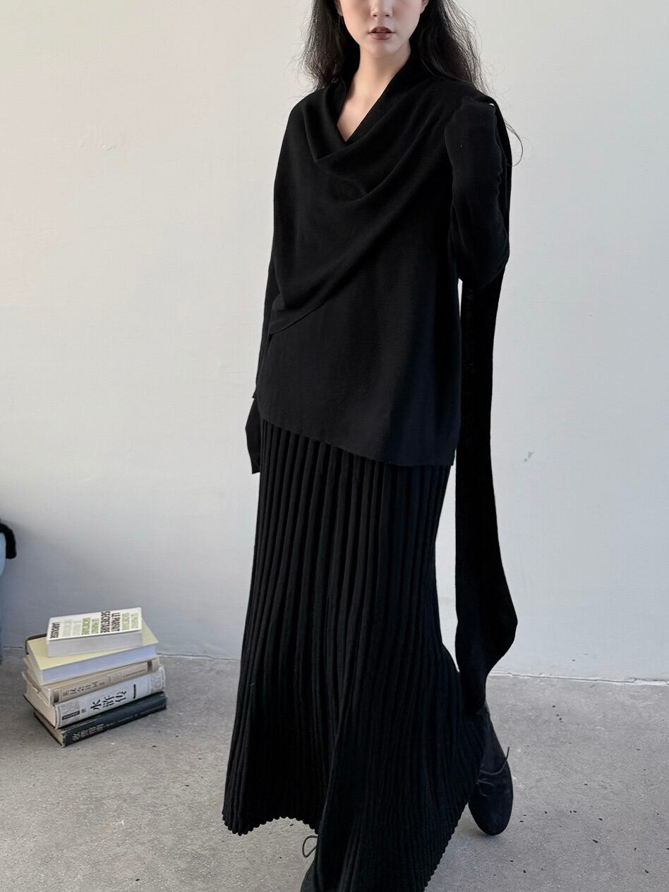 ウールブレンドレイジーニットプリーツスカート。