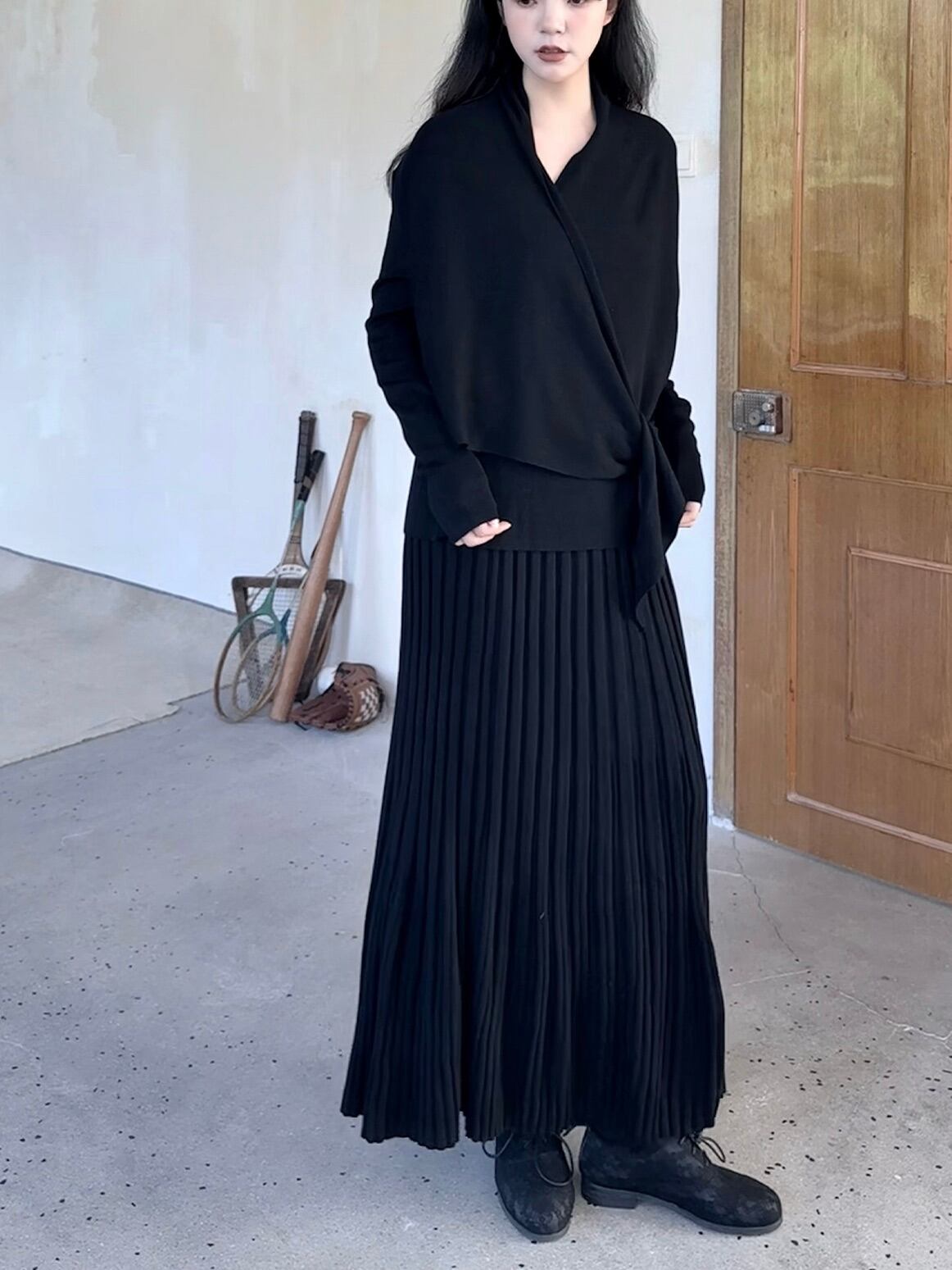A-line wool blend lazy knit pleated skirt 2color [T2549]