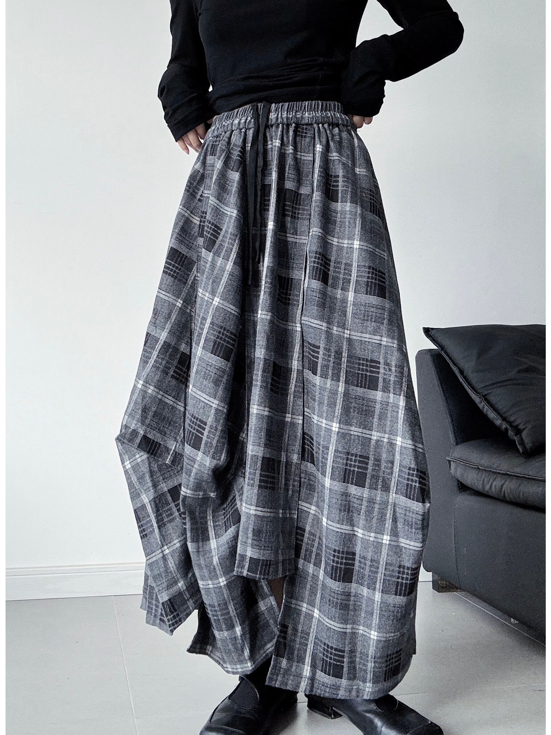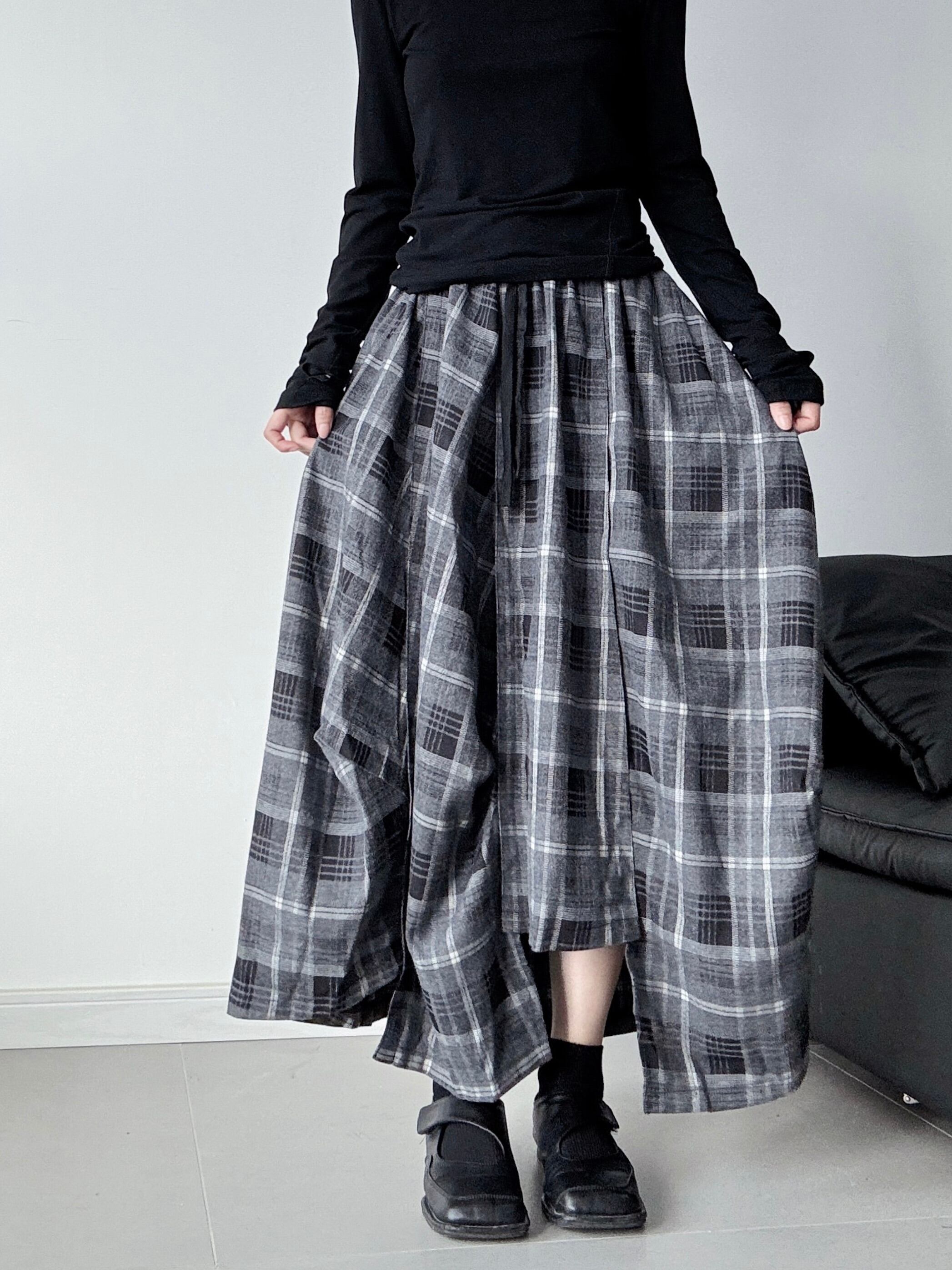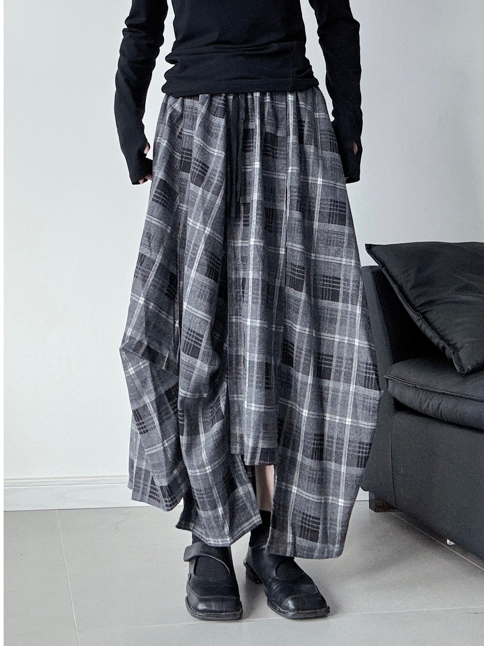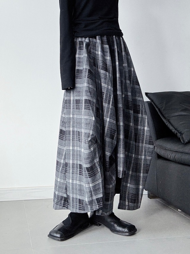 リンクルディアゴナルチェックドローストリングウールスカート。