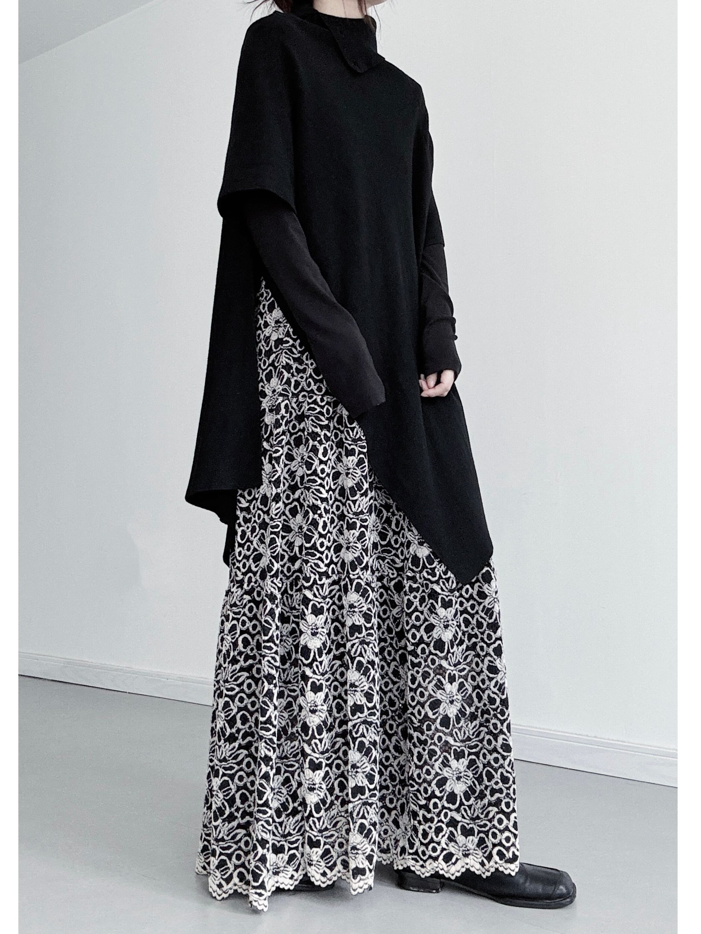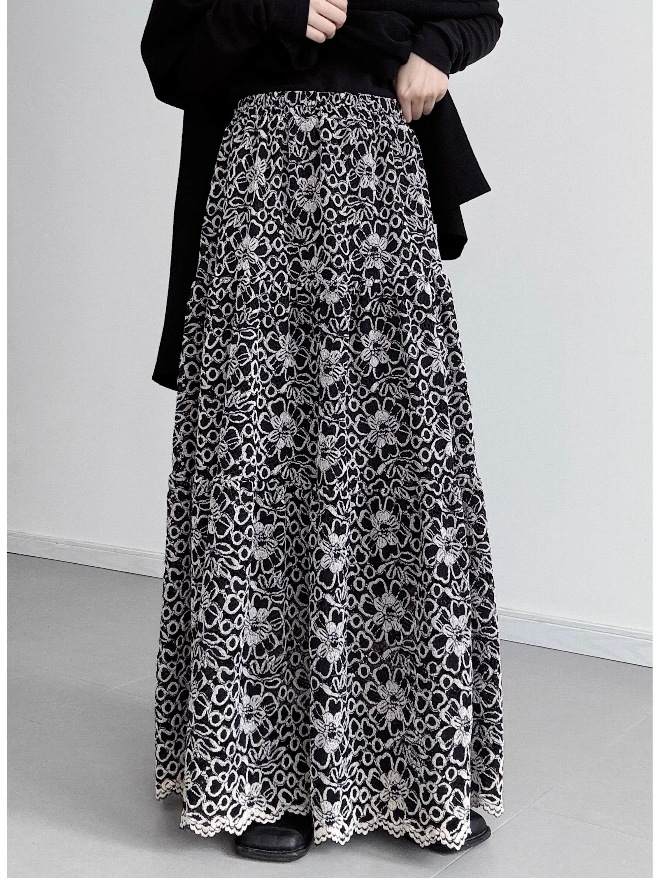 ホロークロシェフローラルロングスカート。