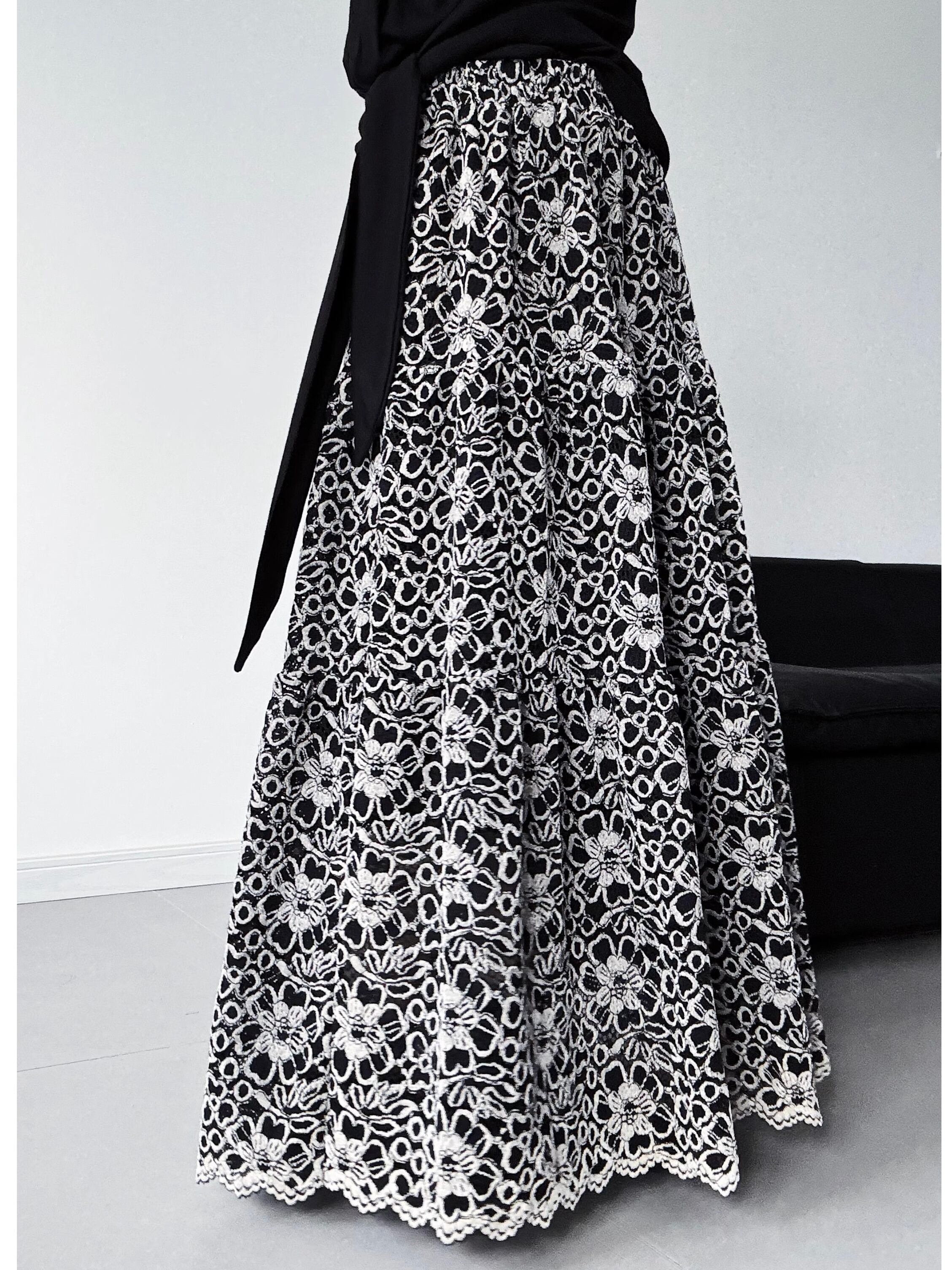 Hollow crochet floral long skirt [T2608]