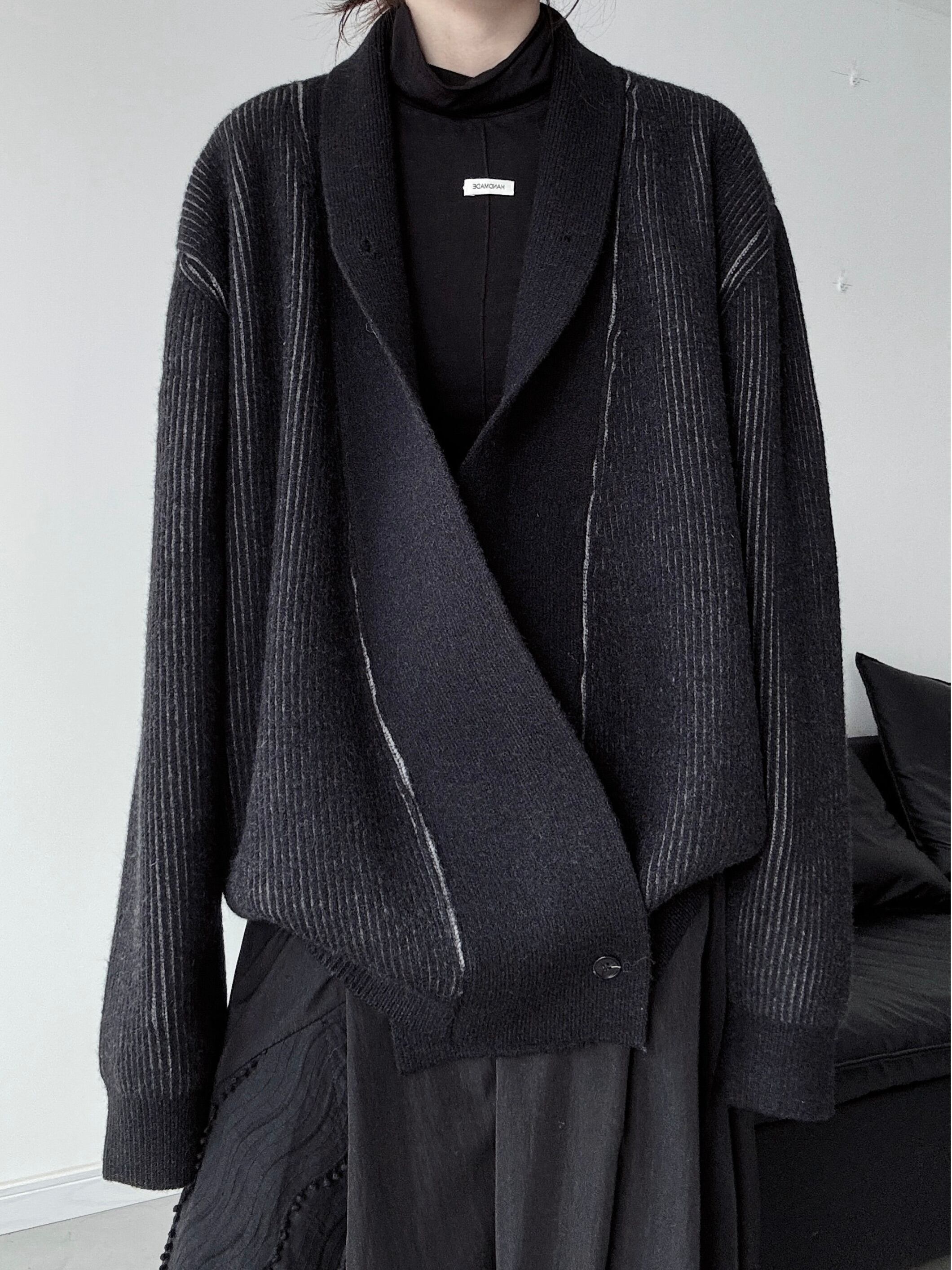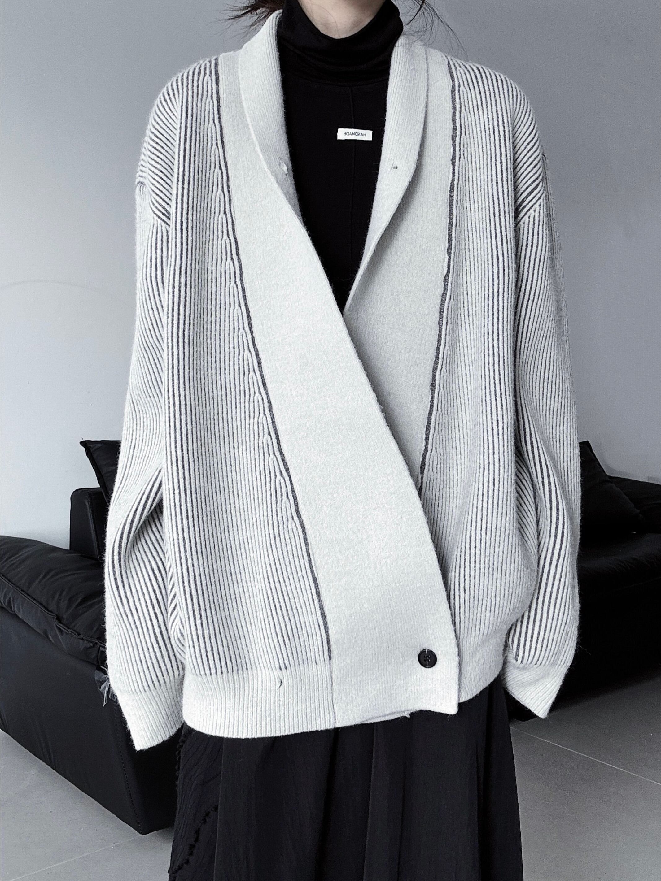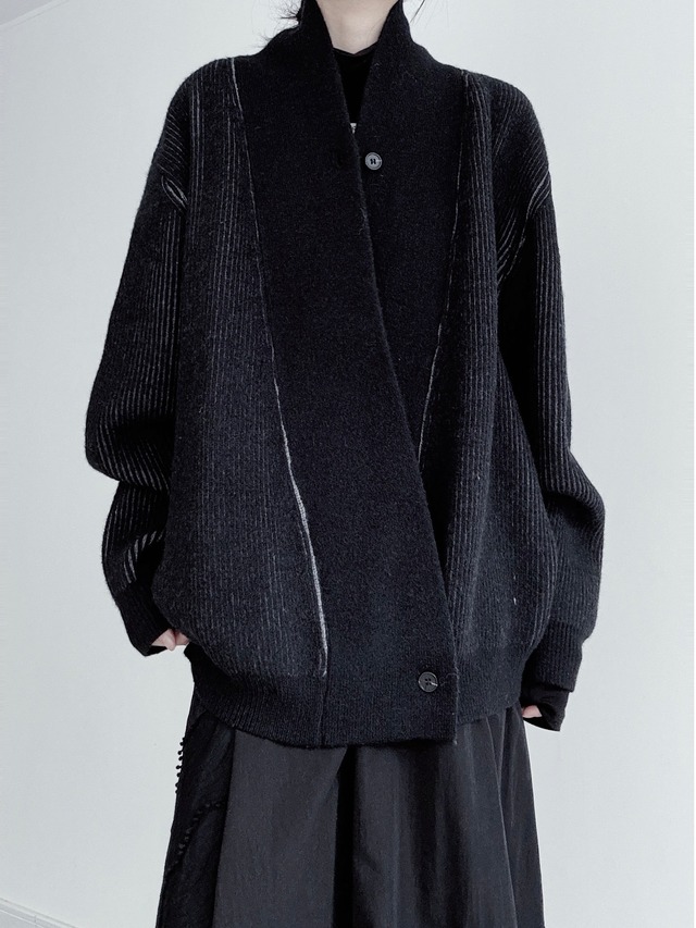 アシンメトリープラケットシングルボタンニットカーディガン。