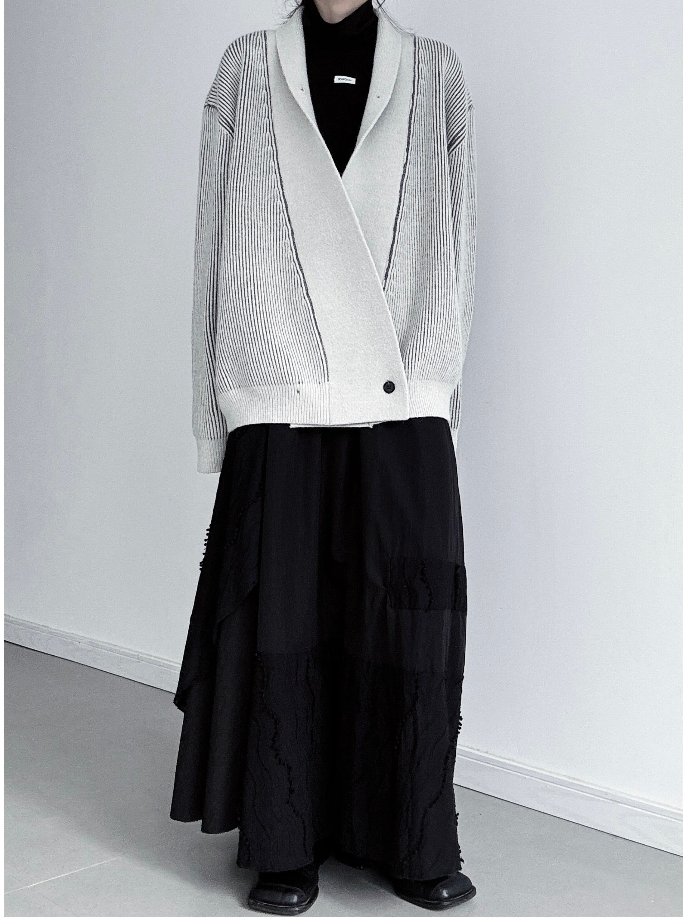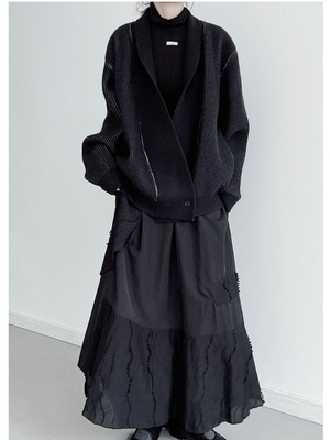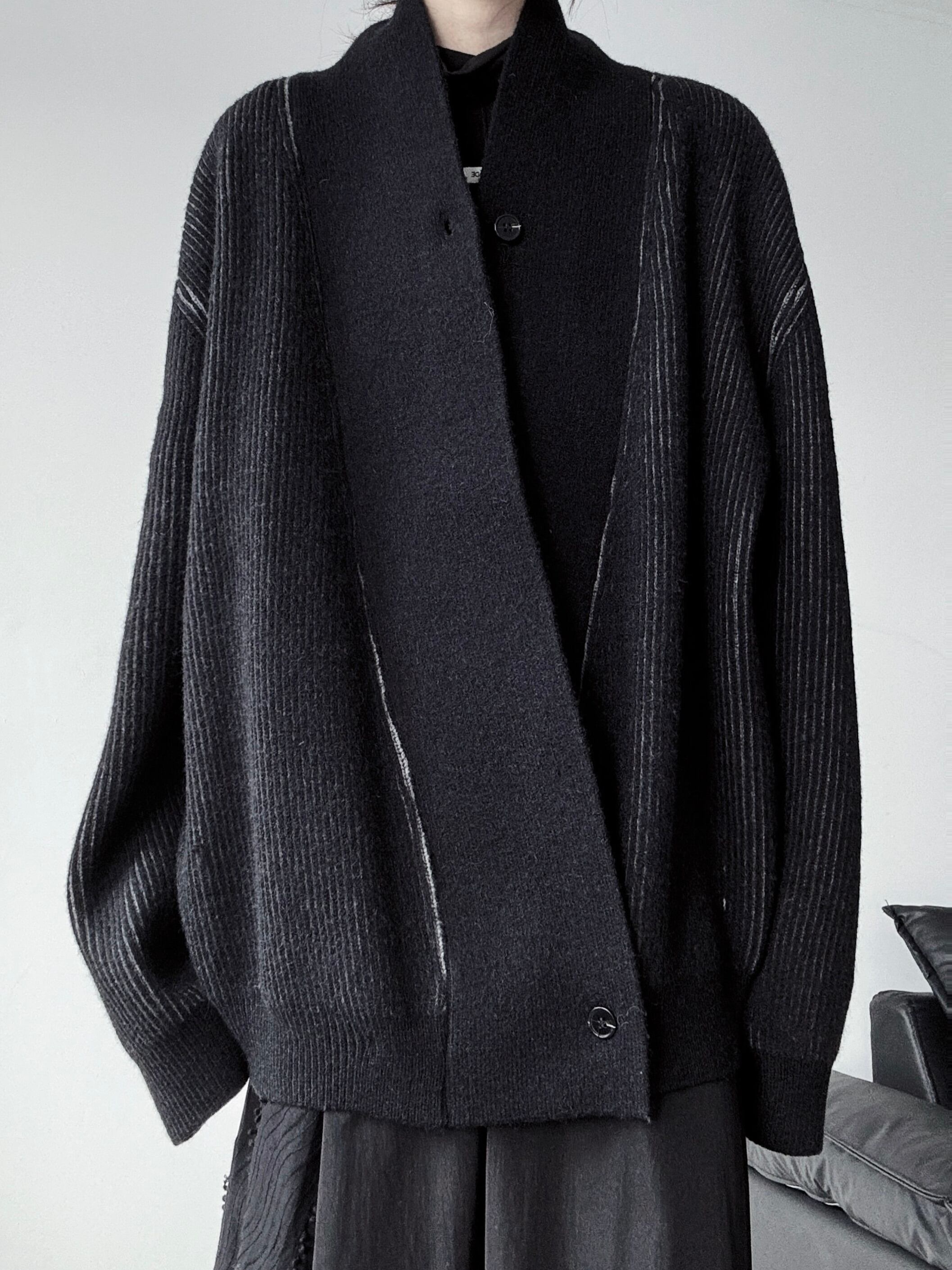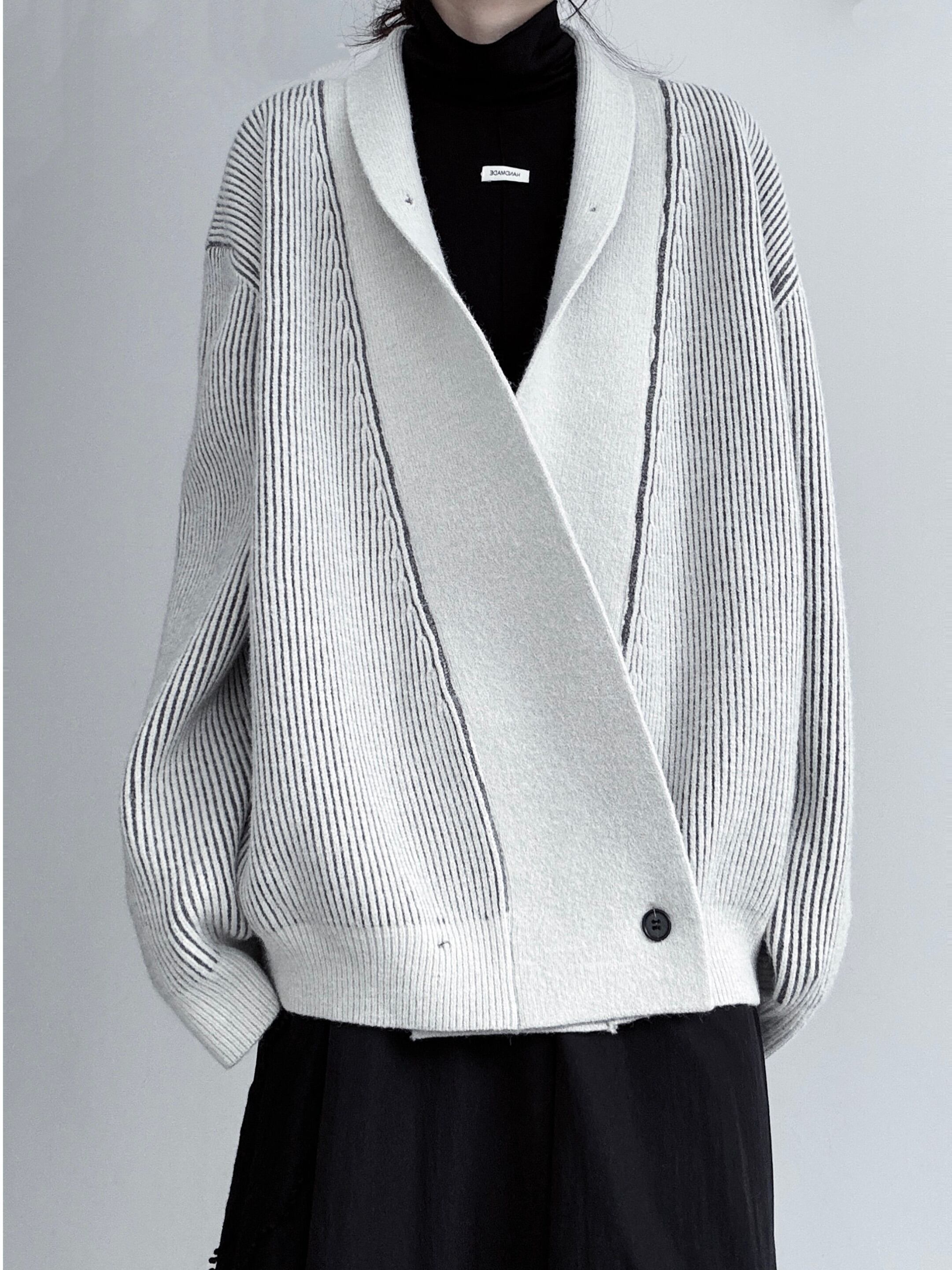 アシンメトリープラケットシングルボタンニットカーディガン。