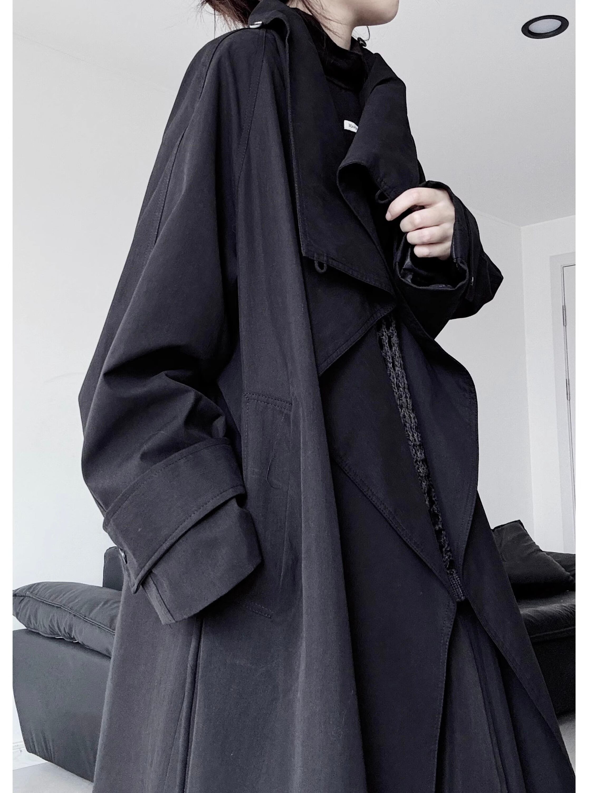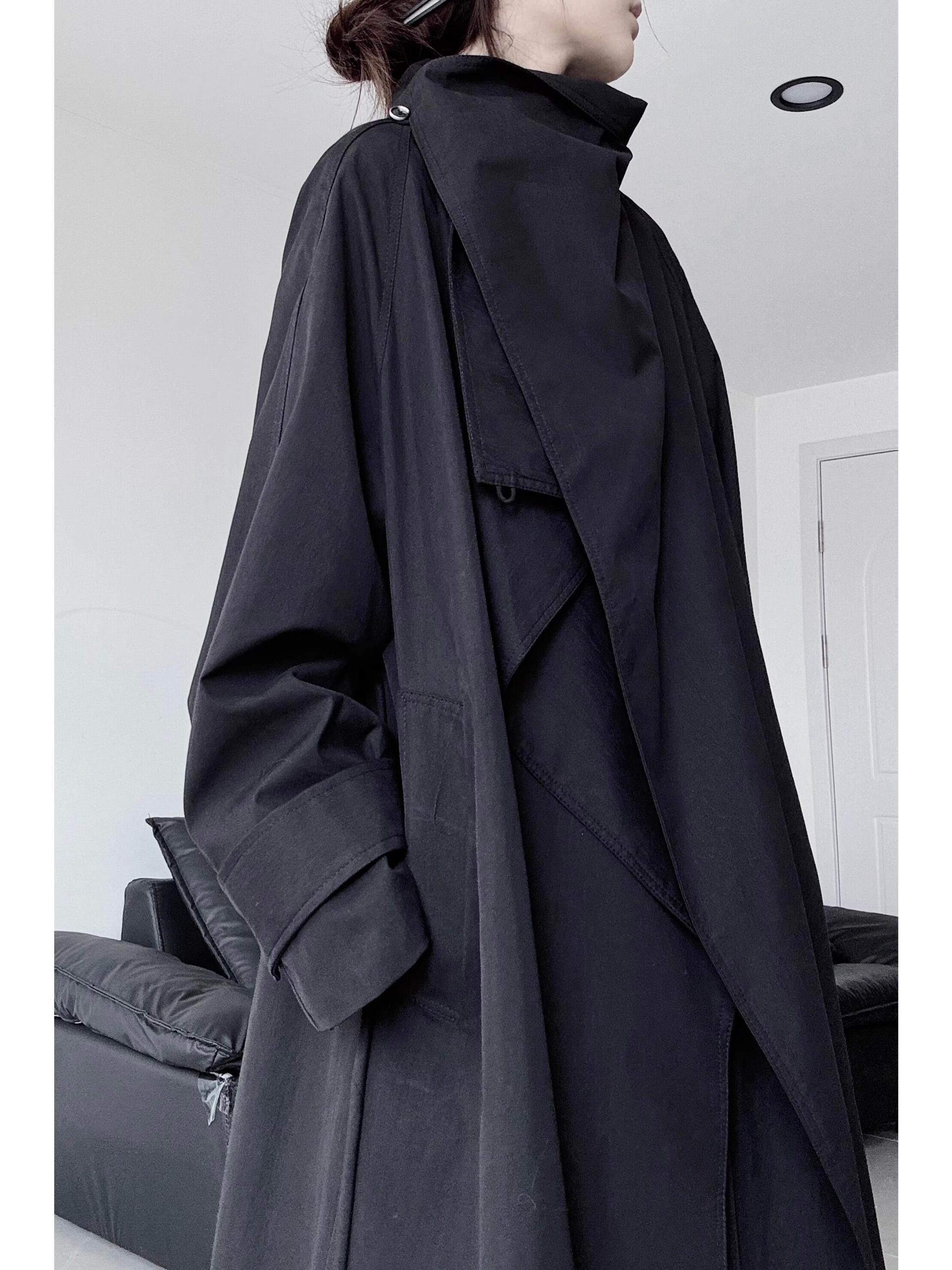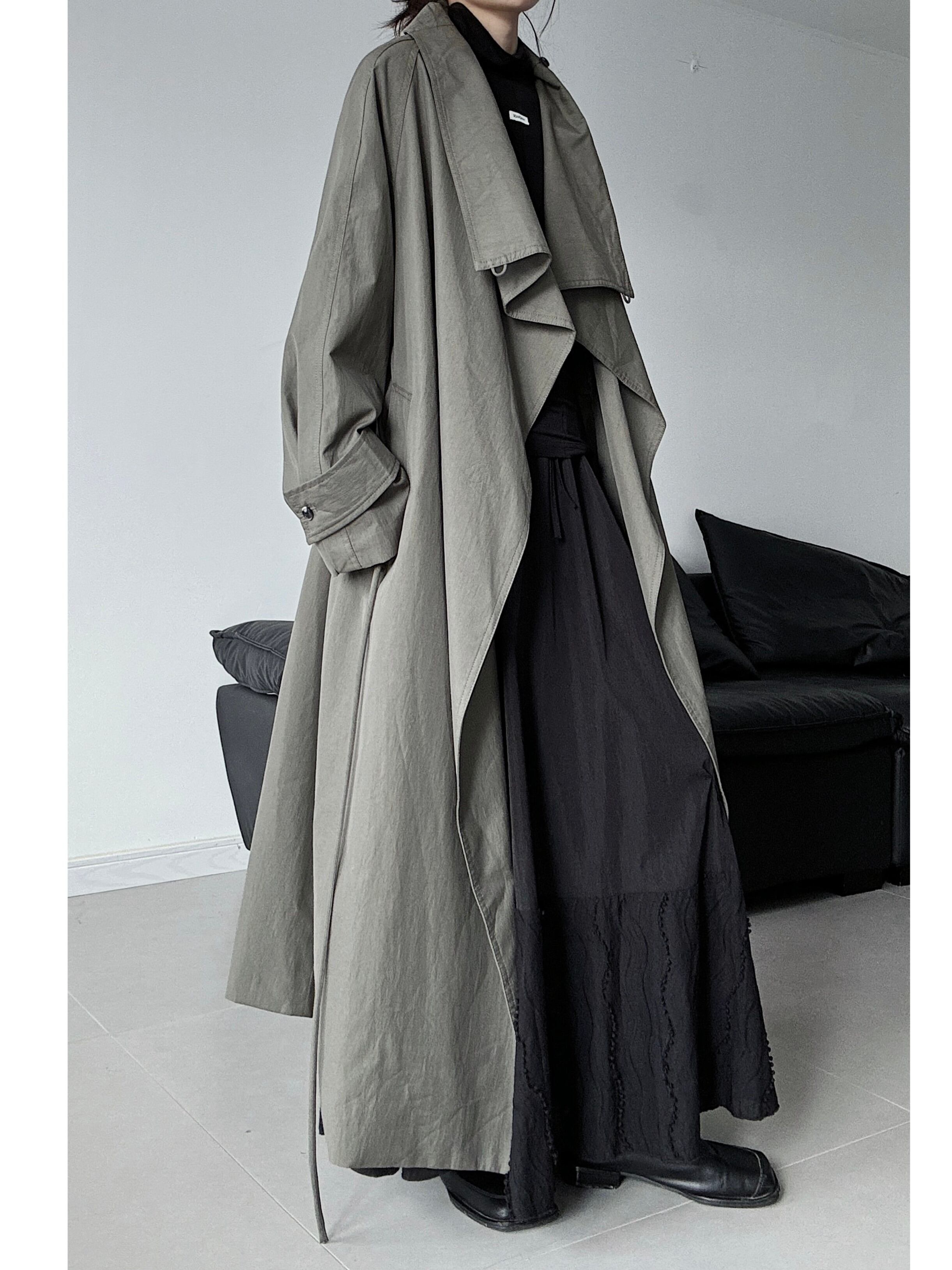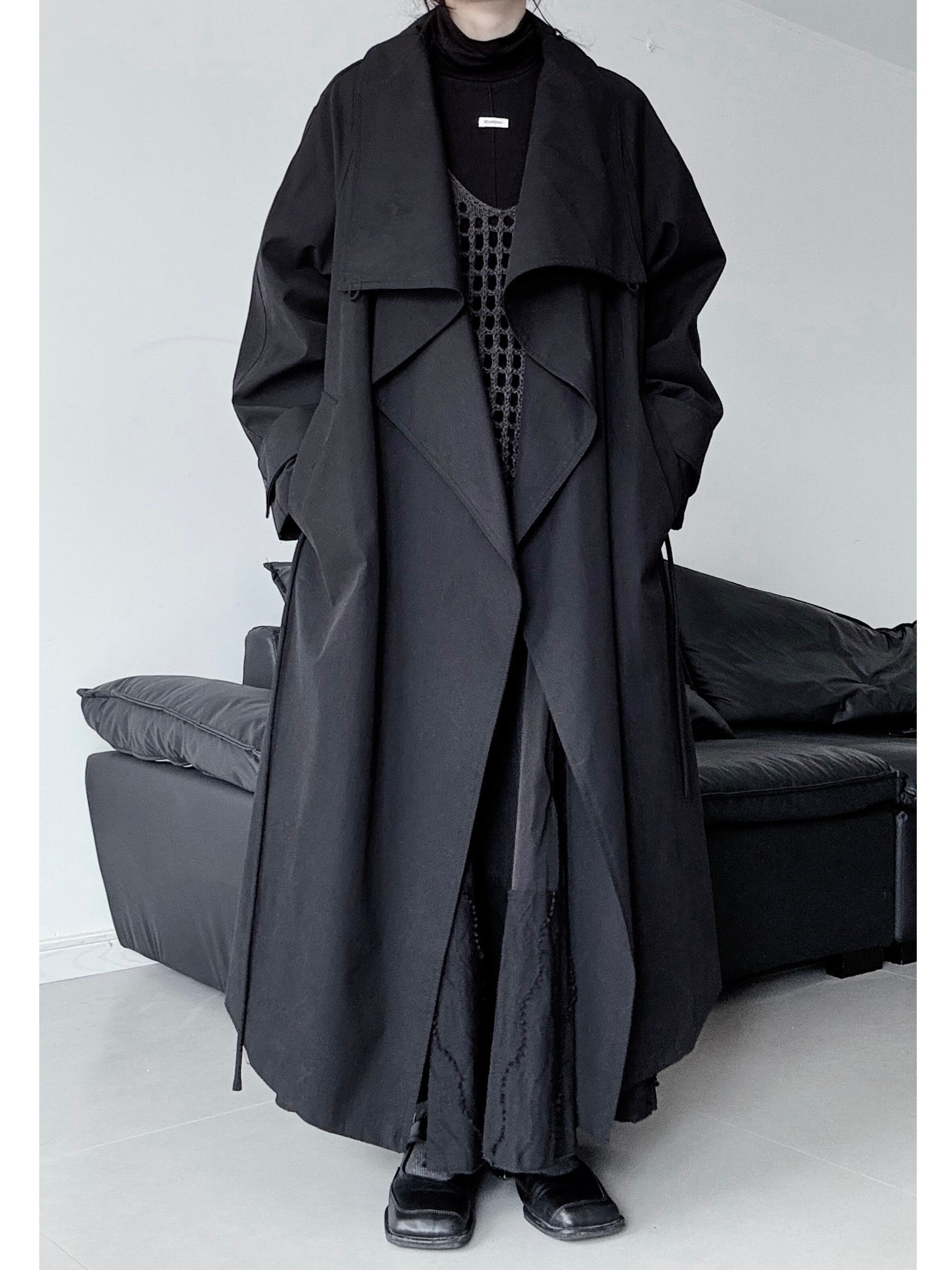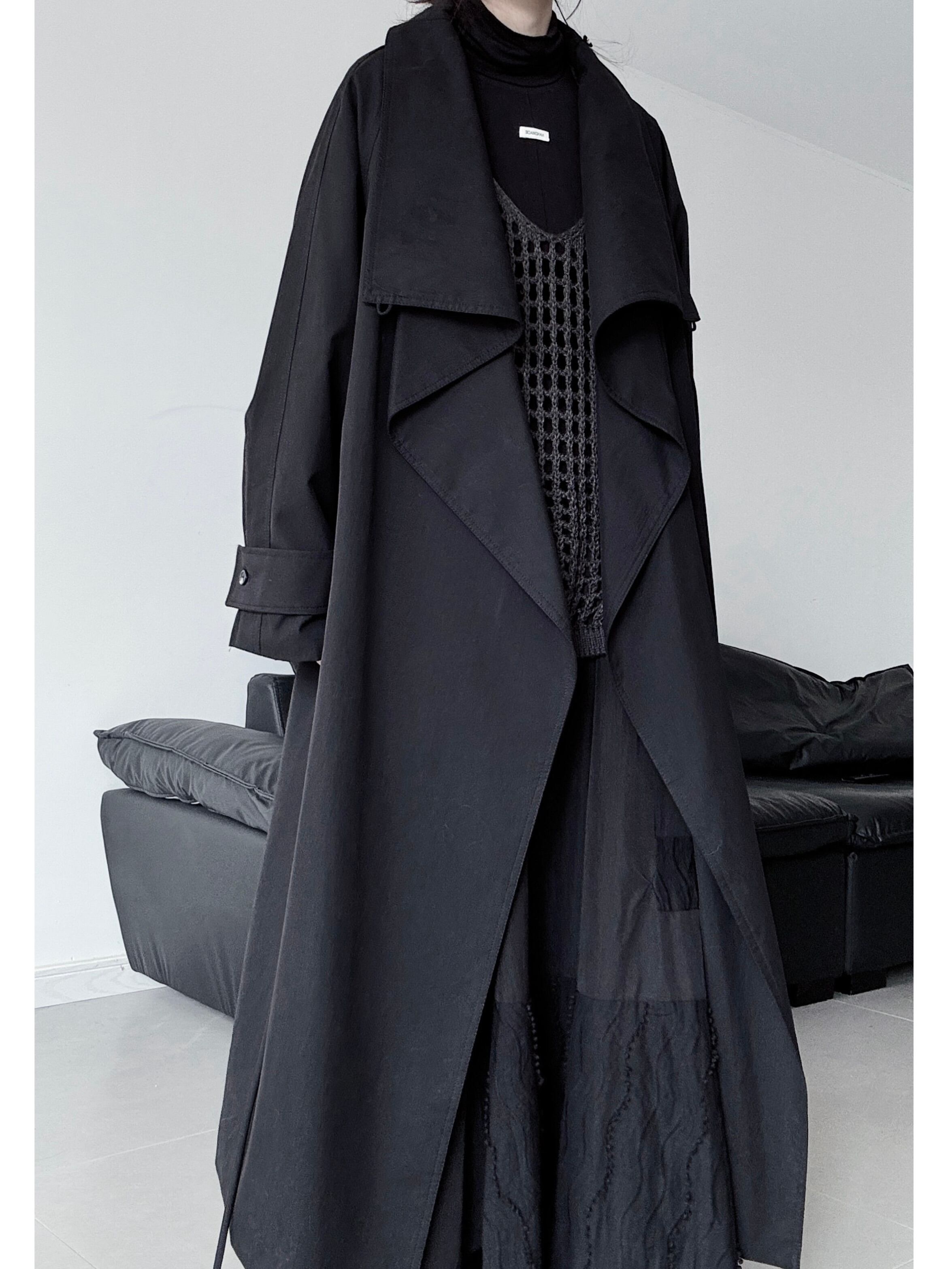Black long loose collar trench coat 2color [T2618]