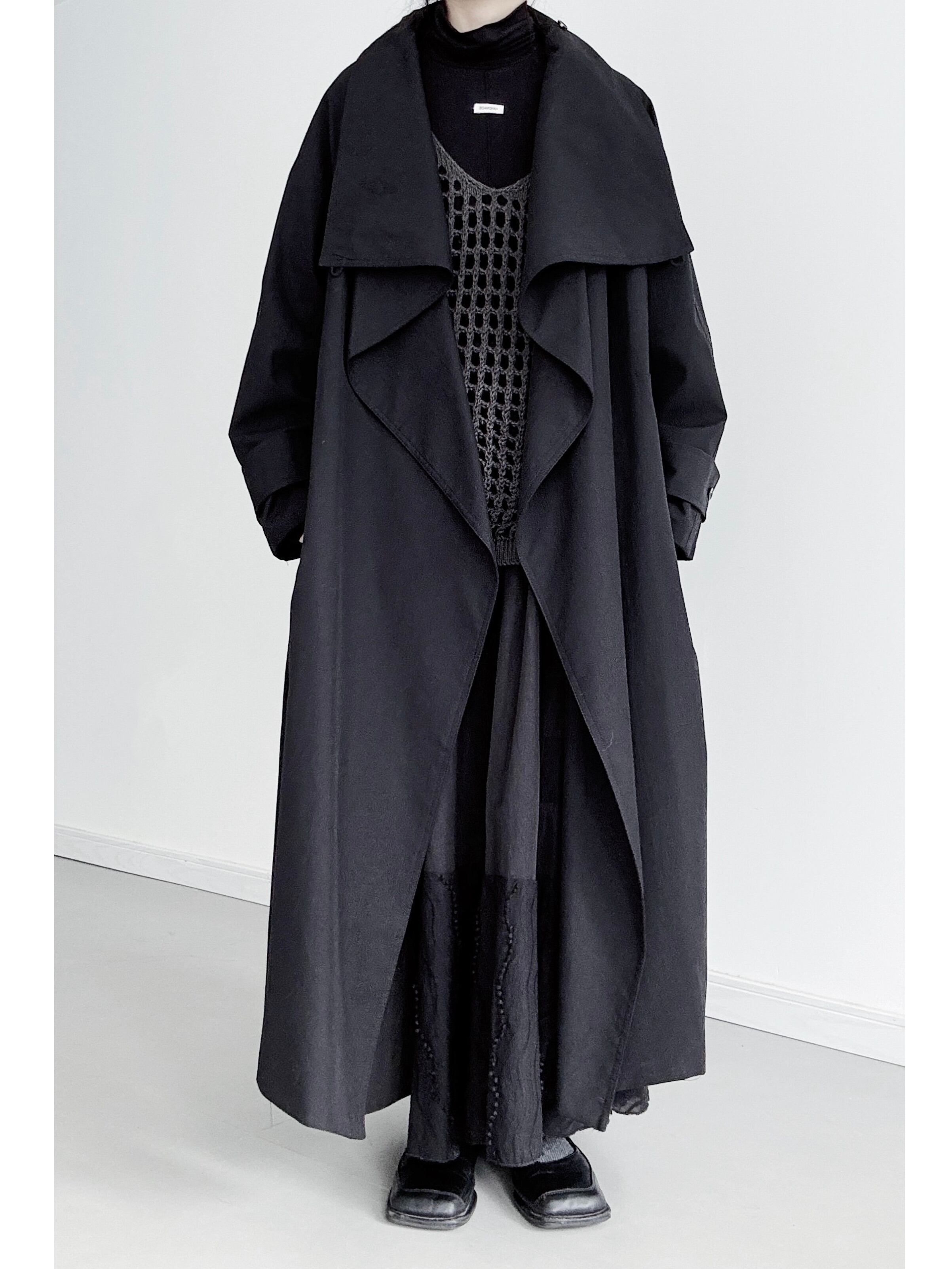 ブラックロングルーズカラートレンチコート。