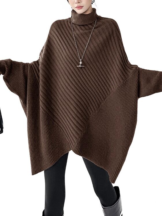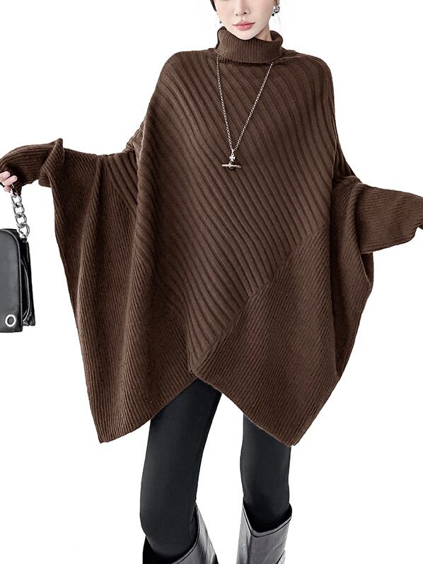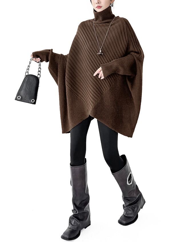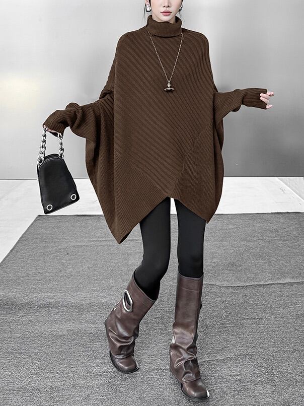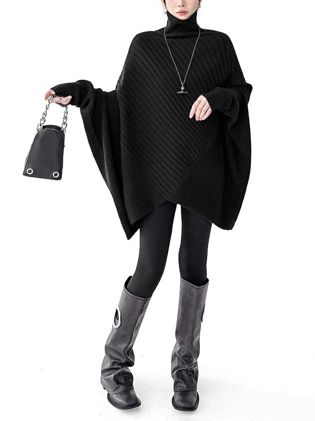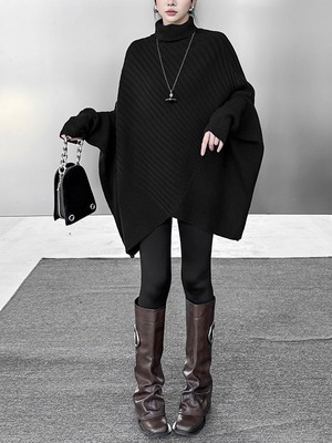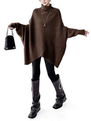 Irregular high neck batwing sleeve knit 2color [T2626]