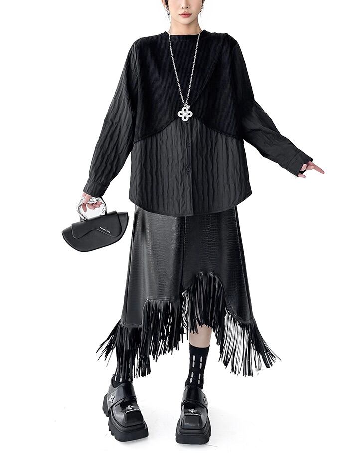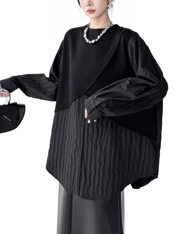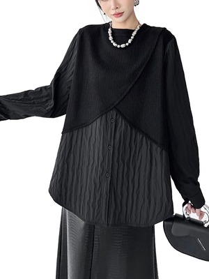 重ね着風デザインが一着でこなれた雰囲気をつくる。