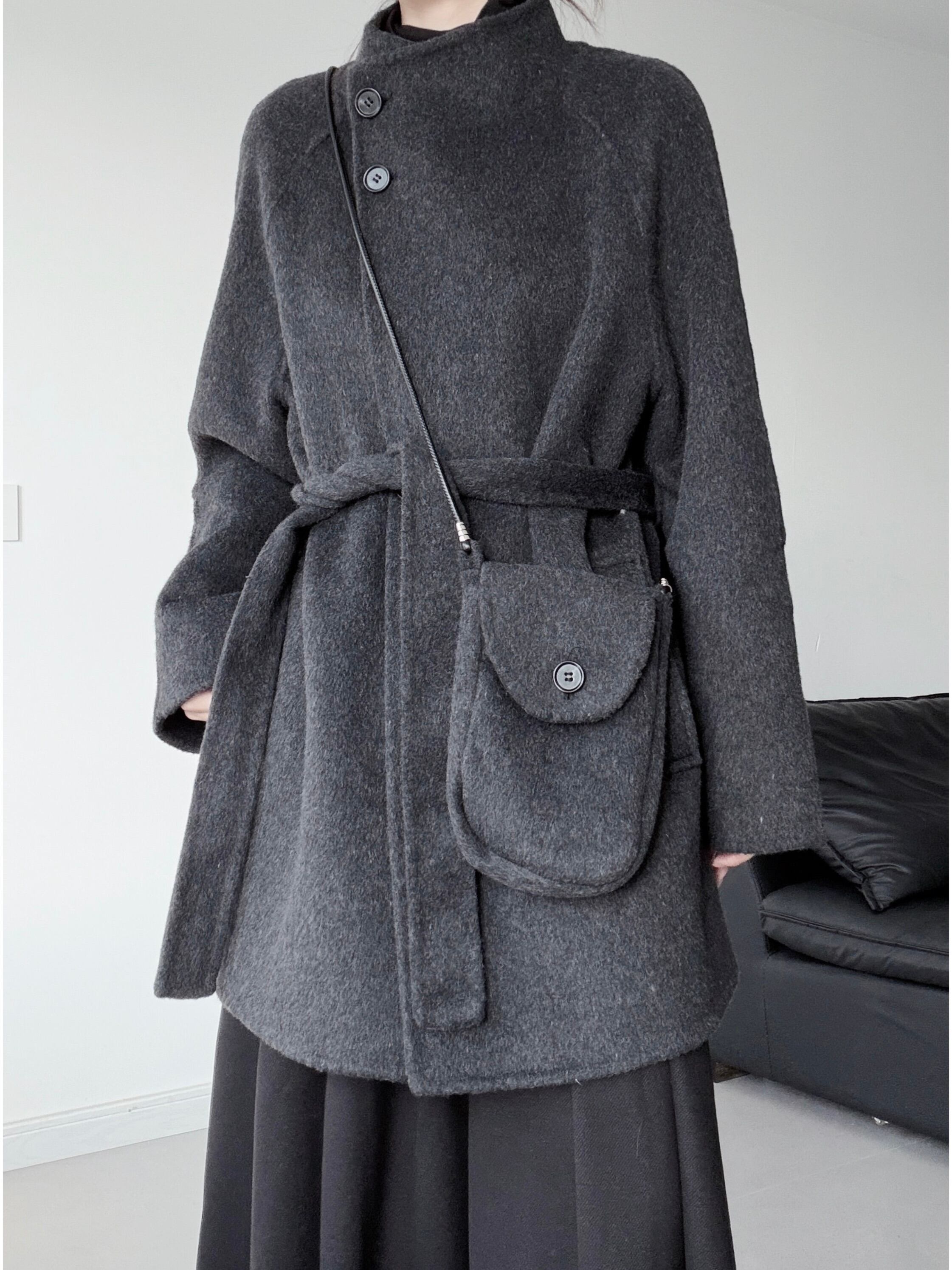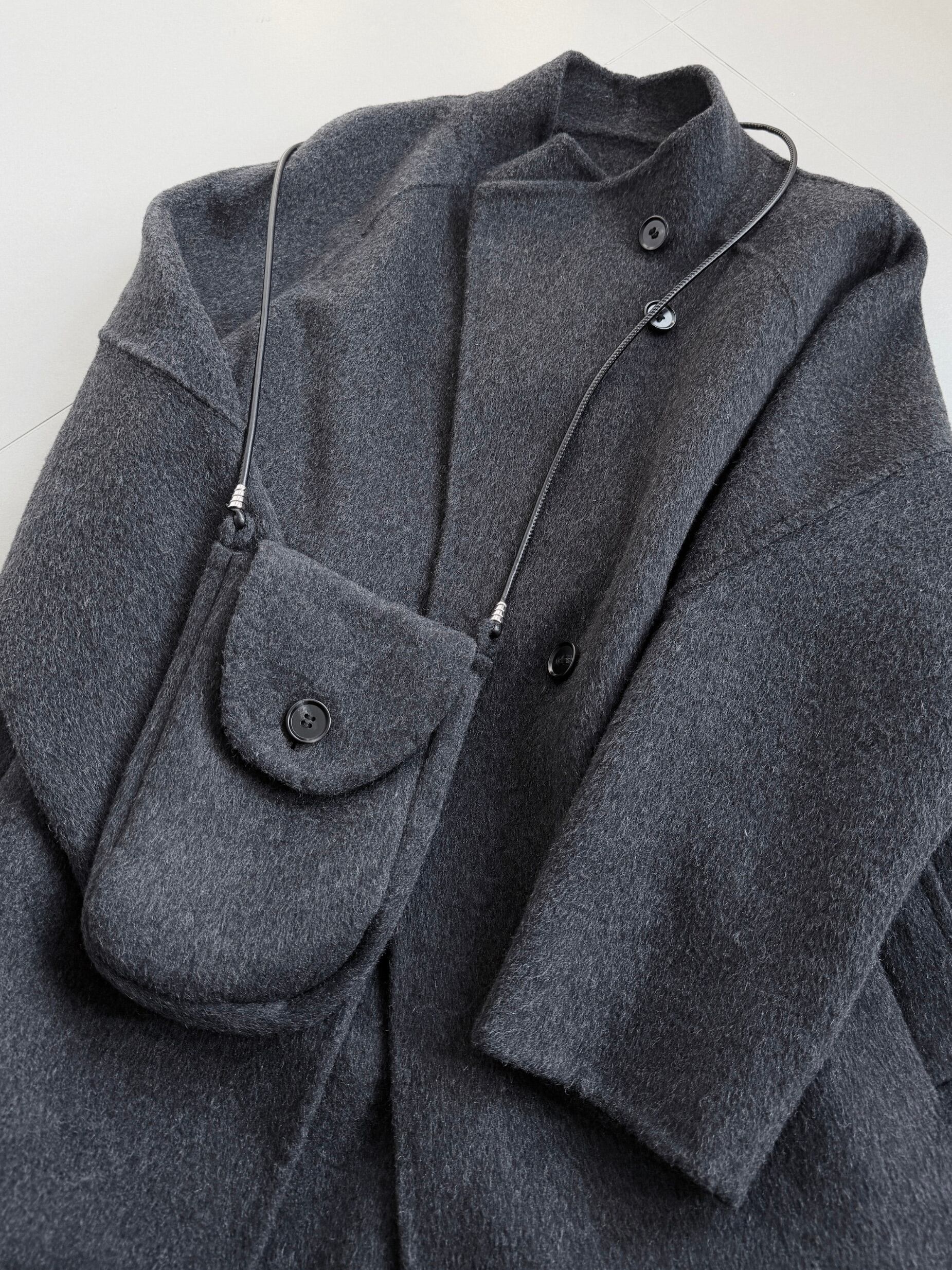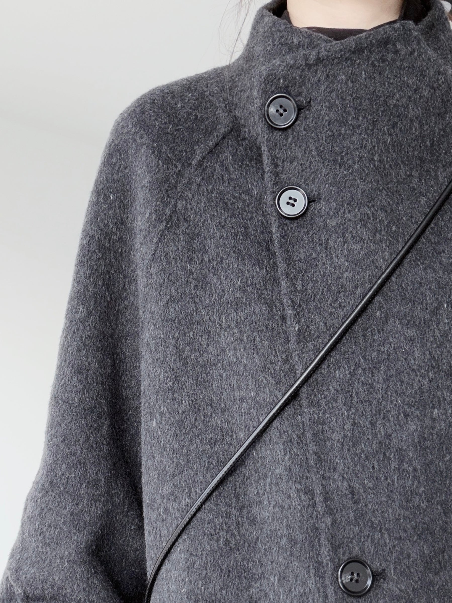 ダイアゴナルボタンススタンドカラーダブルフェイスウールコート。