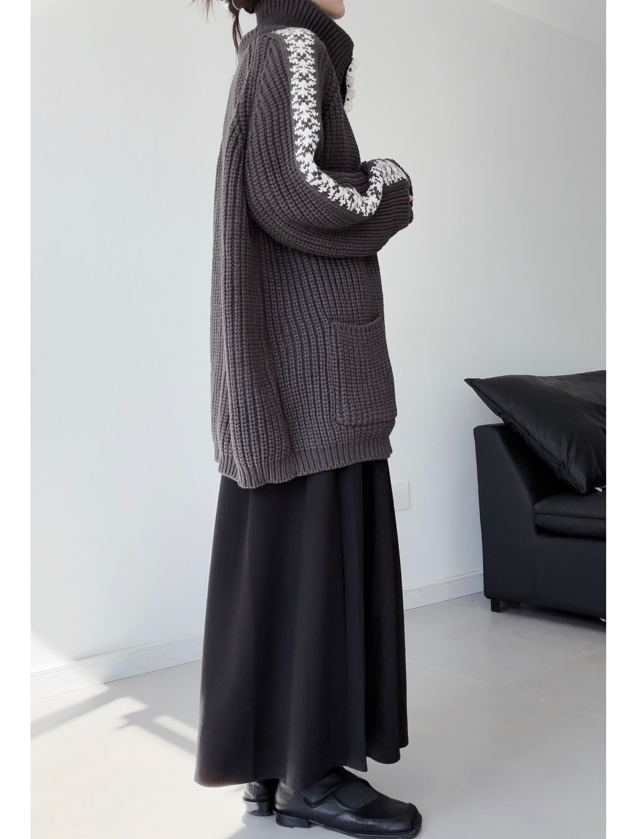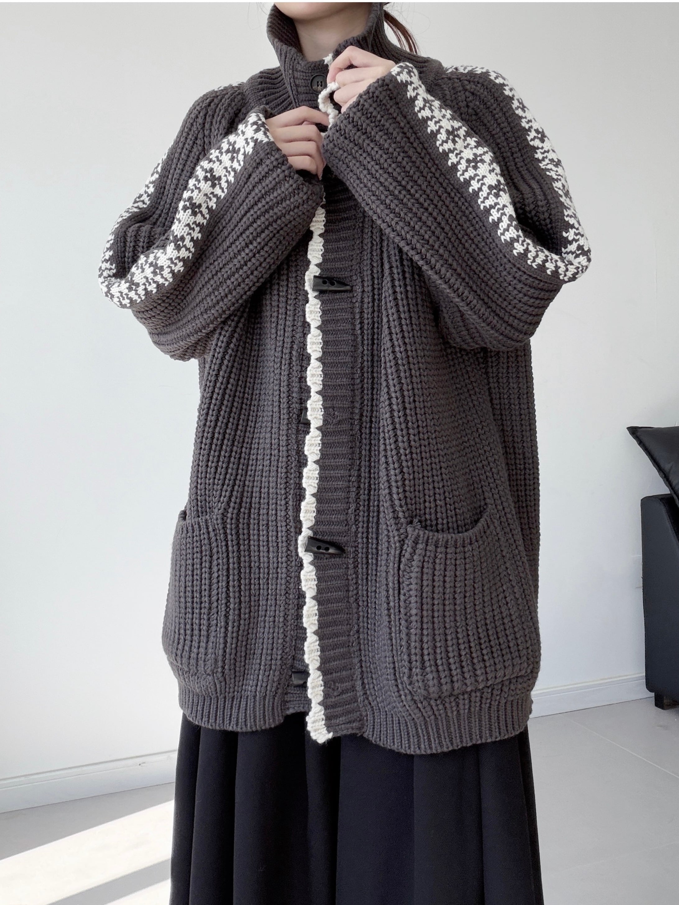 レトロジャカードハイネックチャンキーニットカーディガン。