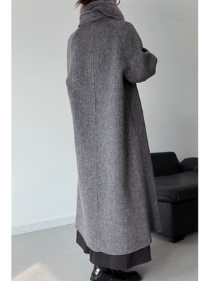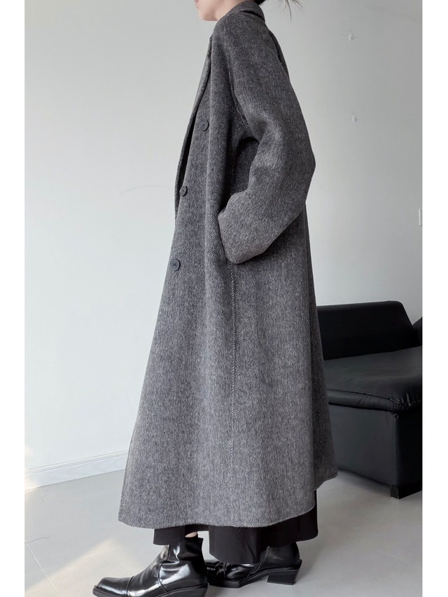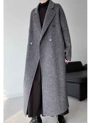 ダブルブレストコクーンシェイプウールコート。