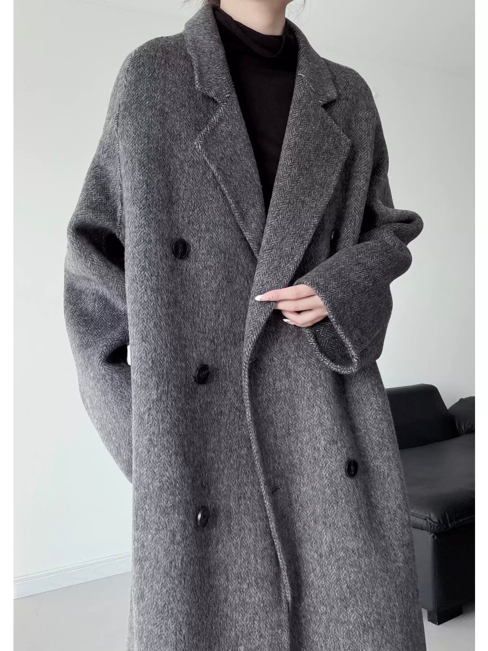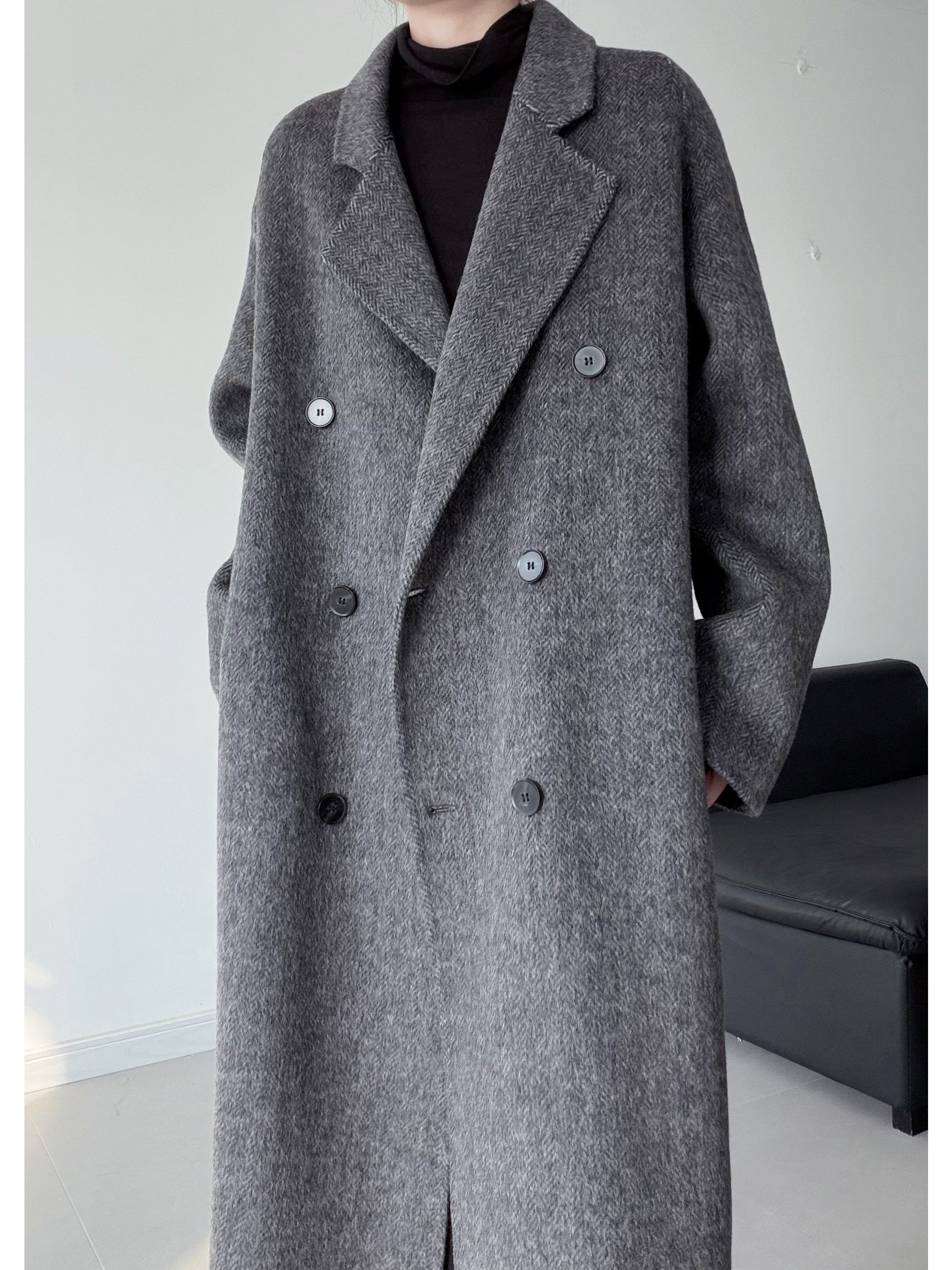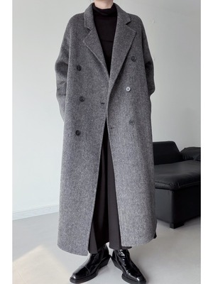Double-breasted cocoon-shaped wool coat [T2680]