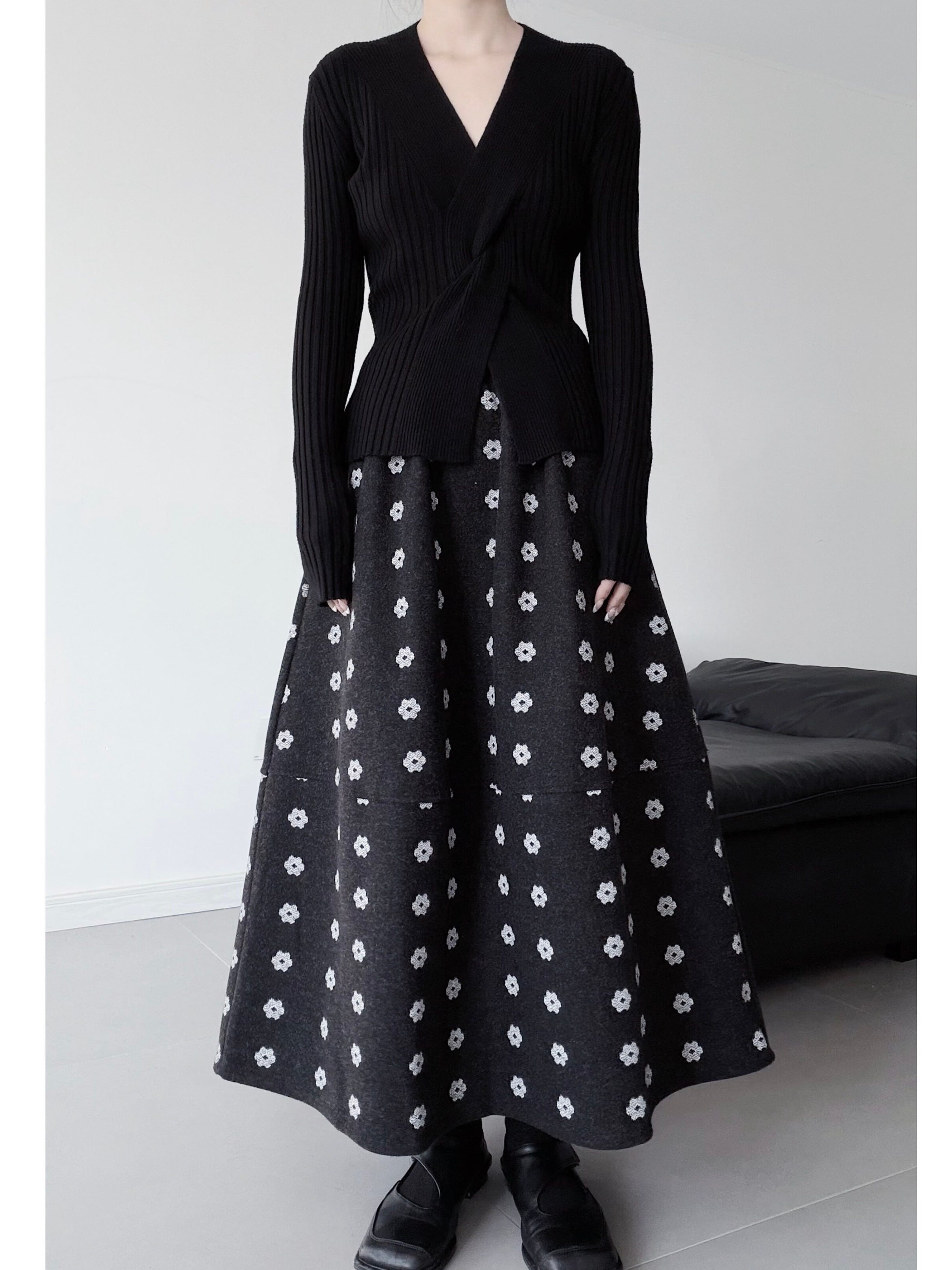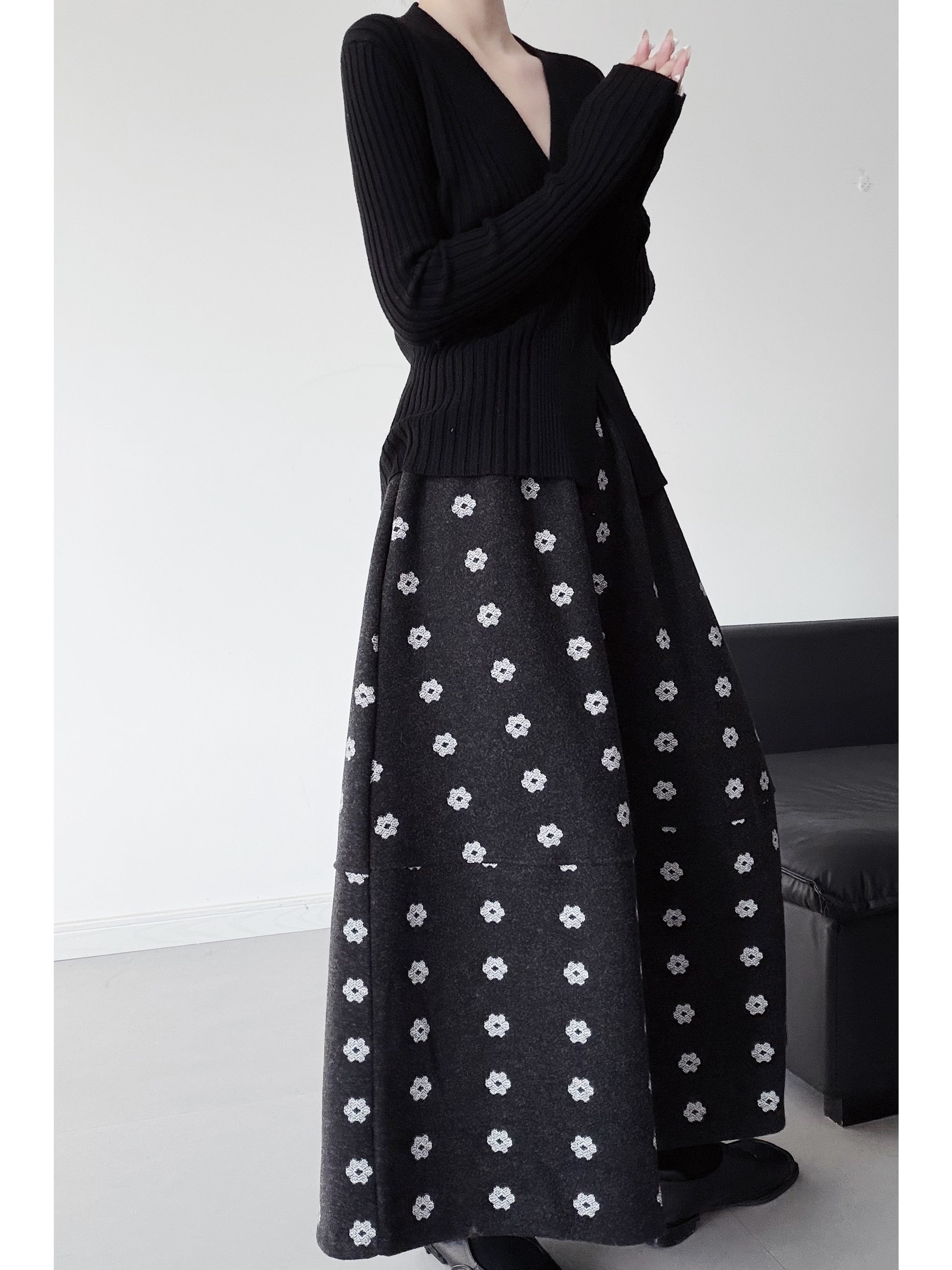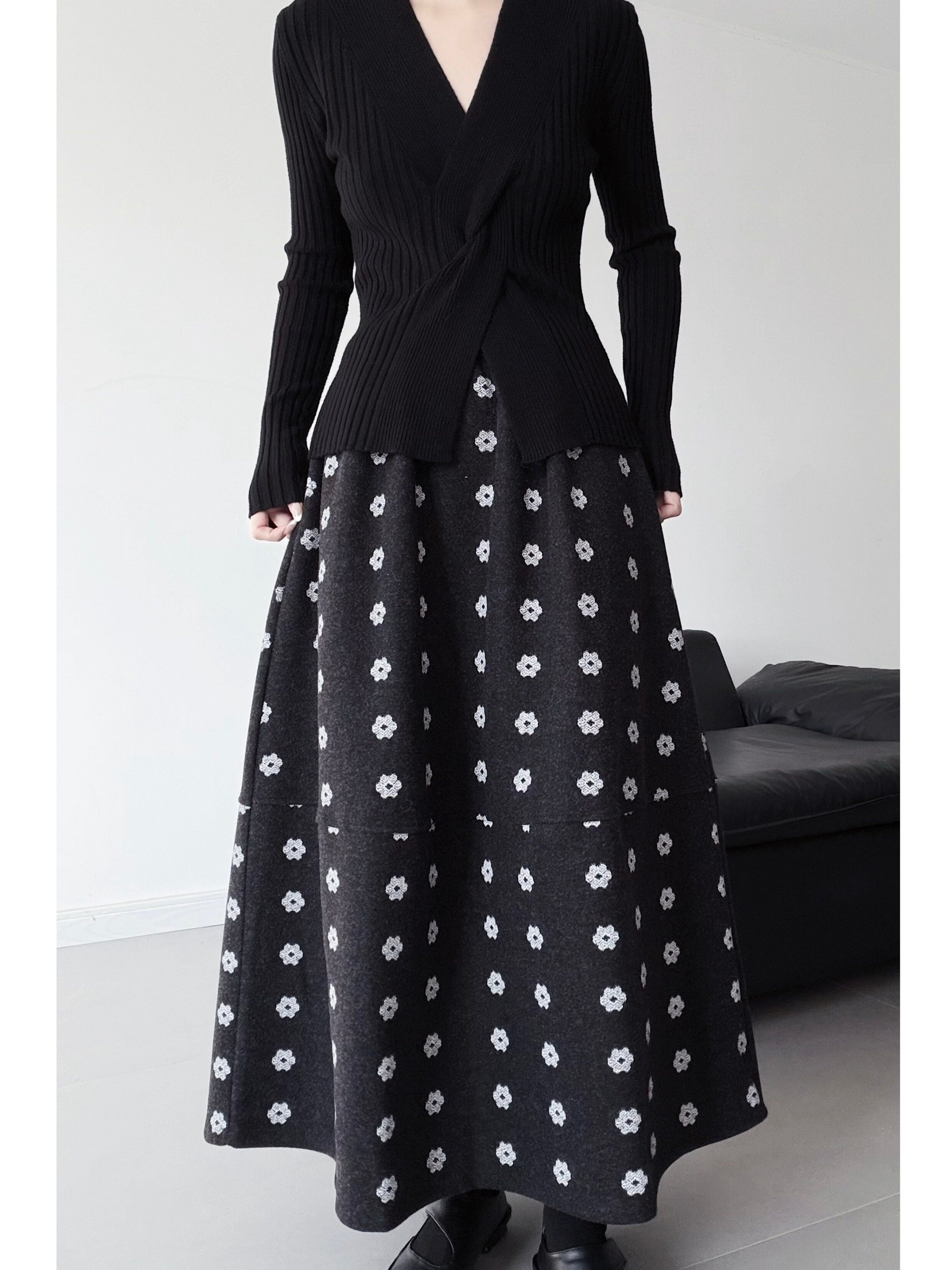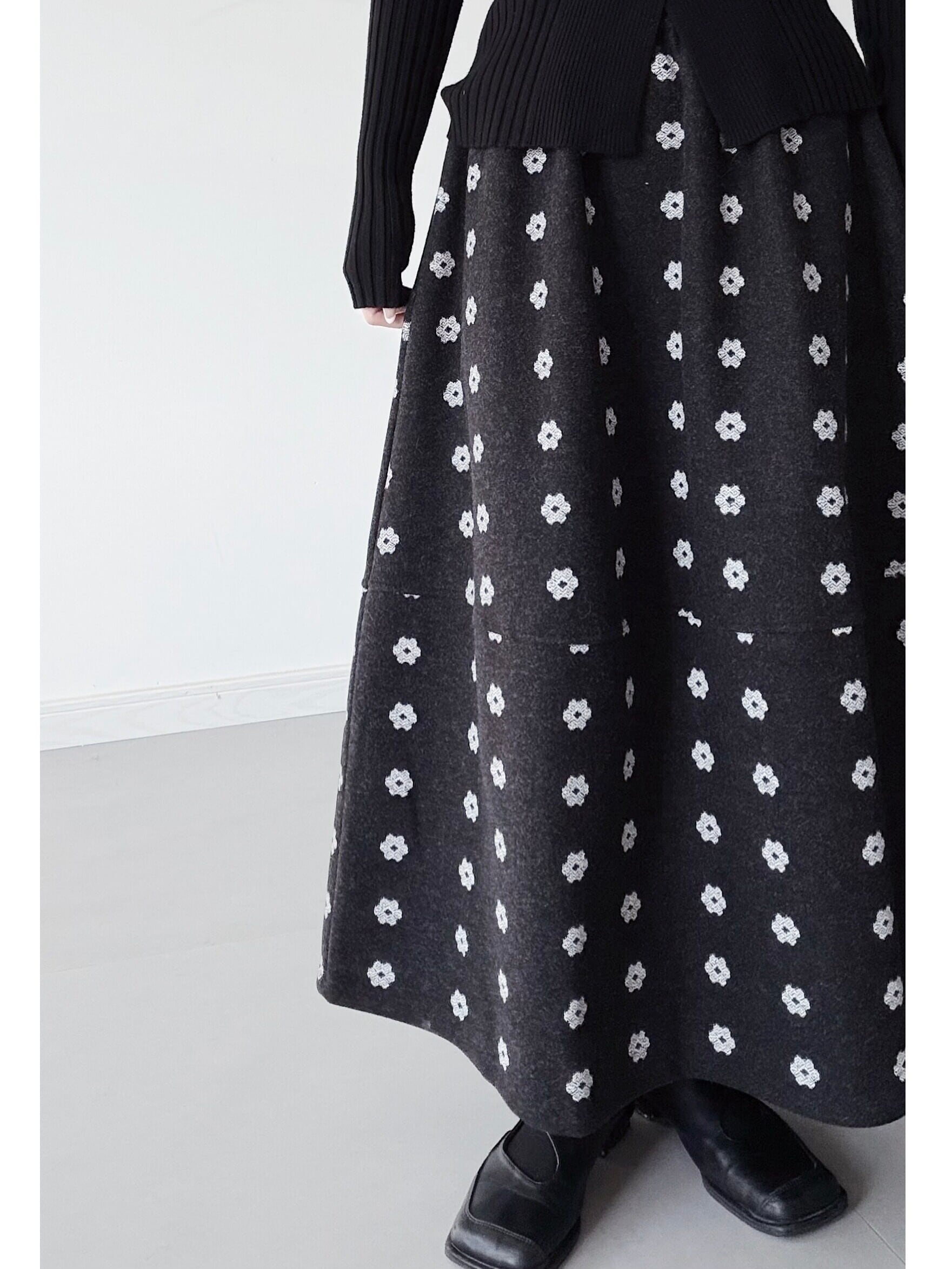 Aラインフラワープリントロングスカート。