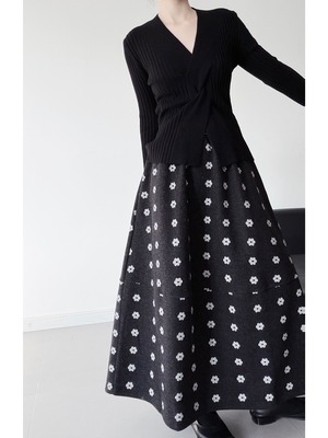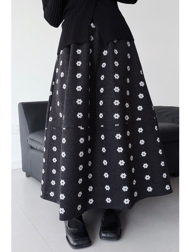 A-line flower print long skirt [T2683]