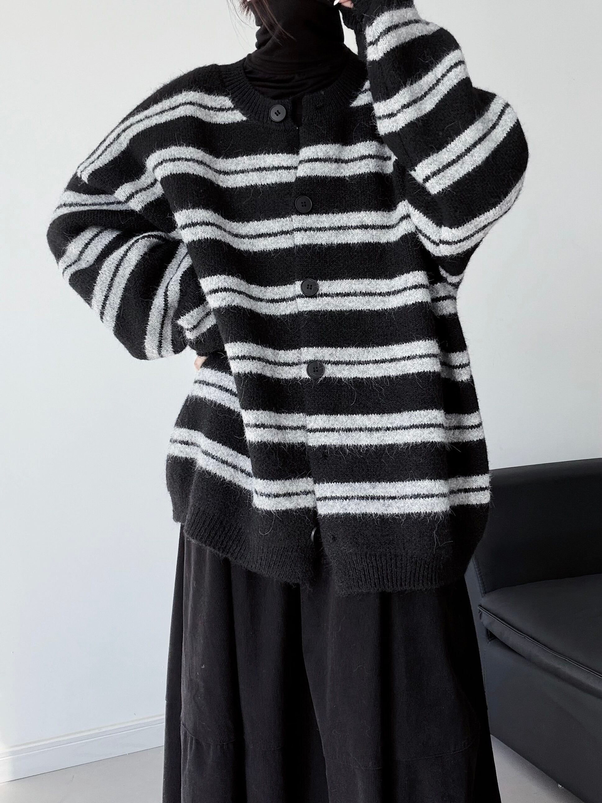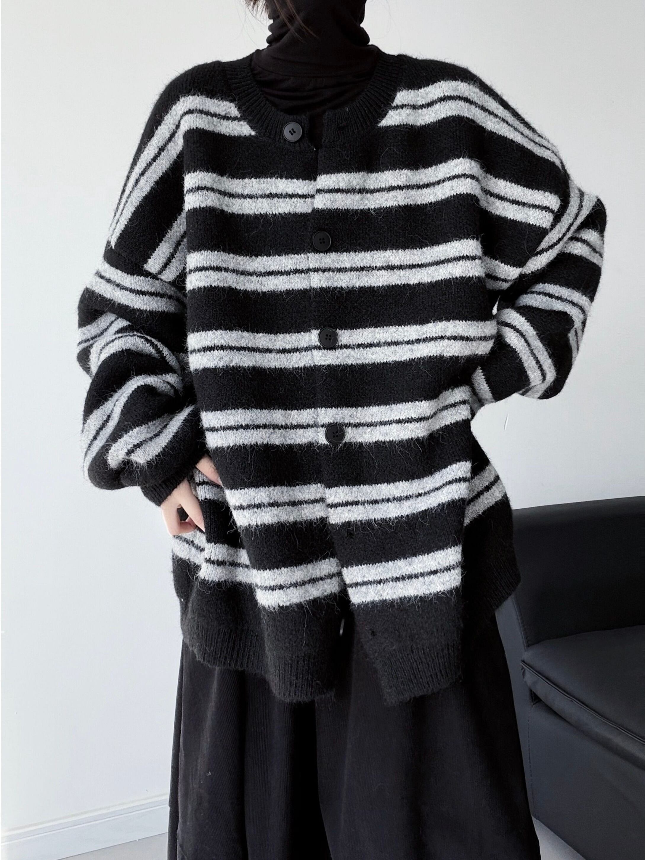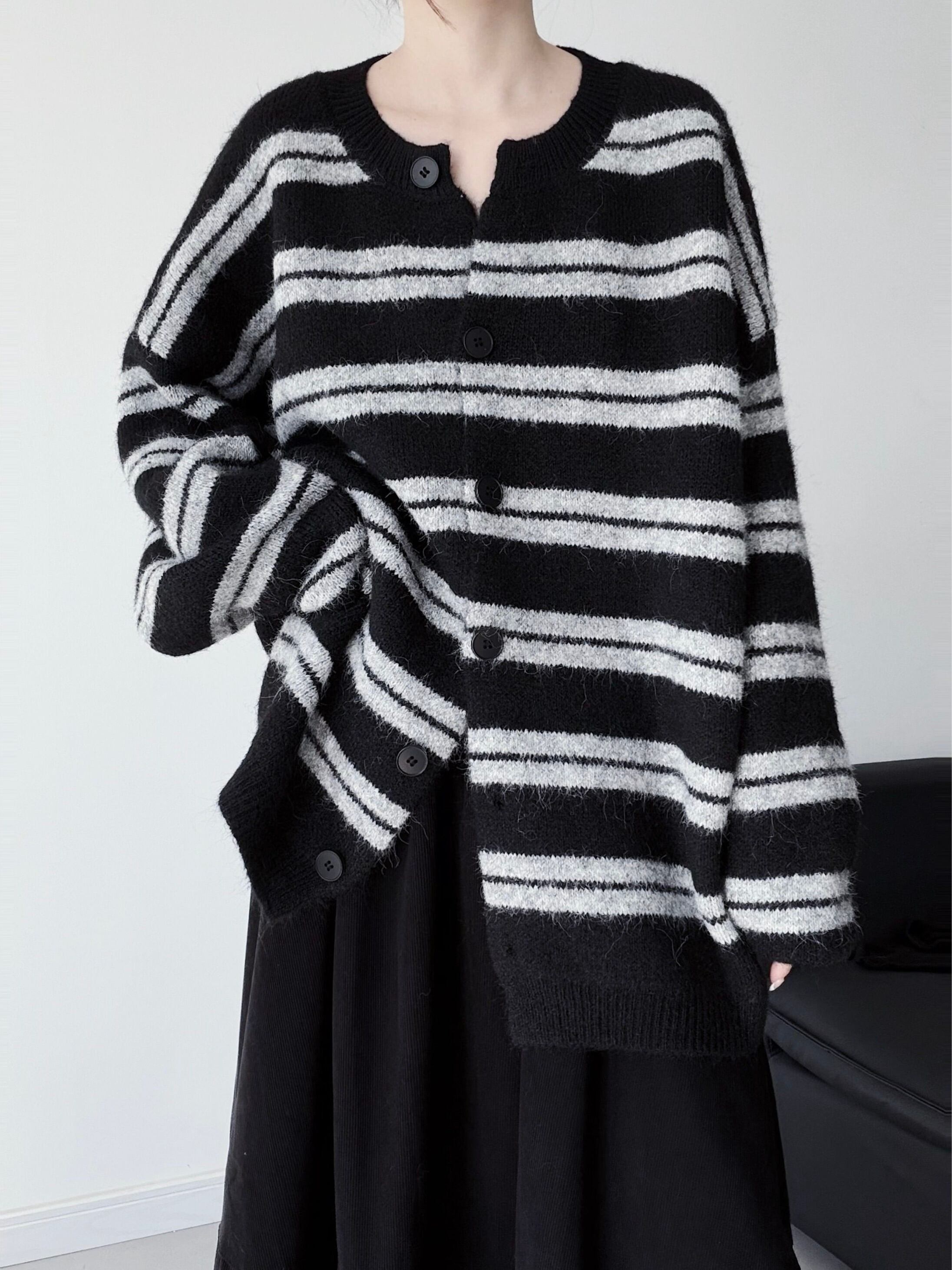 ![Black striped loose knit cardigan [T2688]](https://baseec-img-mng.akamaized.net/images/item/origin/6e6946e0ca8523252b84403ba4a12f0c.jpg?imformat=generic&q=90&im=Resize,width=640,type=normal)