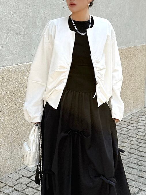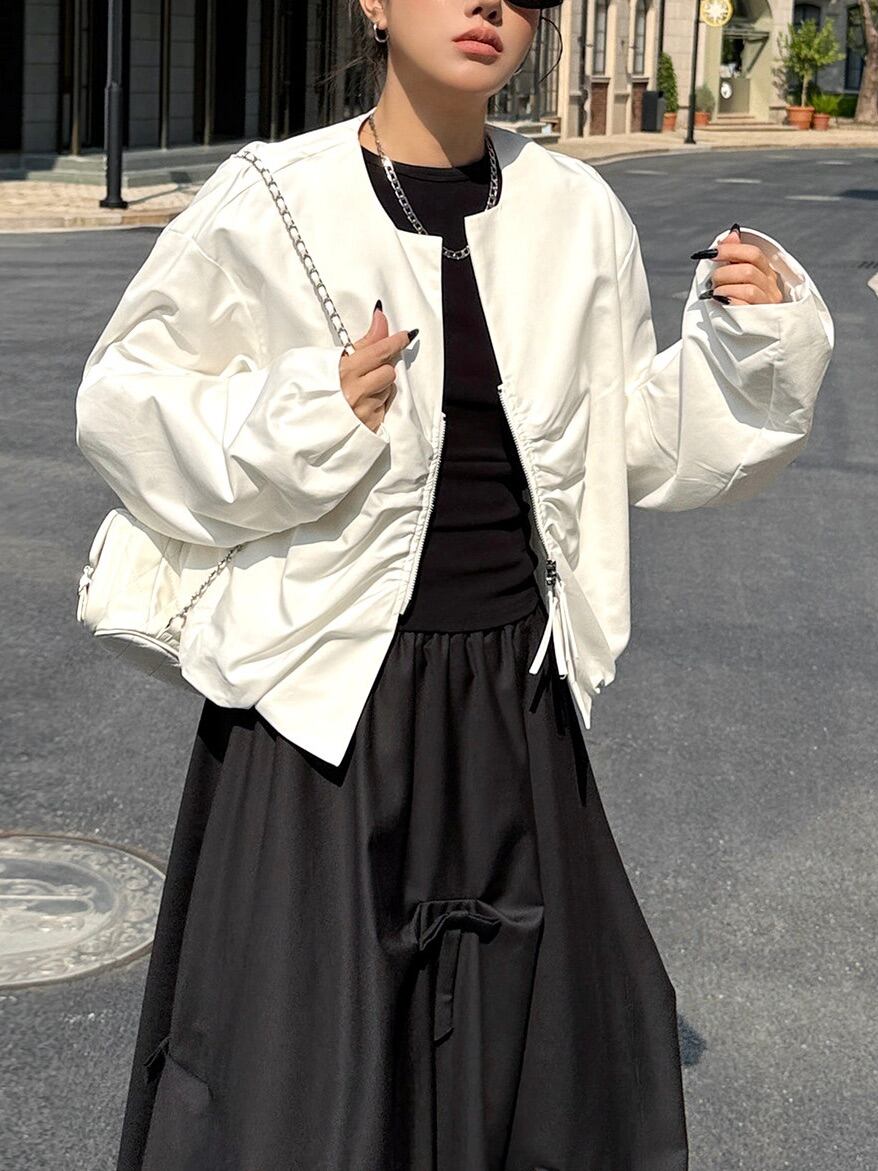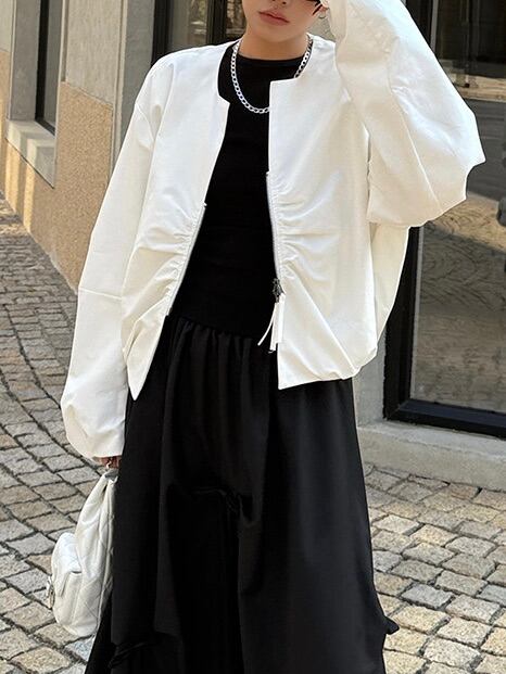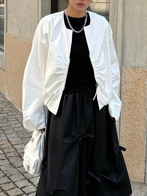 プリーツジップアップショートカーディガンジャケット。