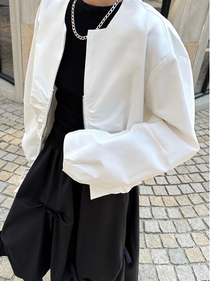 Pleated zip-up short cardigan jacket 2color [T2695]