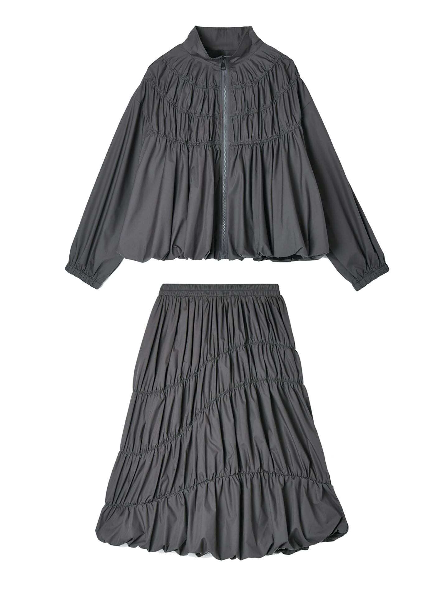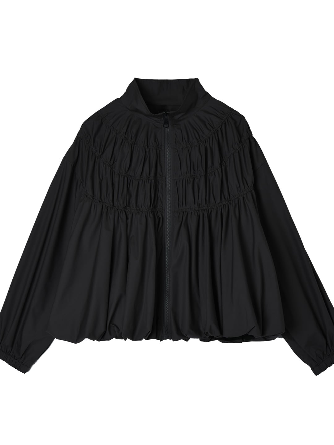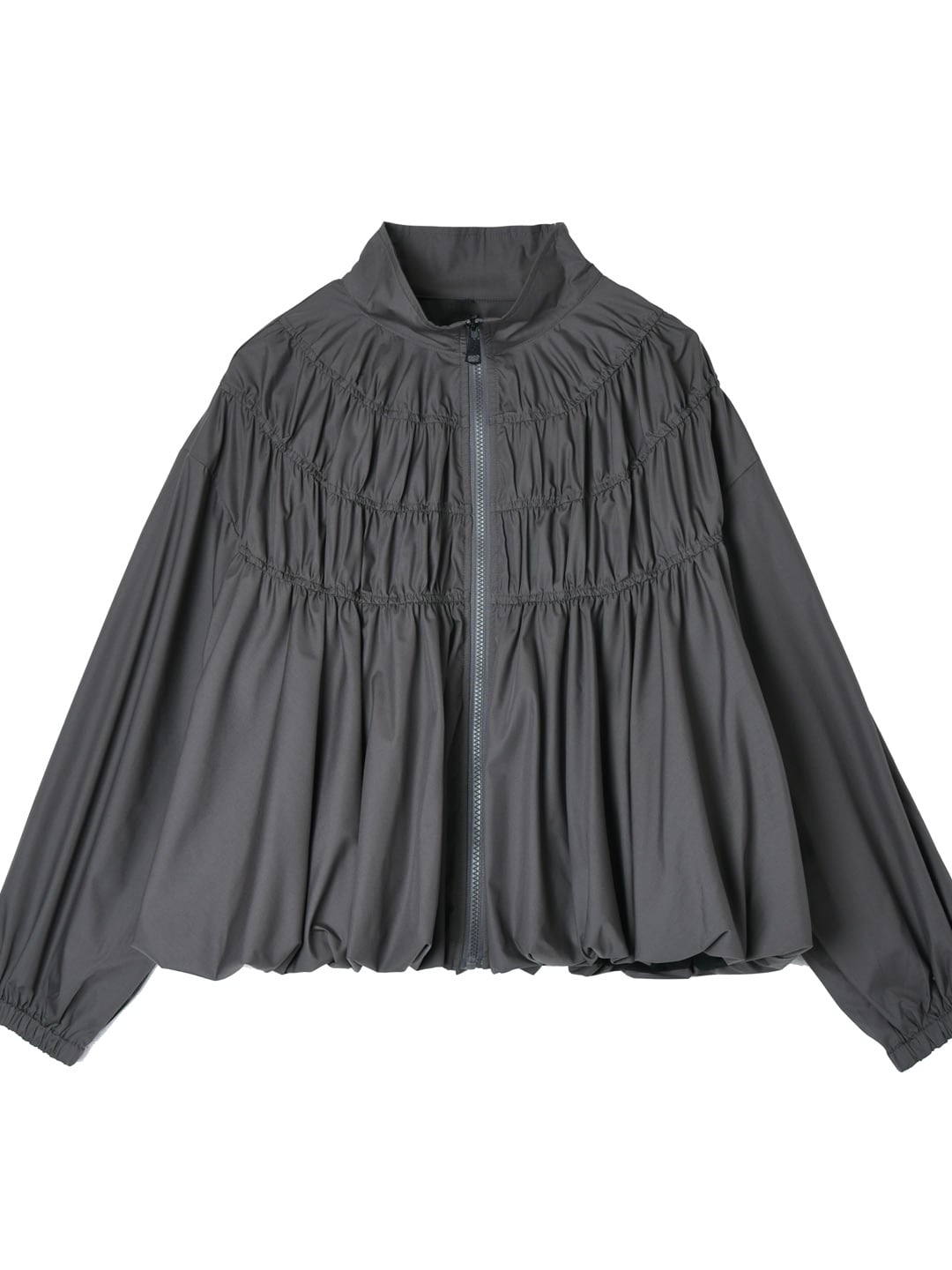 チューリップシェイプドプリーツスタンドカラージッパーシャツ。