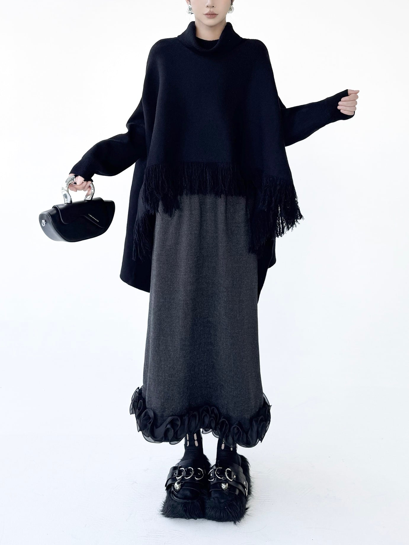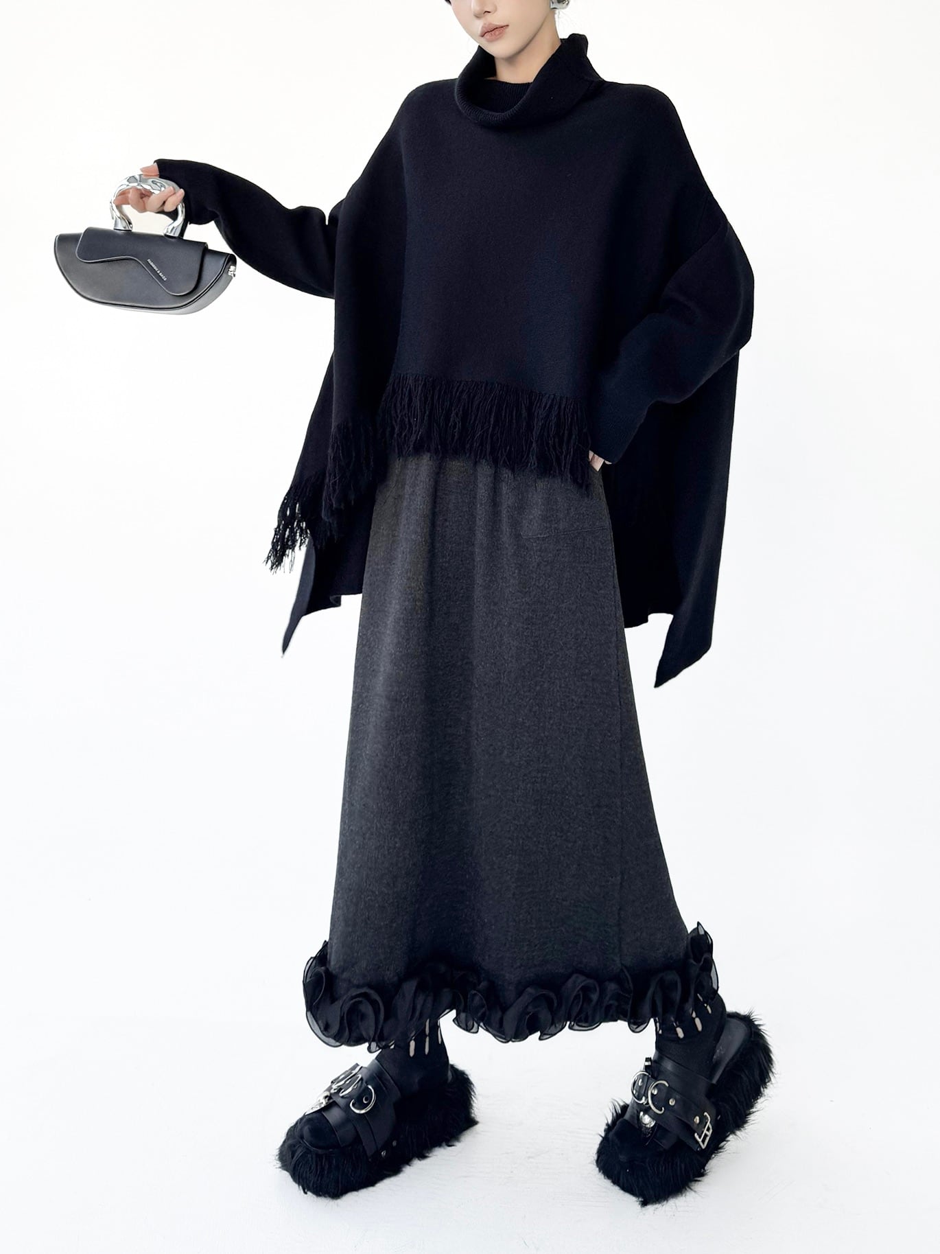 High-neck tassel cape knit 2color [T2708]