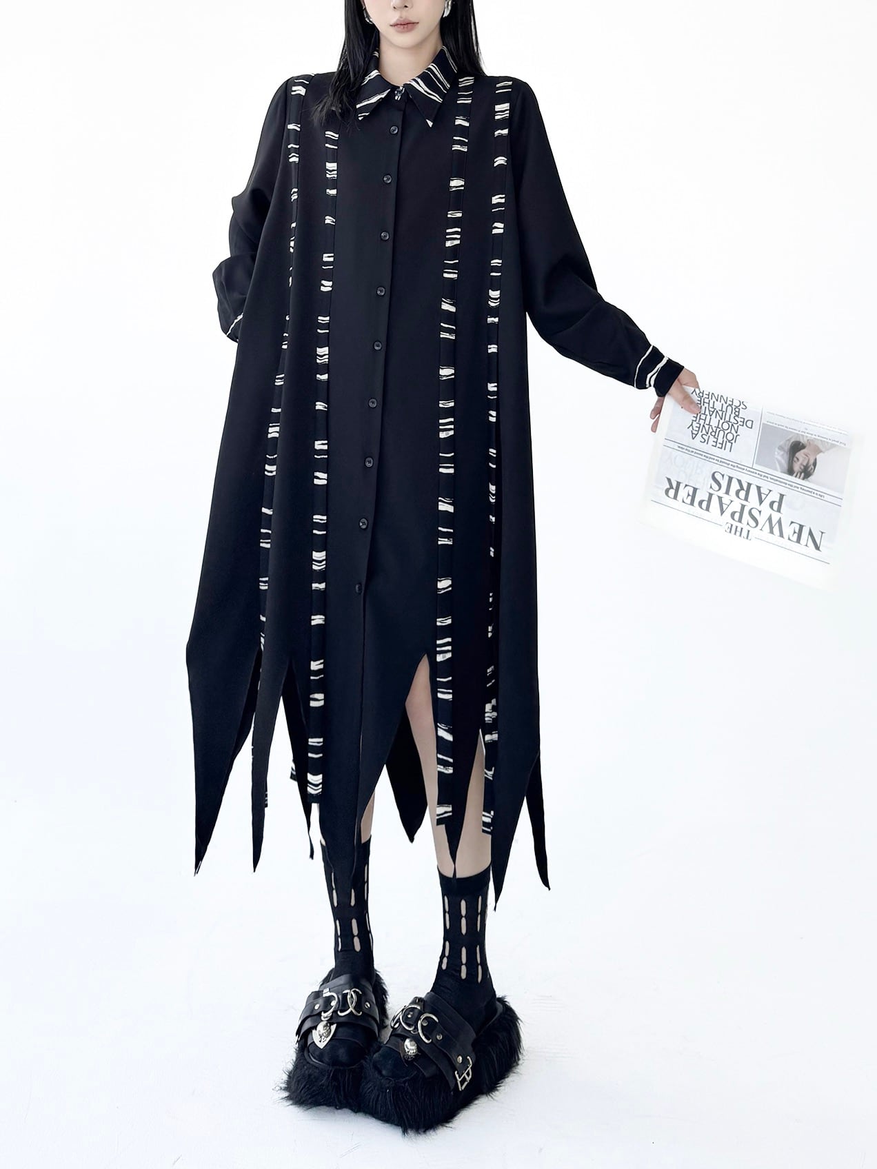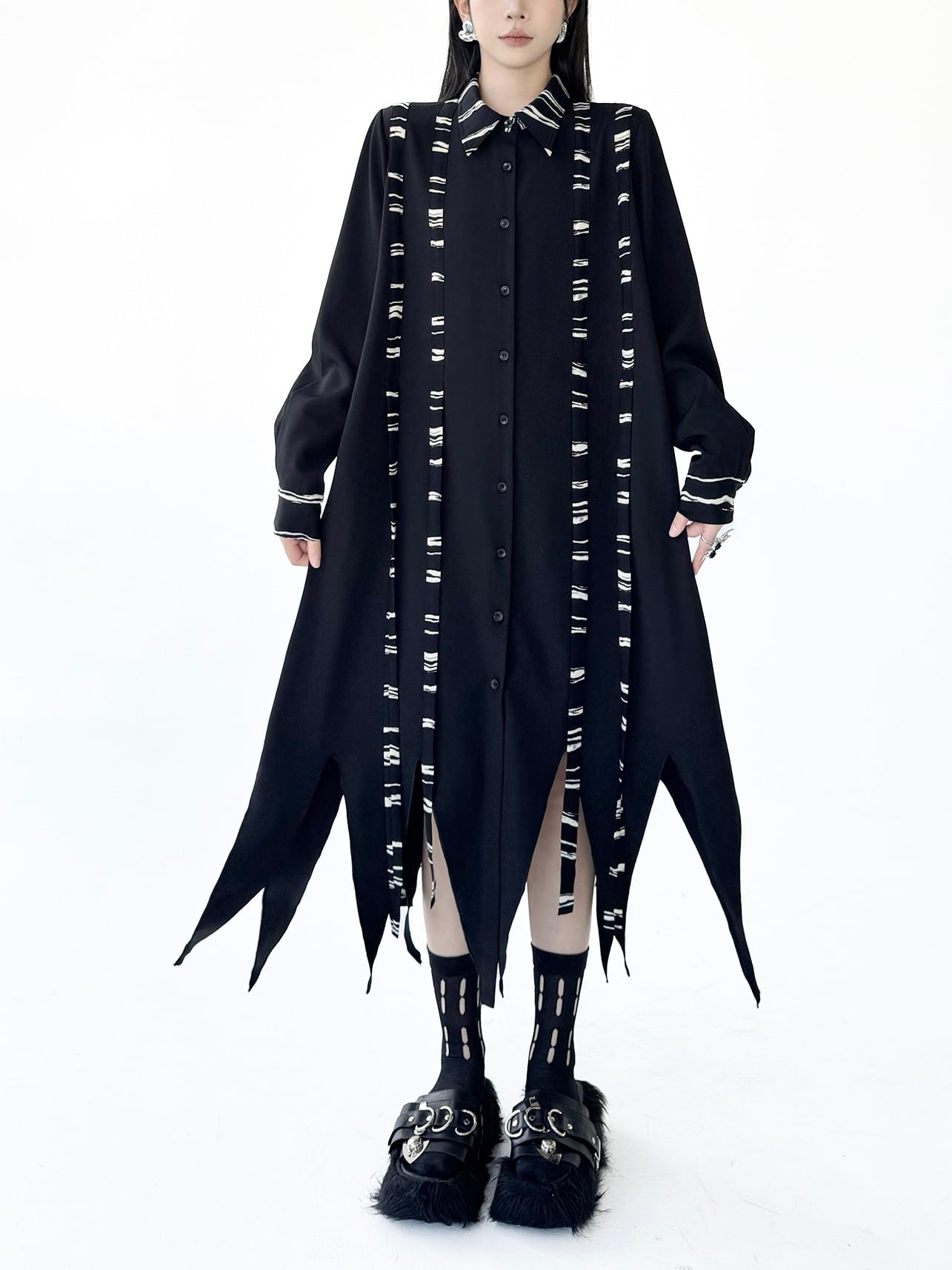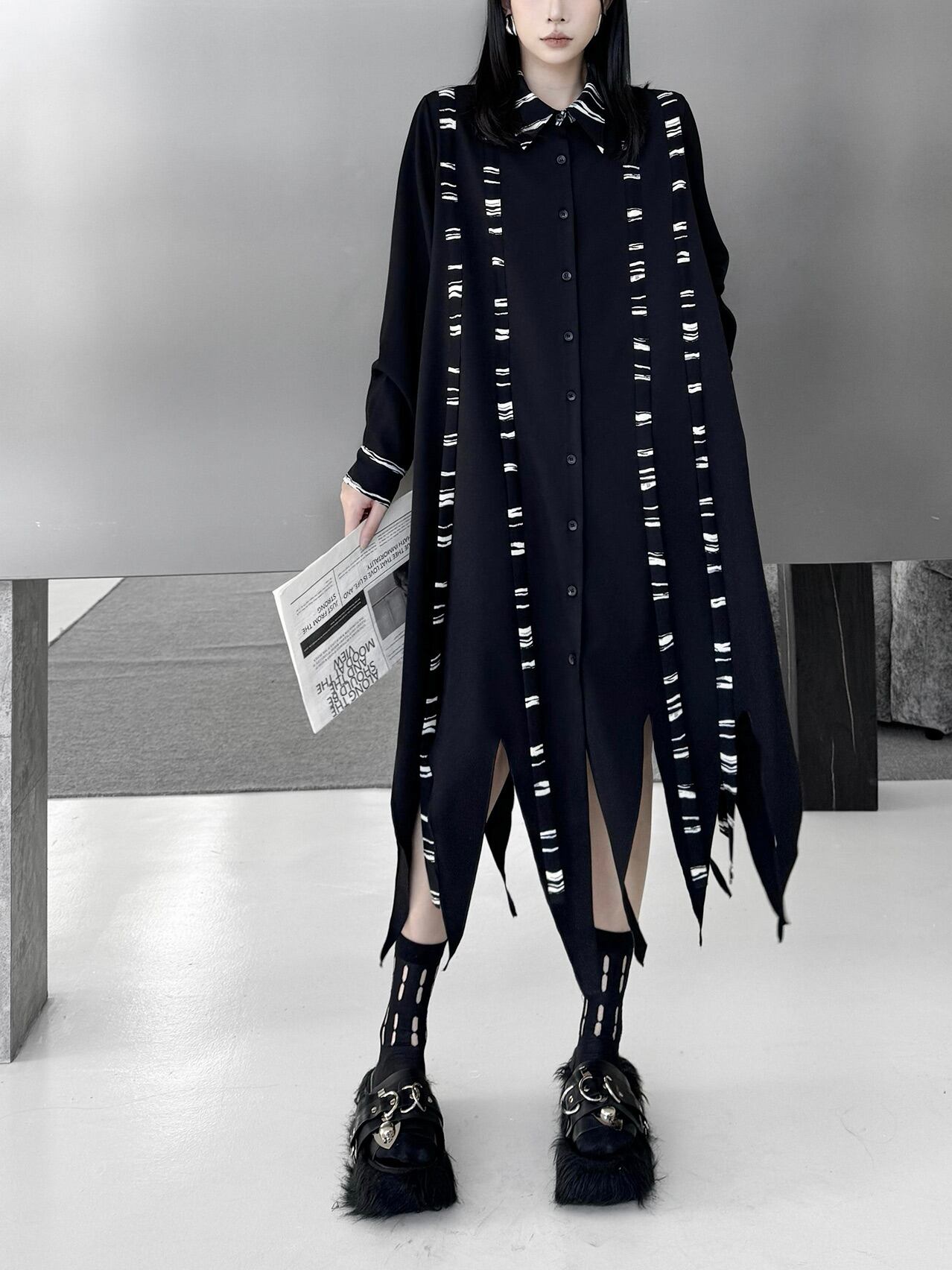 イレギュラーヘムダークシャツワンピース。 不揃いの裾がスタイルにドラマを生む。 ダークな存在感で大人っぽく今の気分にハマる。 - Size - M 肩幅:38cm 胸囲:116cm 着丈:92-127cm 袖丈:62cm ウエスト:130cm L 肩幅:39cm 胸囲:120cm 着丈:93-128cm 袖丈:63cm ウエスト:134cm XL 肩幅:40cm 胸囲:124cm 着丈:94-129cm 袖丈:64cm ウエスト:138cm ※1~3cmの誤差がある場合がございます model date 169cm/53kg - Color - ブラック - お届けについて - こちらの商品は海外店舗より直接発送となる為、 ご入金から1~3週間前後で発送致します。 ※商品の状況によっては、3週間以上かかる場合も ございます。 ------------------------------------------------------- - Lilie全商品はこちらから - https://www.lilie.style/ - 人気のアイテムはこちら - https://www.lilie.style/categories/3884141 - ご購入前にこちらをお読みください - https://www.lilie.style/about -------------------------------------------------------