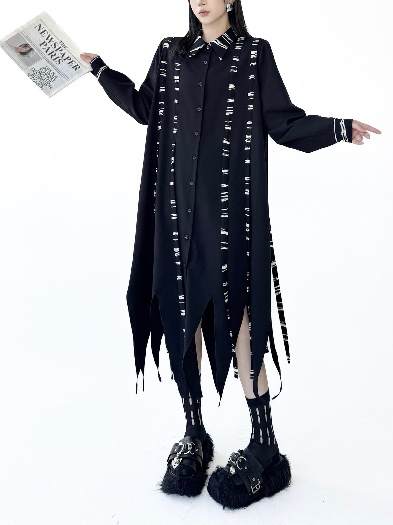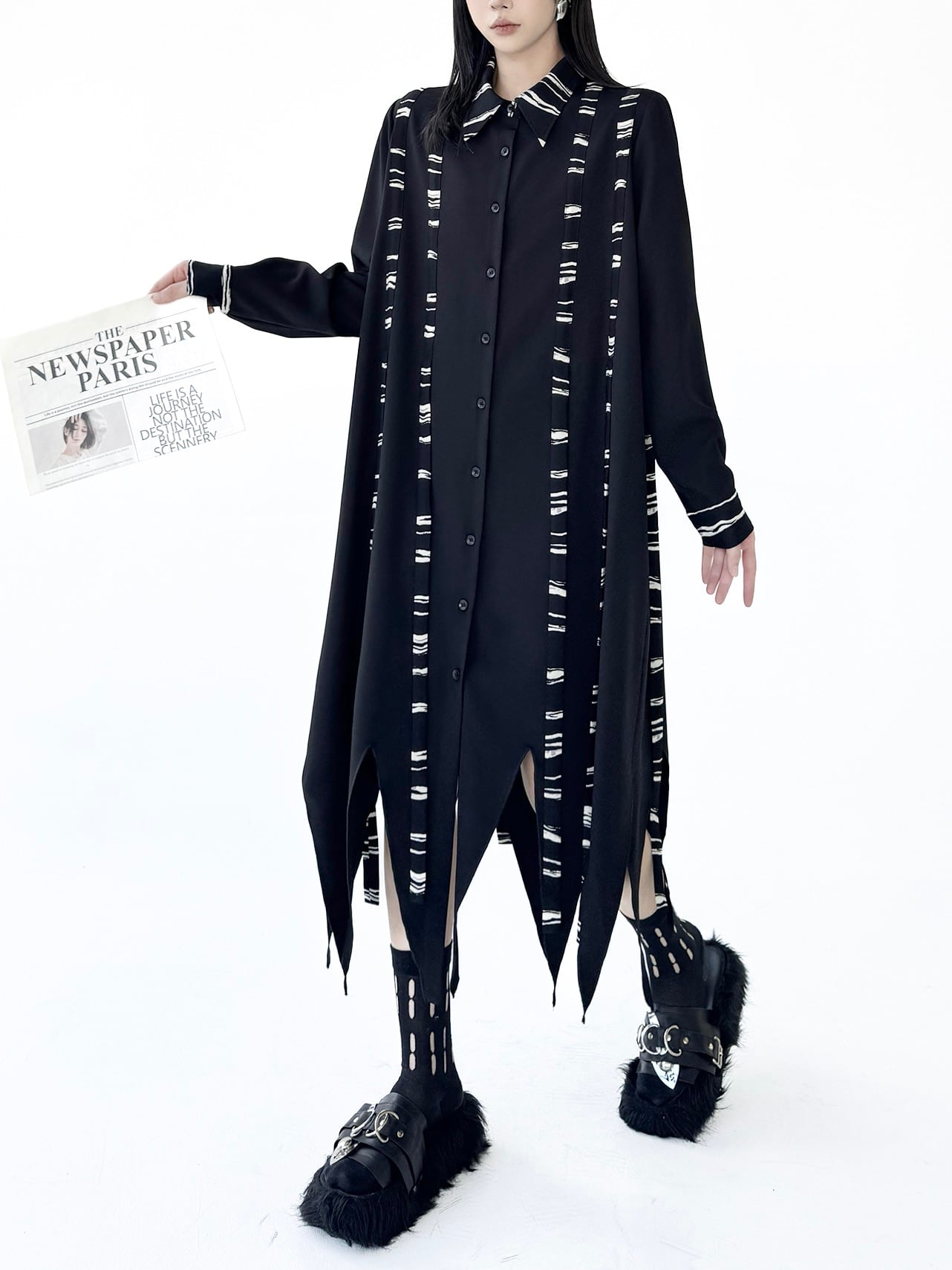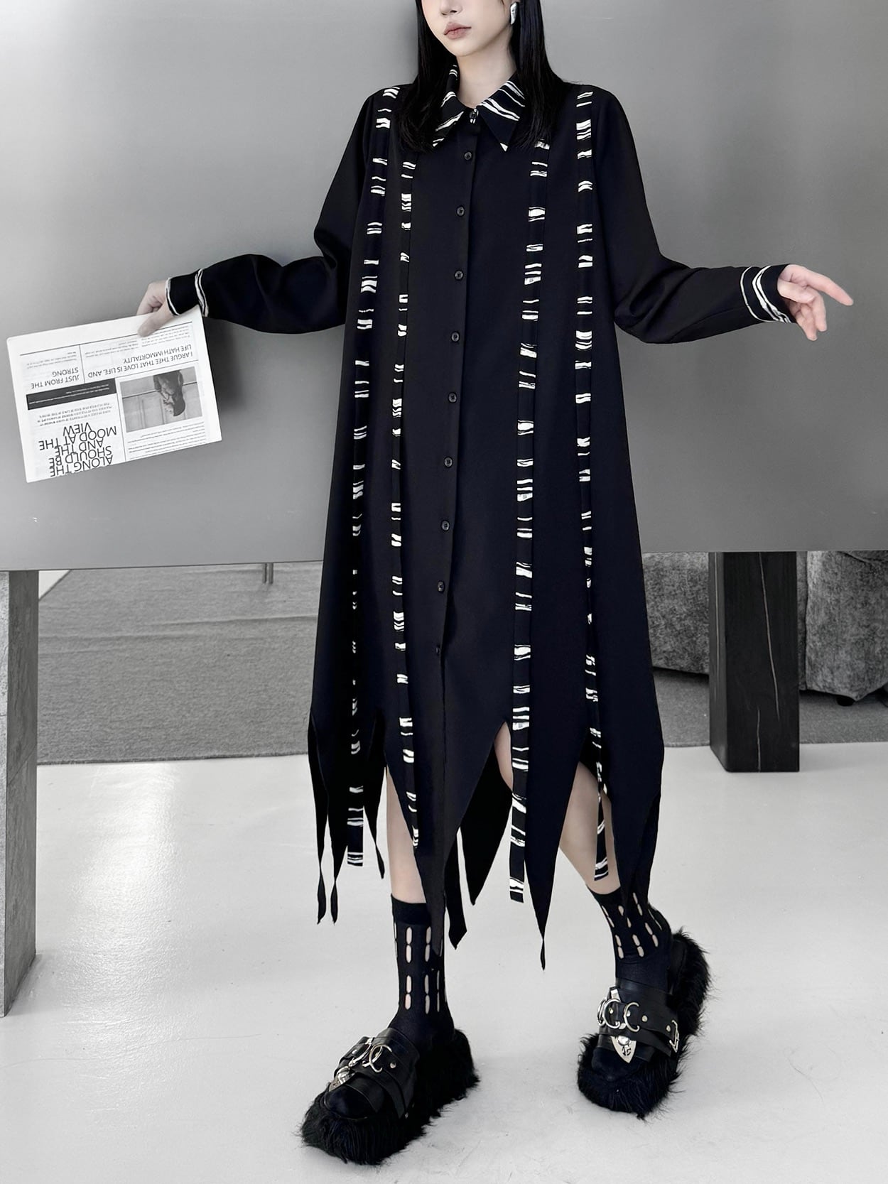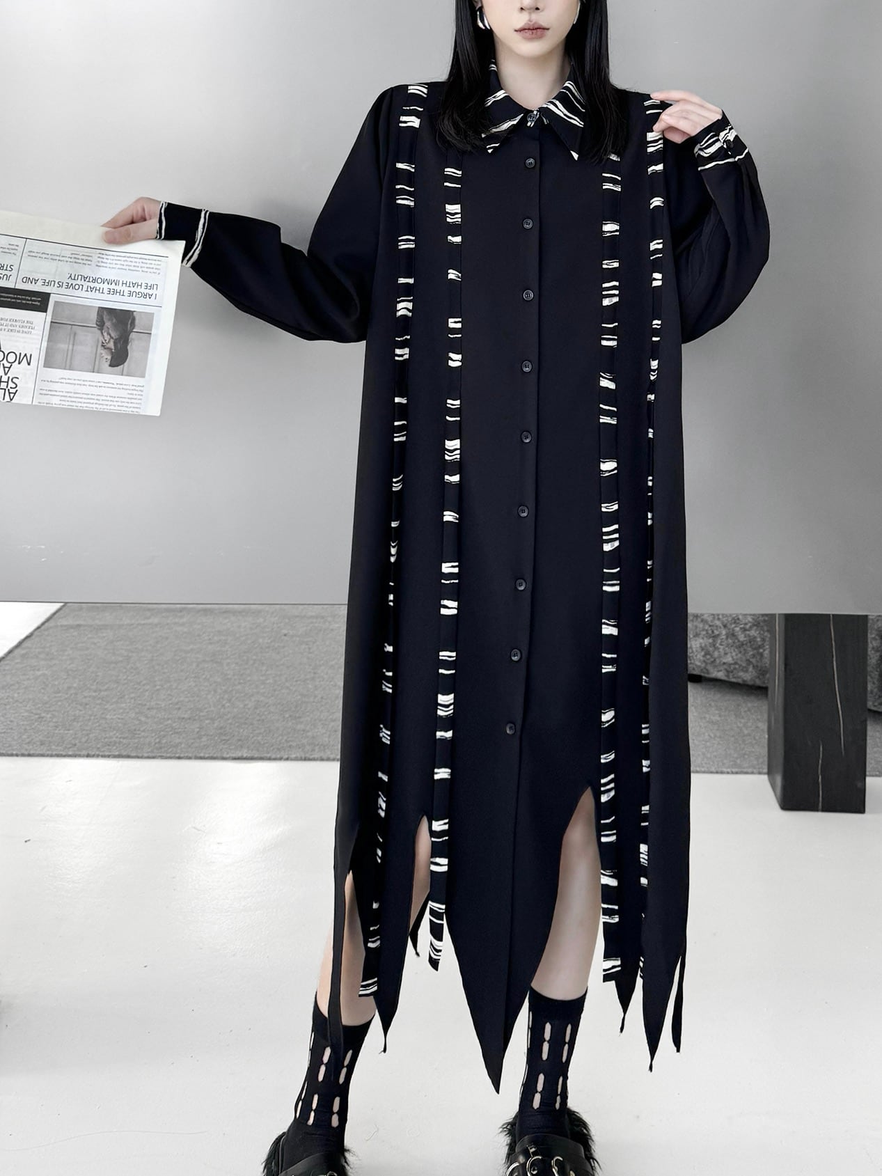 イレギュラーヘムダークシャツワンピース。 不揃いの裾がスタイルにドラマを生む。 ダークな存在感で大人っぽく今の気分にハマる。 - Size - M 肩幅:38cm 胸囲:116cm 着丈:92-127cm 袖丈:62cm ウエスト:130cm L 肩幅:39cm 胸囲:120cm 着丈:93-128cm 袖丈:63cm ウエスト:134cm XL 肩幅:40cm 胸囲:124cm 着丈:94-129cm 袖丈:64cm ウエスト:138cm ※1~3cmの誤差がある場合がございます model date 169cm/53kg - Color - ブラック - お届けについて - こちらの商品は海外店舗より直接発送となる為、 ご入金から1~3週間前後で発送致します。 ※商品の状況によっては、3週間以上かかる場合も ございます。 ------------------------------------------------------- - Lilie全商品はこちらから - https://www.lilie.style/ - 人気のアイテムはこちら - https://www.lilie.style/categories/3884141 - ご購入前にこちらをお読みください - https://www.lilie.style/about -------------------------------------------------------