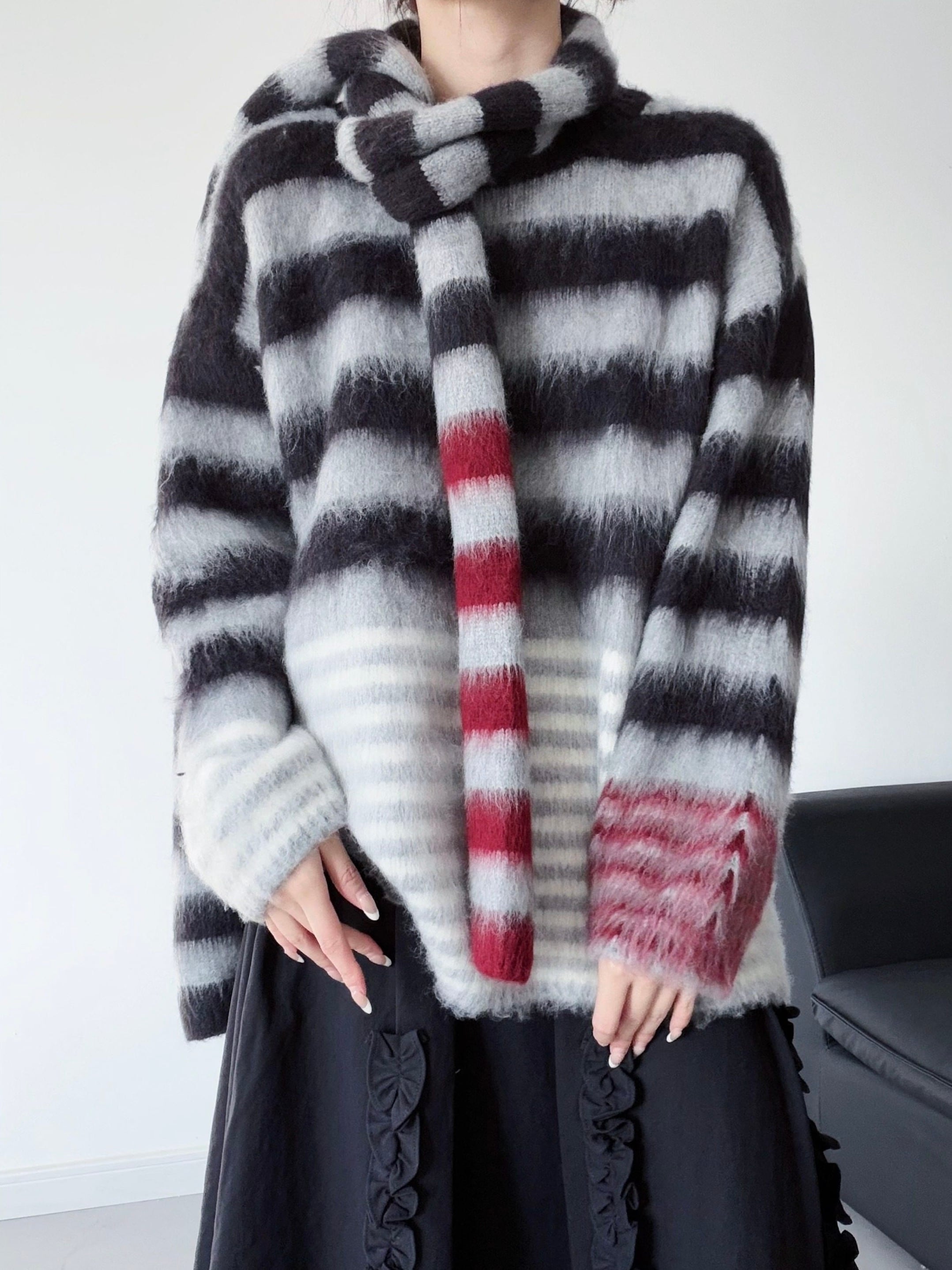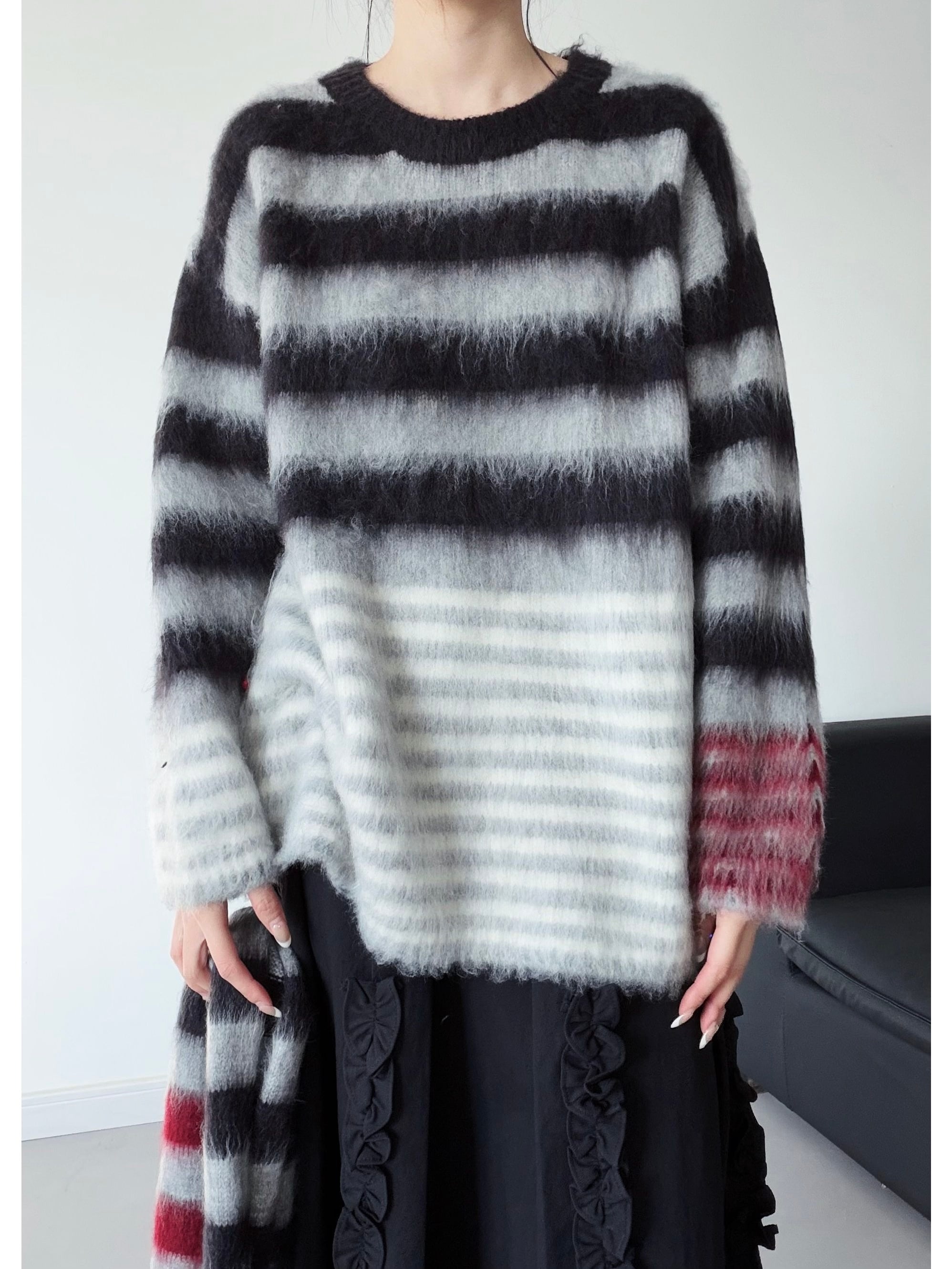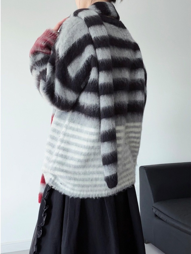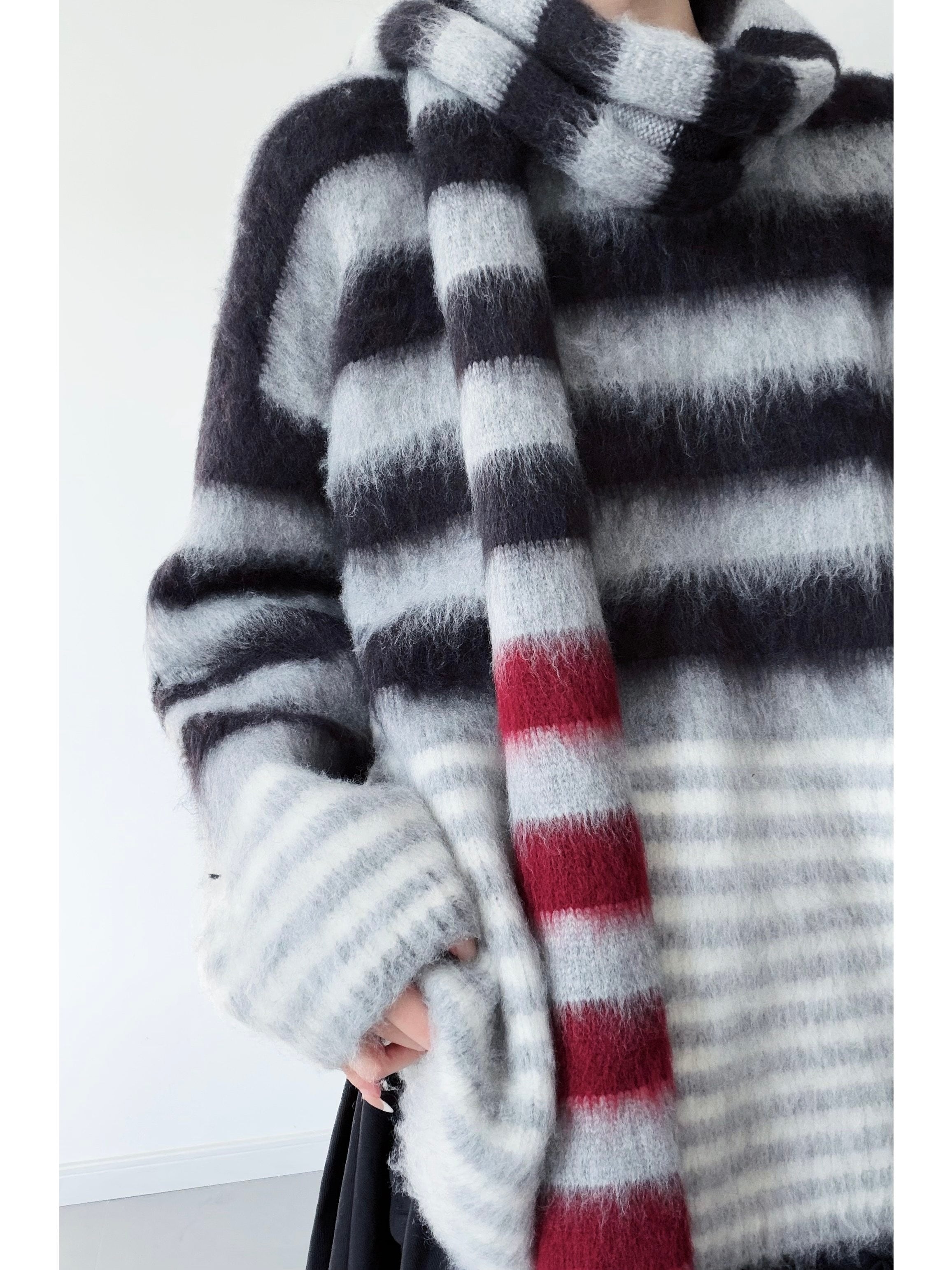 Colorblock horizontal striped mohair knit [T2723]