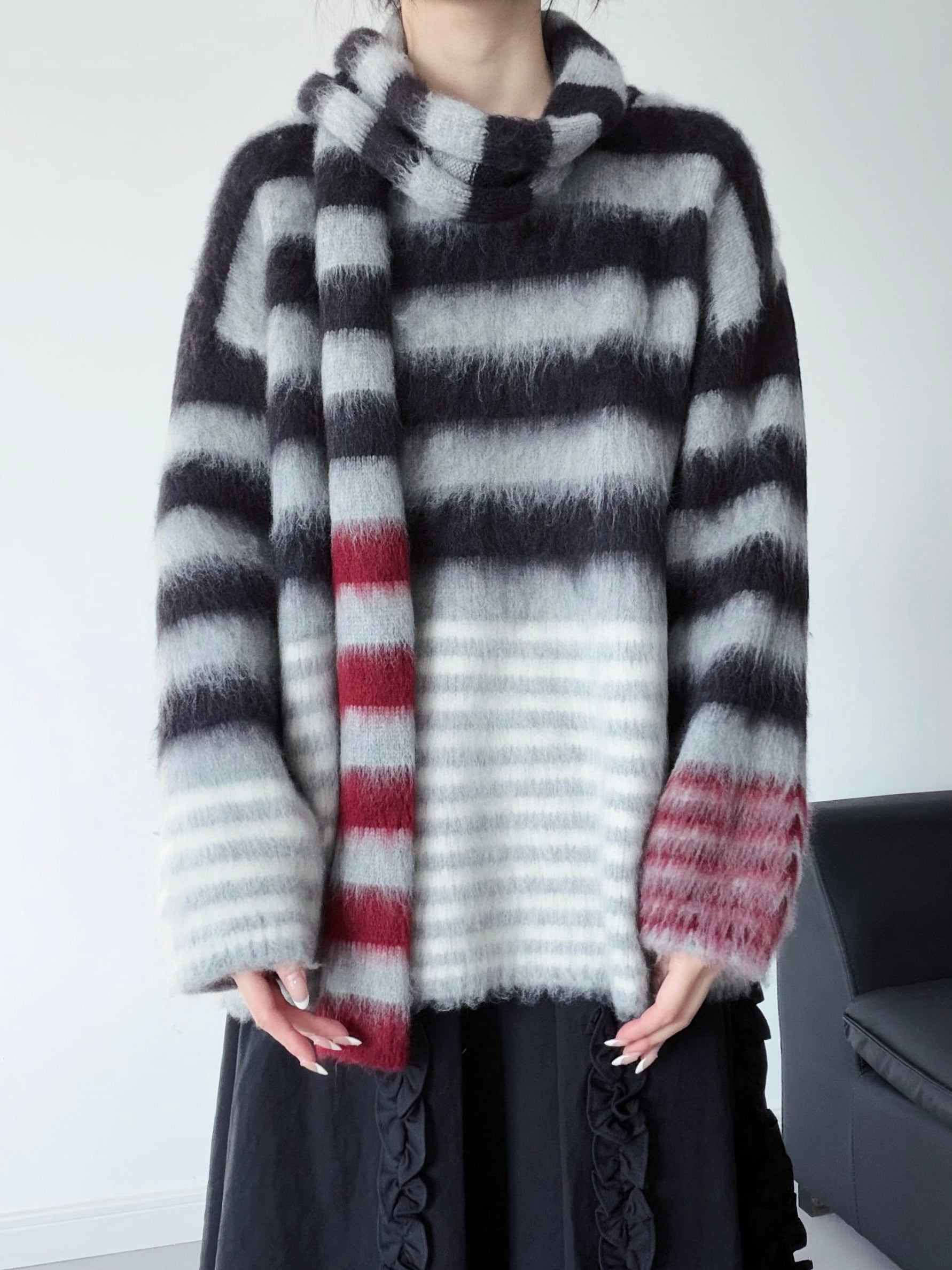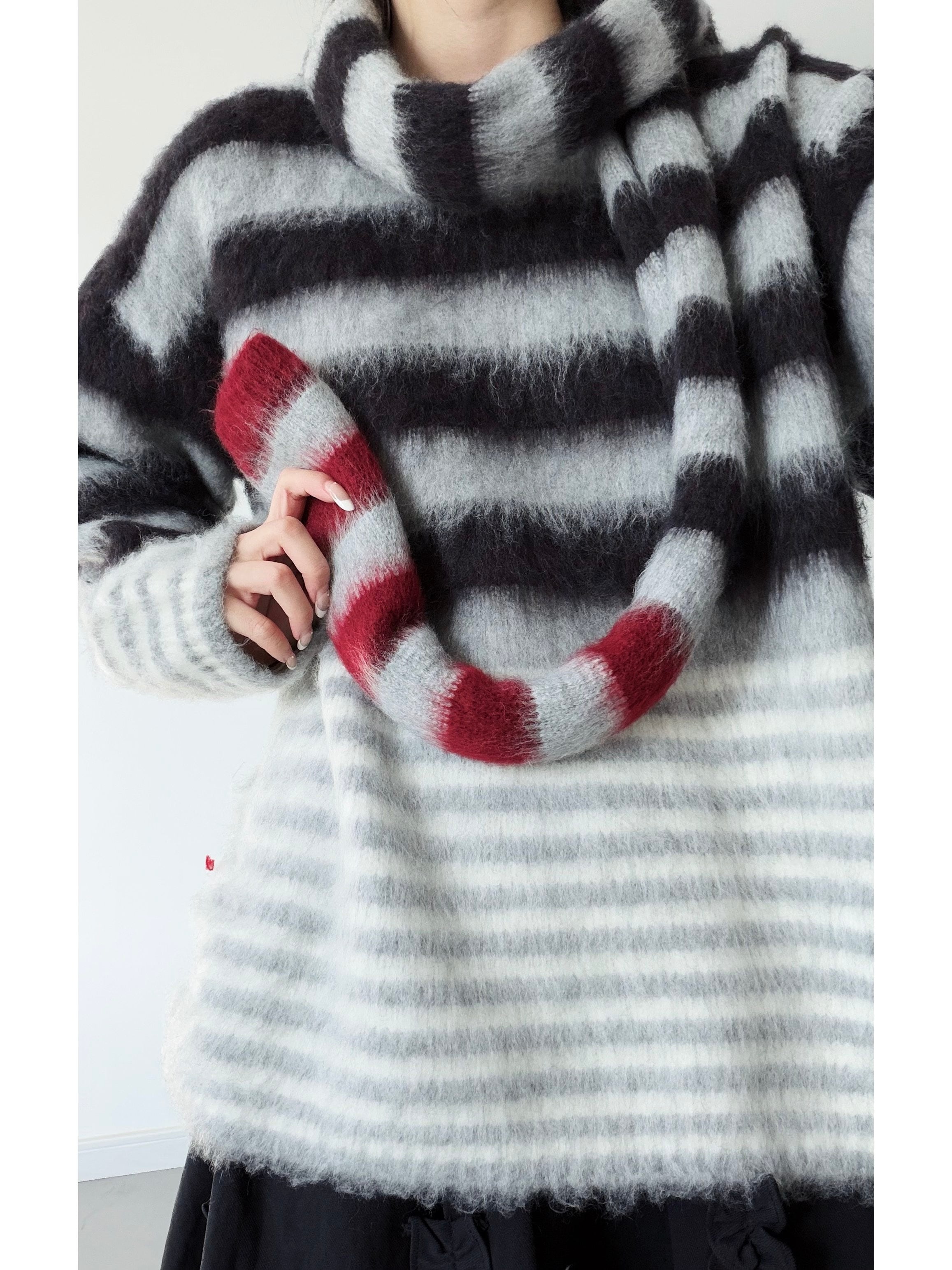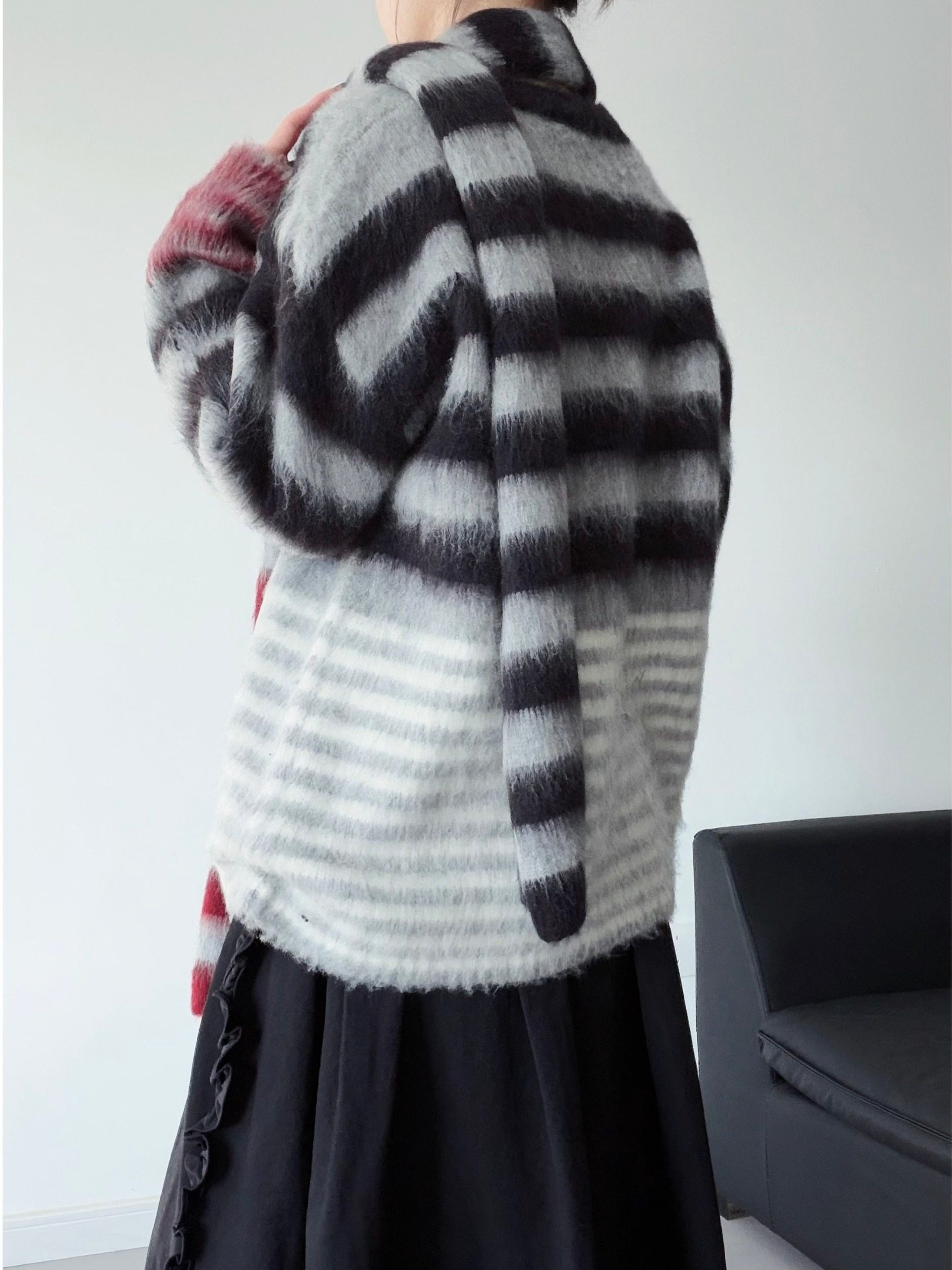 Colorblock horizontal striped mohair knit [T2723]
